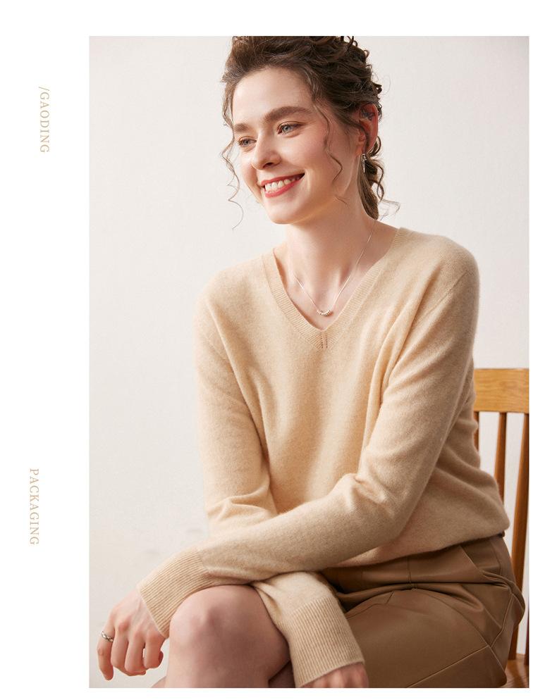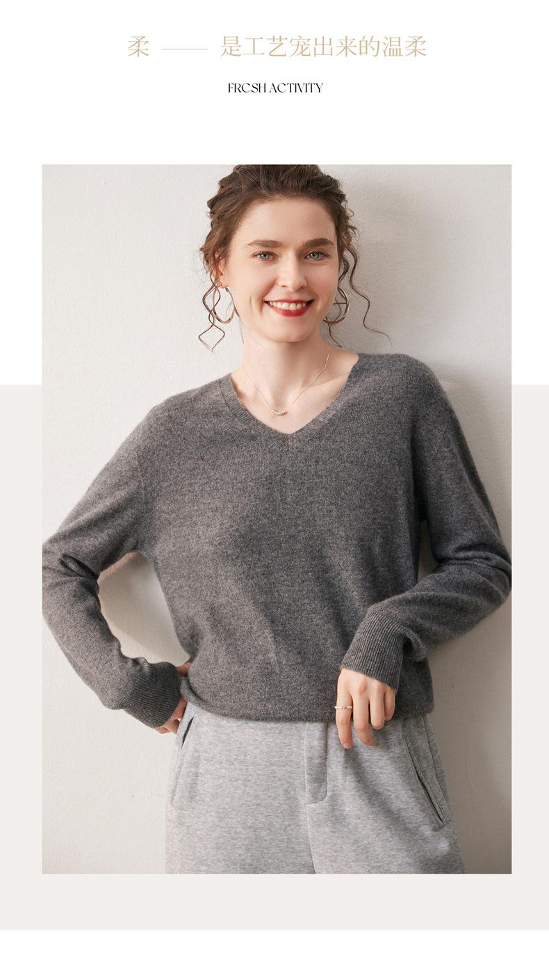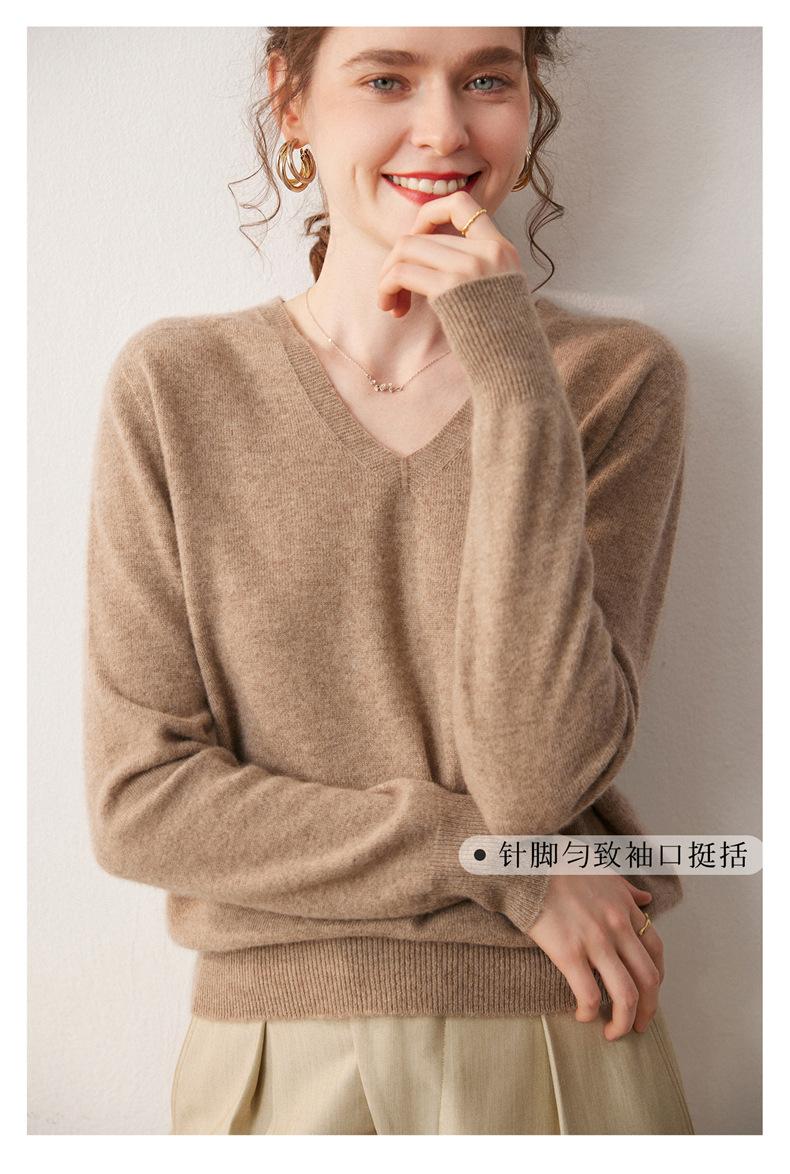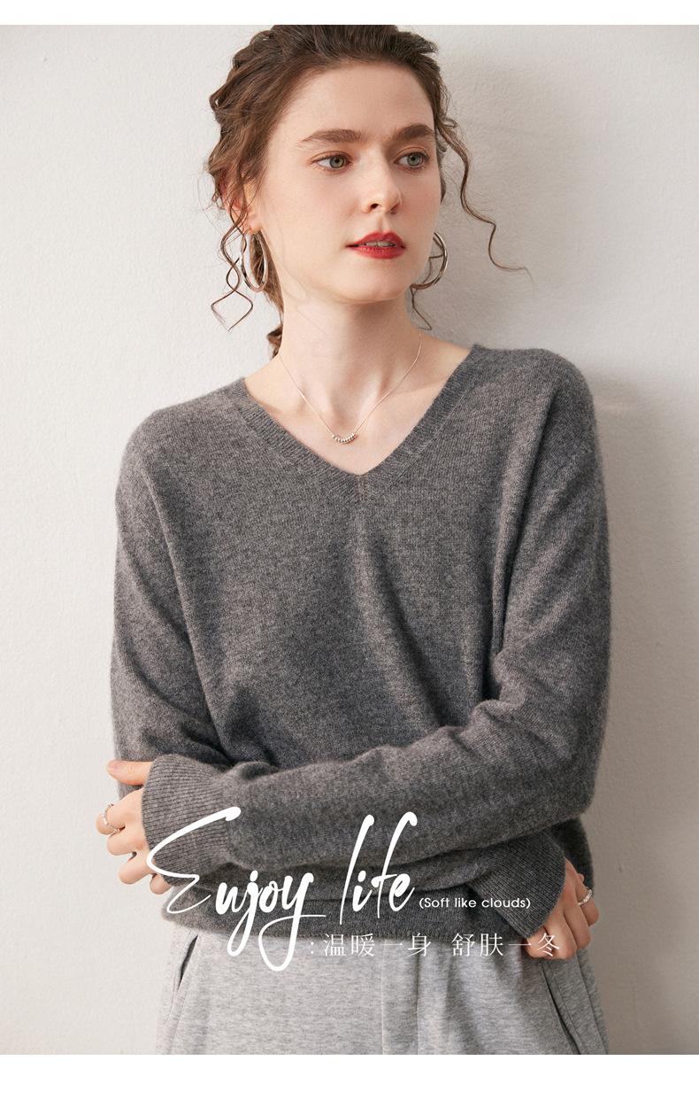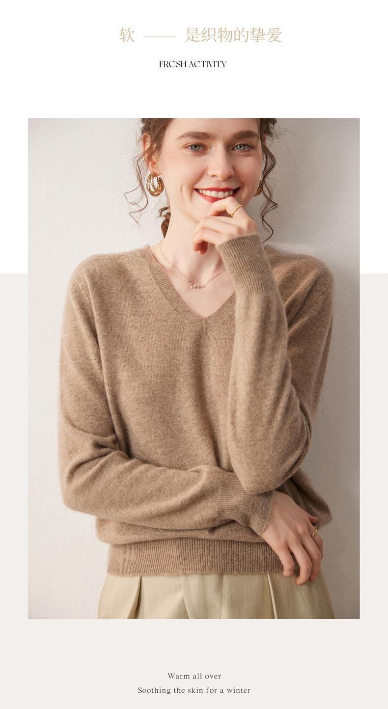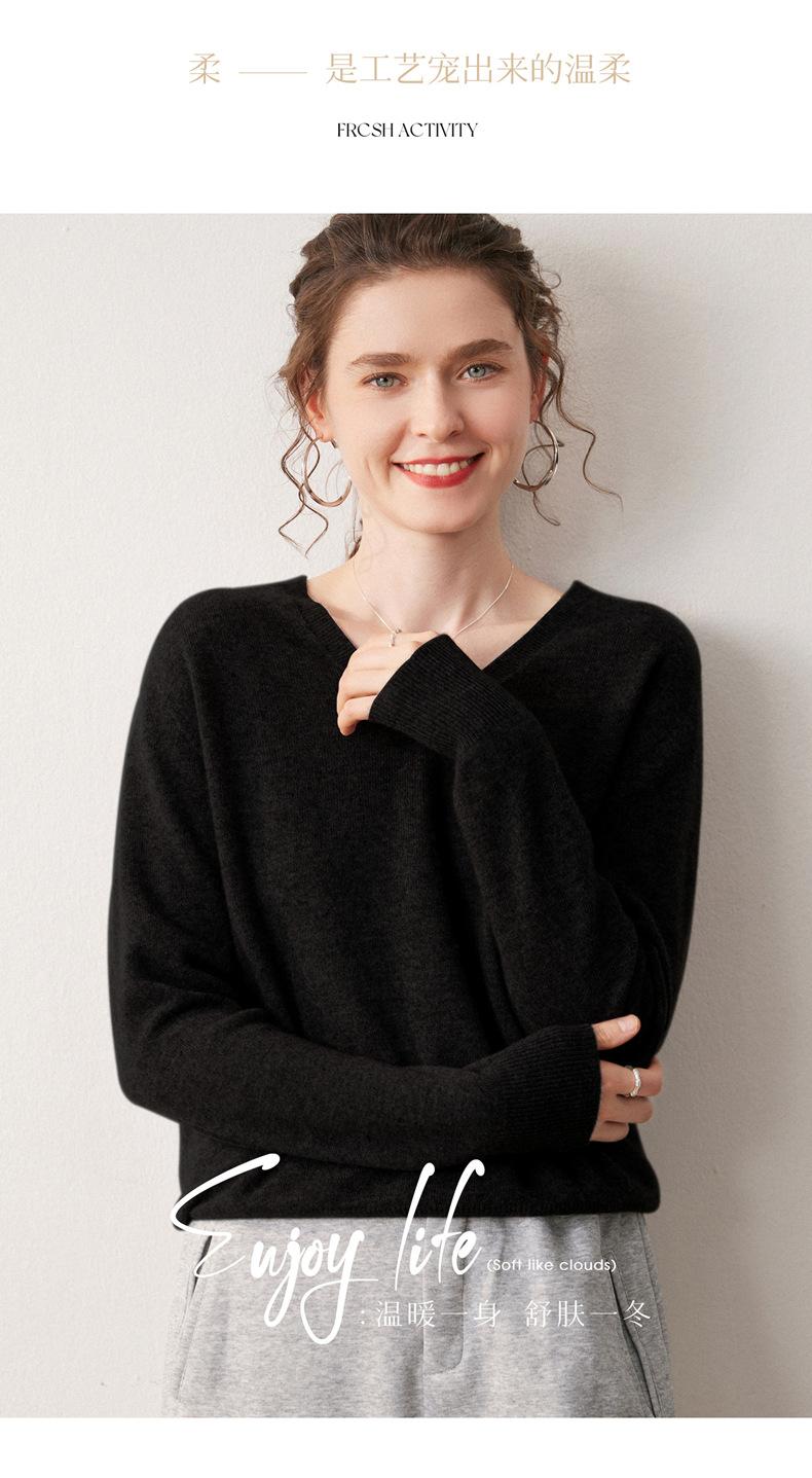 Artículo Popular~Suéter de Cachemira de Una Pieza sin Costuras para Mujer con Cuello en V, Suéter Pulóver Otoño/Invierno Holgado Tejido Capa Base al por Mayor