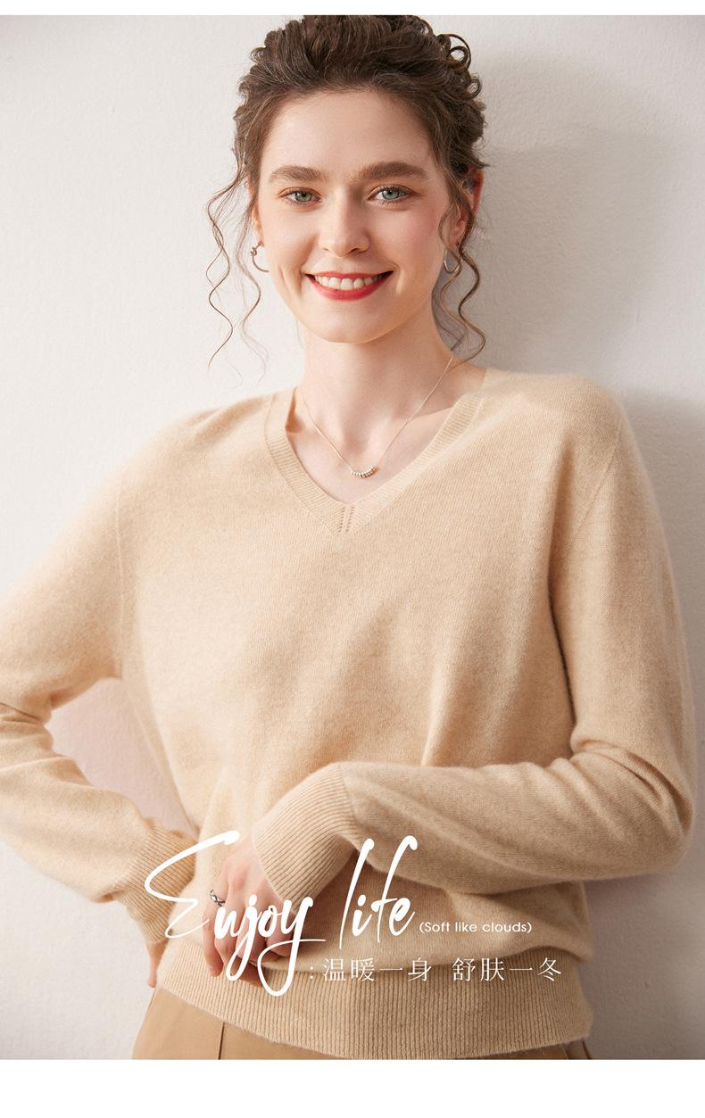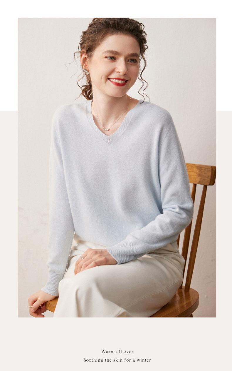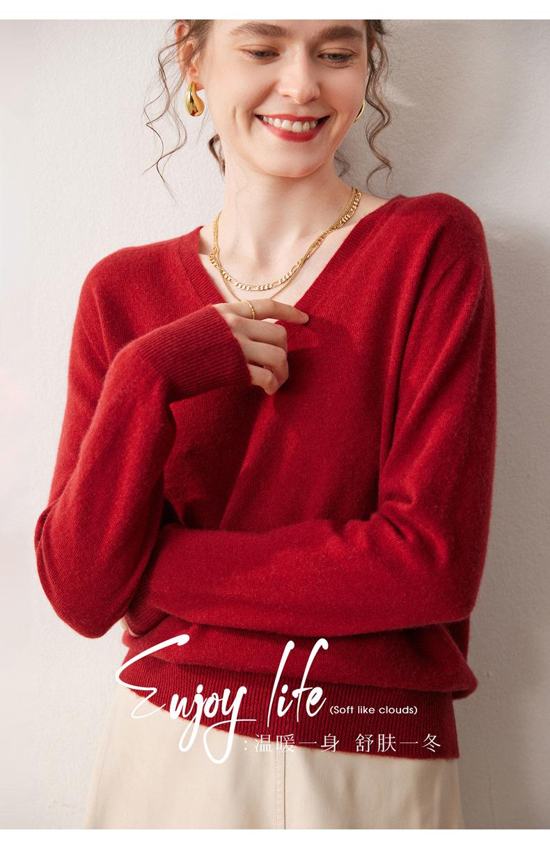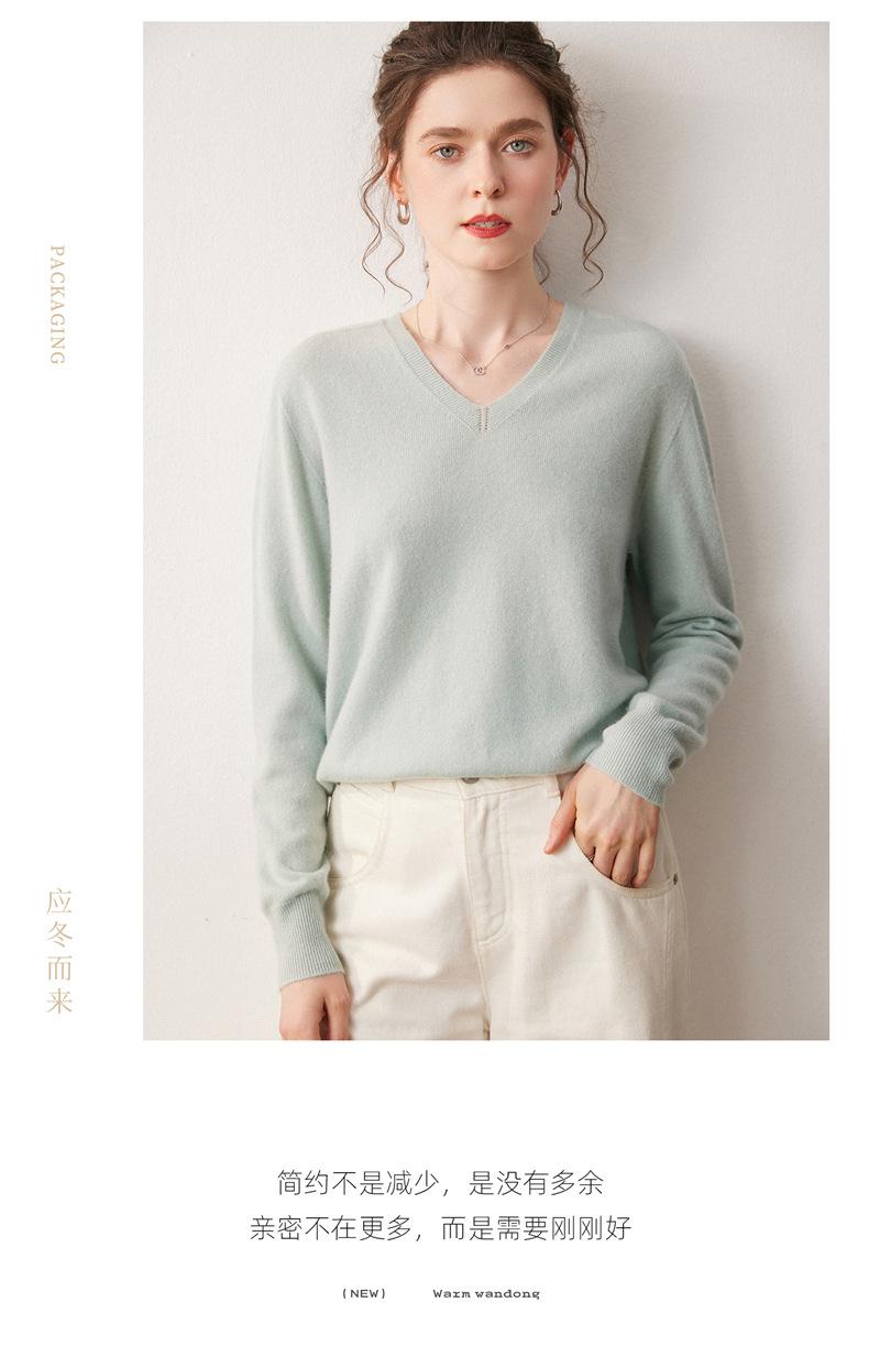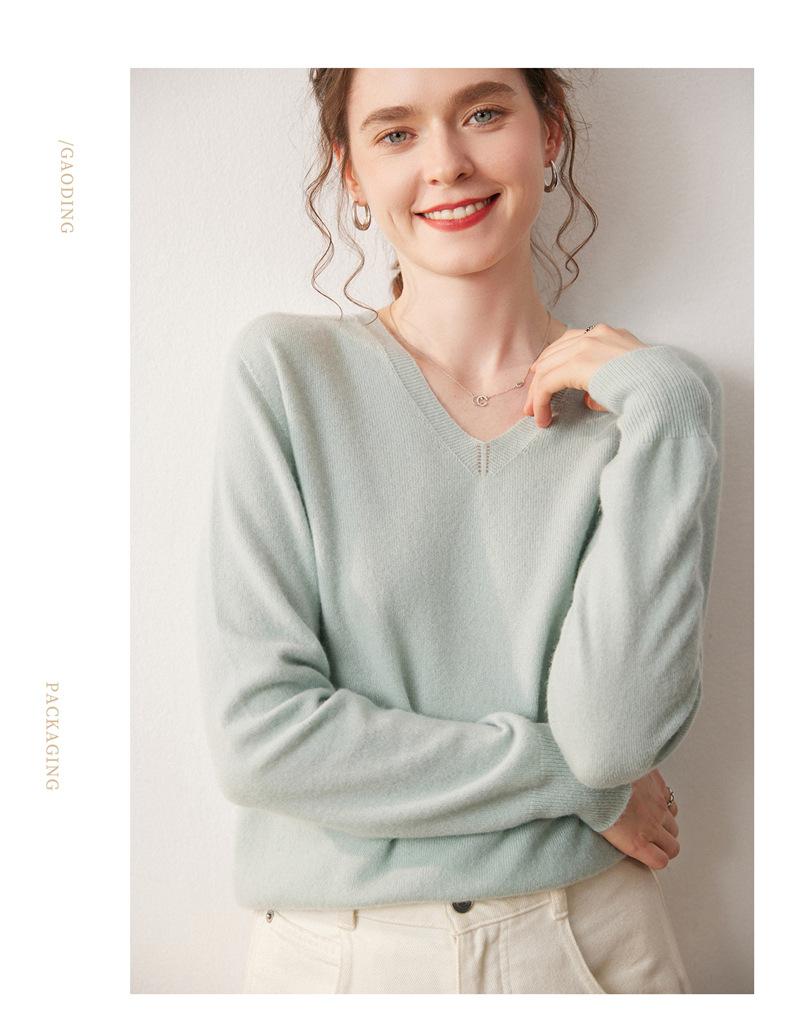 Artículo Popular~Suéter de Cachemira de Una Pieza sin Costuras para Mujer con Cuello en V, Suéter Pulóver Otoño/Invierno Holgado Tejido Capa Base al por Mayor