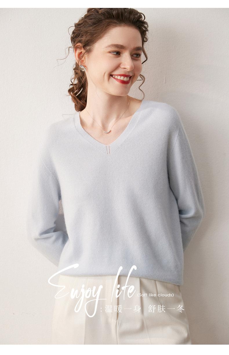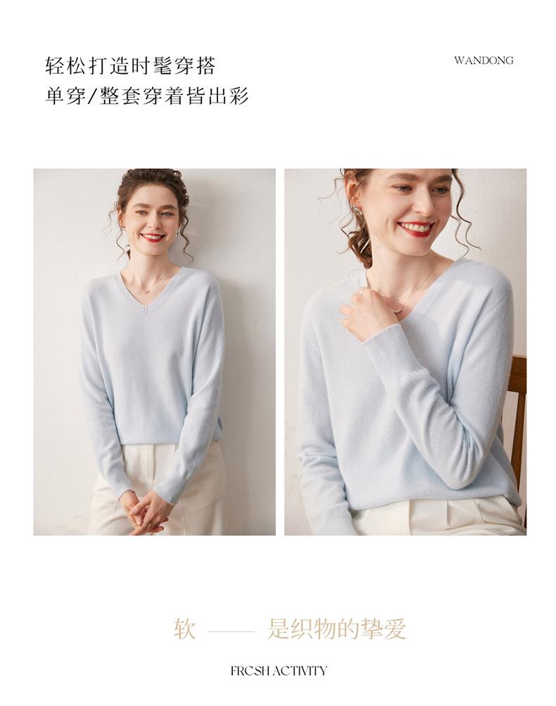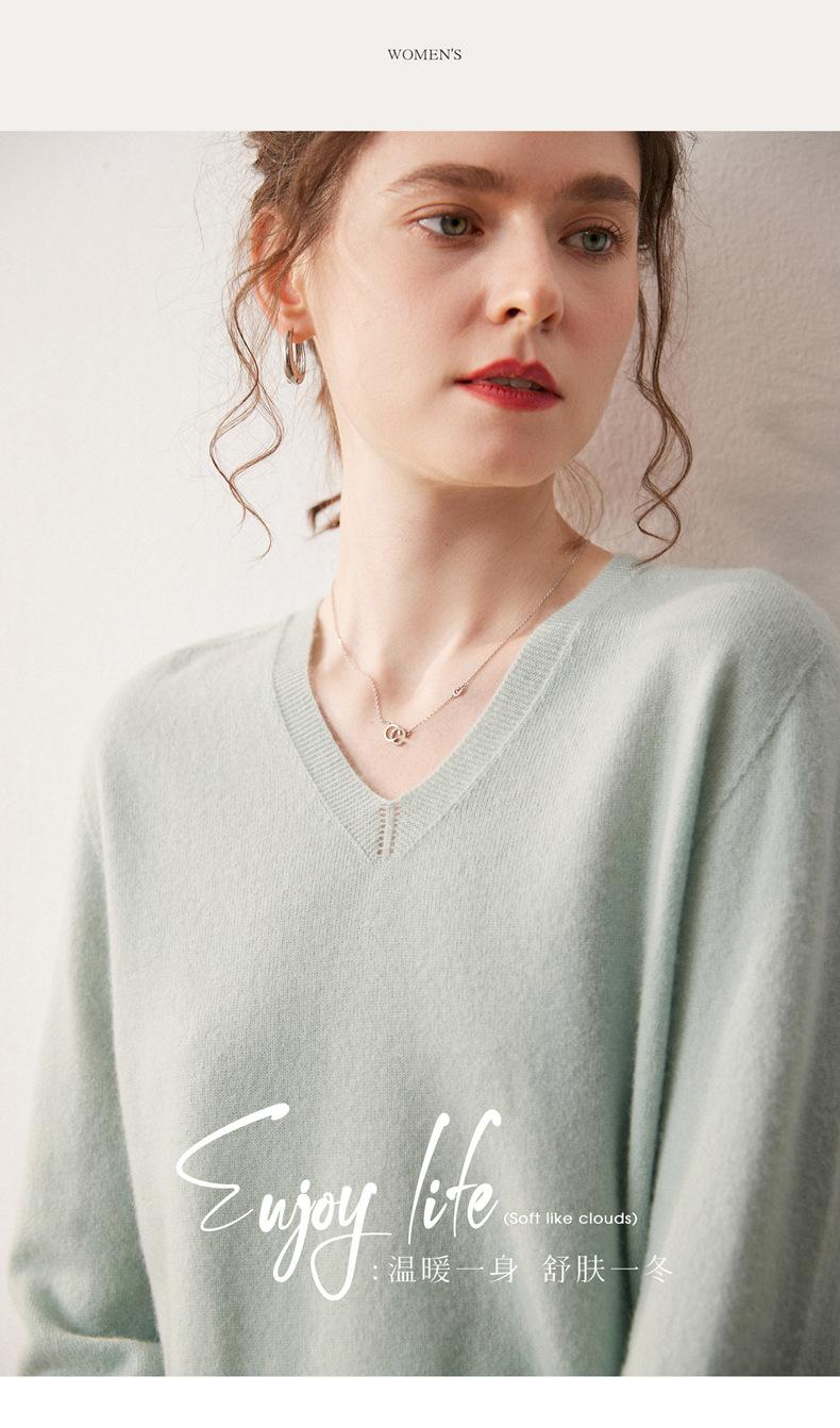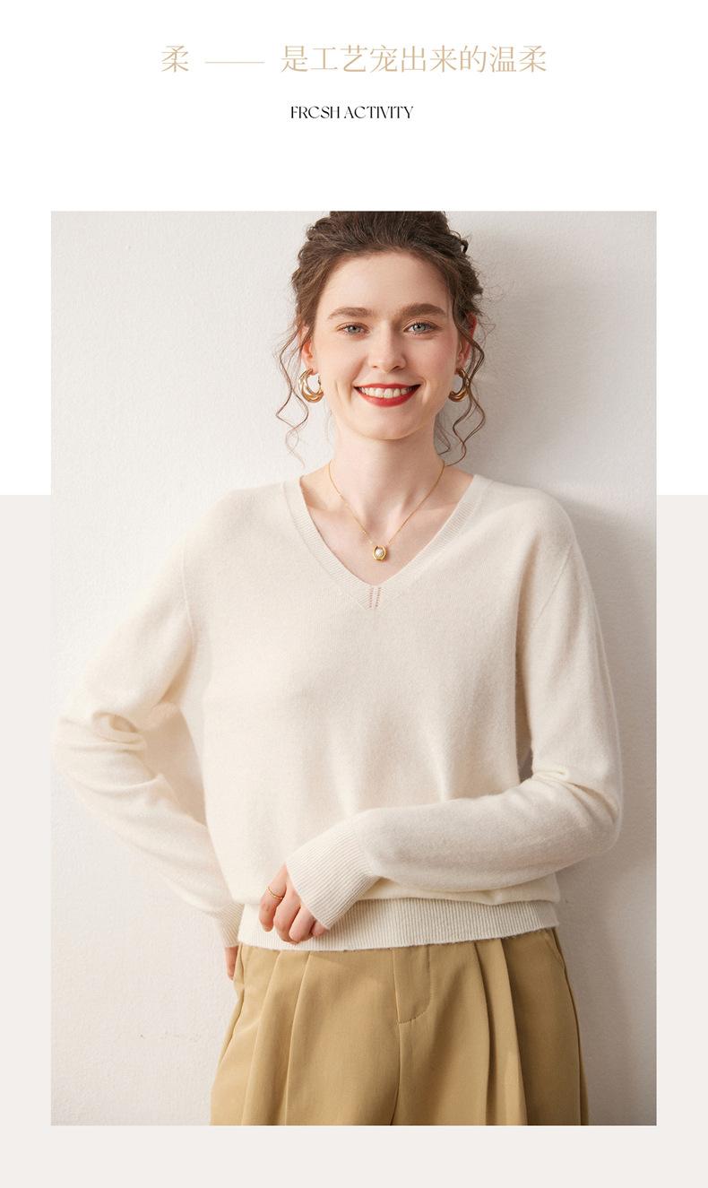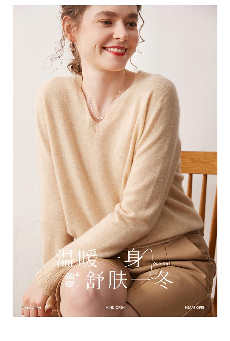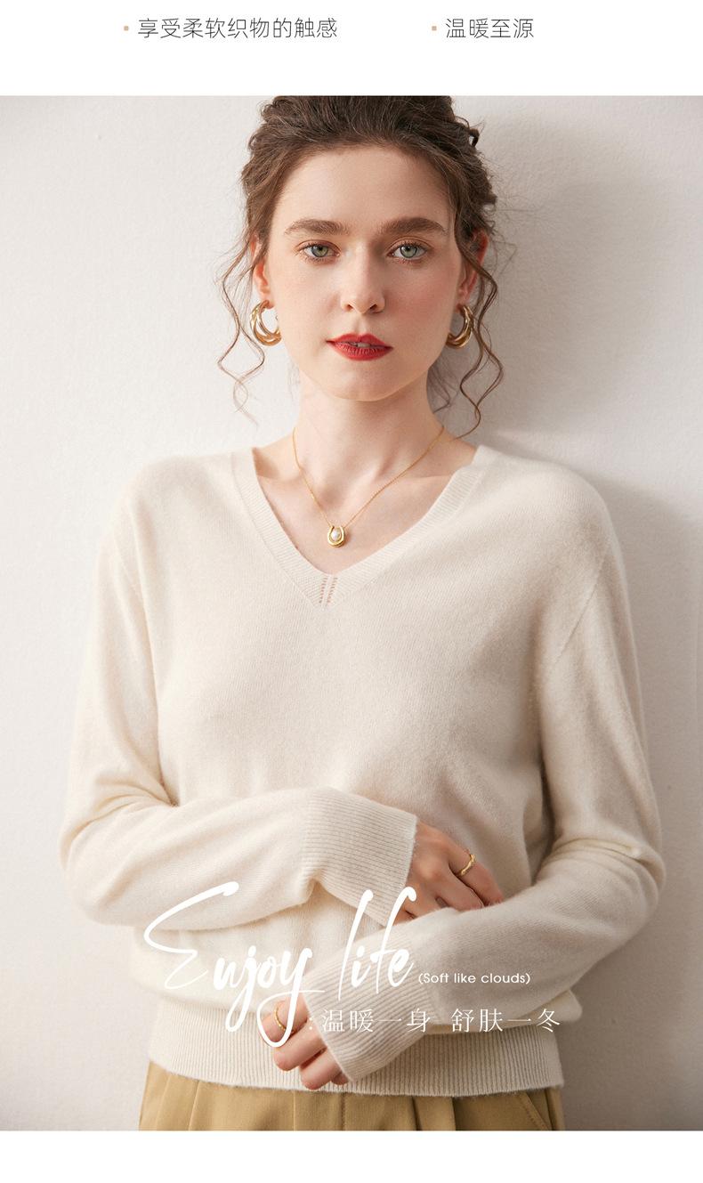 Artículo Popular~Suéter de Cachemira de Una Pieza sin Costuras para Mujer con Cuello en V, Suéter Pulóver Otoño/Invierno Holgado Tejido Capa Base al por Mayor