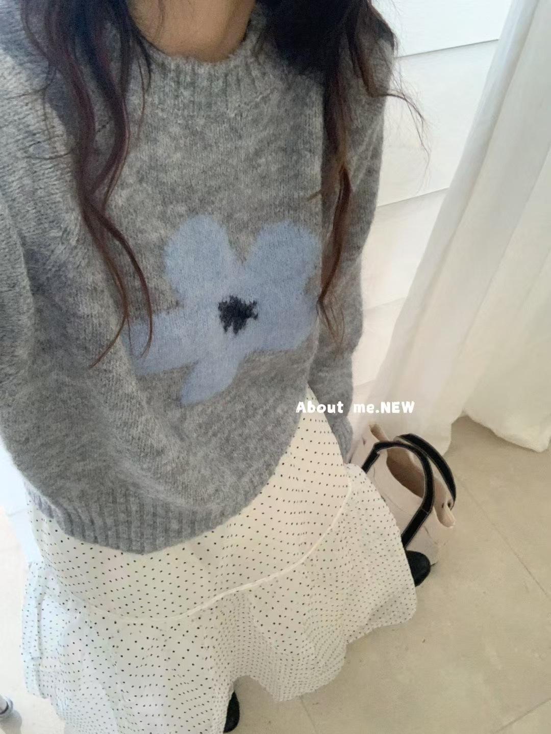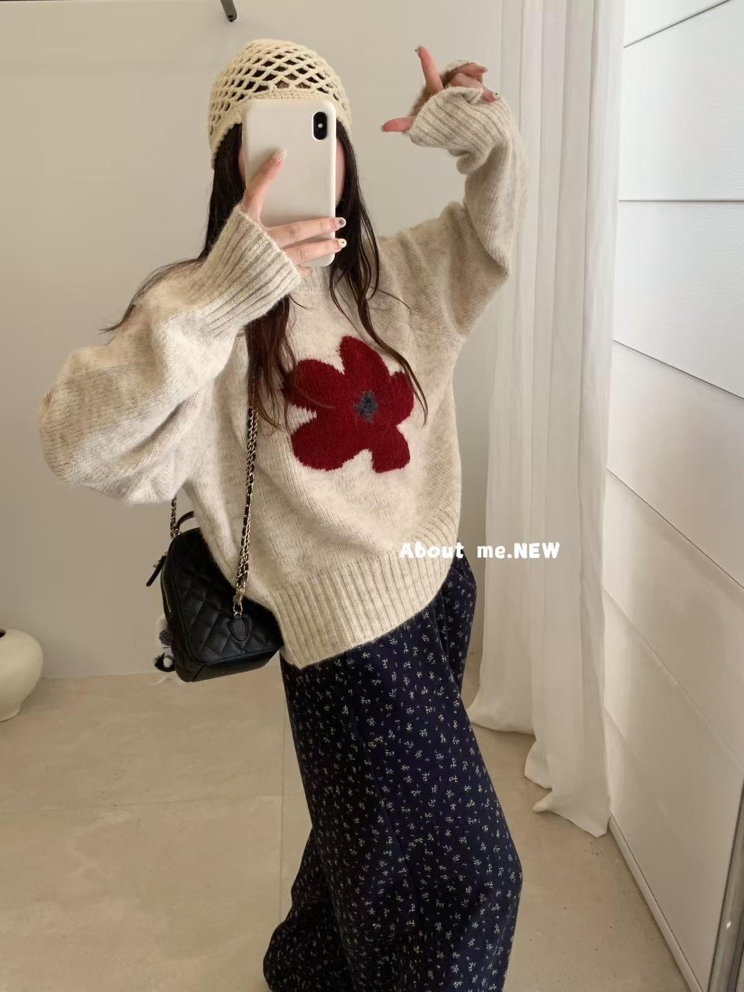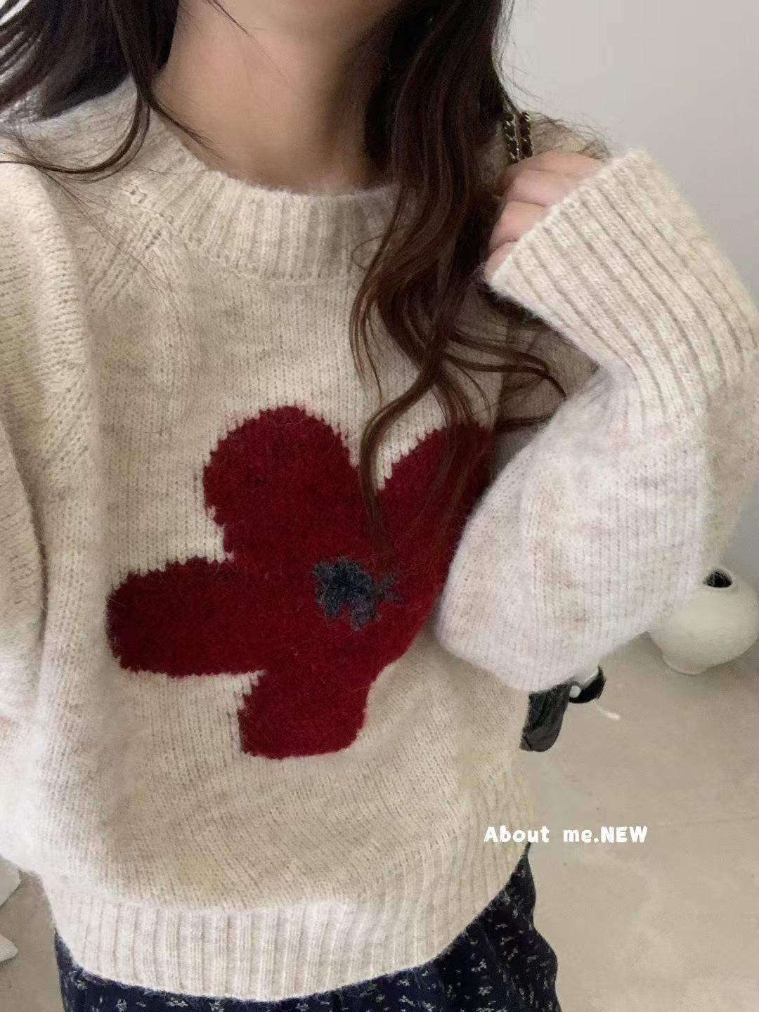 Suéter de Punto Base Floral Jacquard Divertido con Sentido del Diseño Nicho para Mujer Otoño/Invierno 2025 Nueva Tendencia Suéter Pulóver