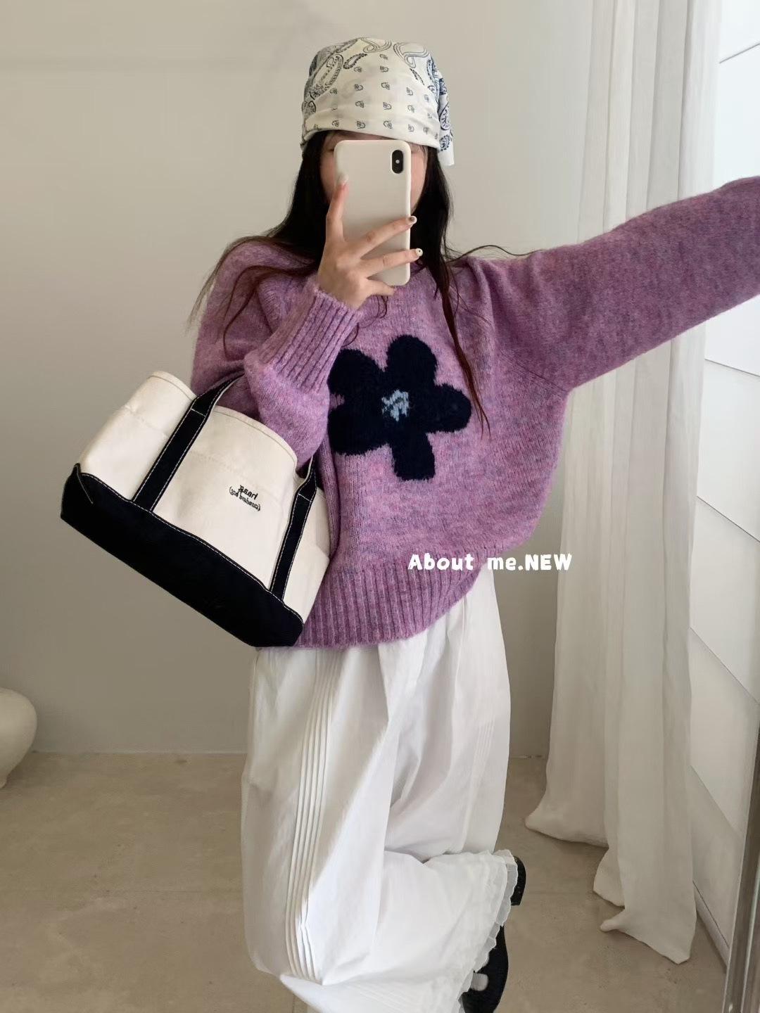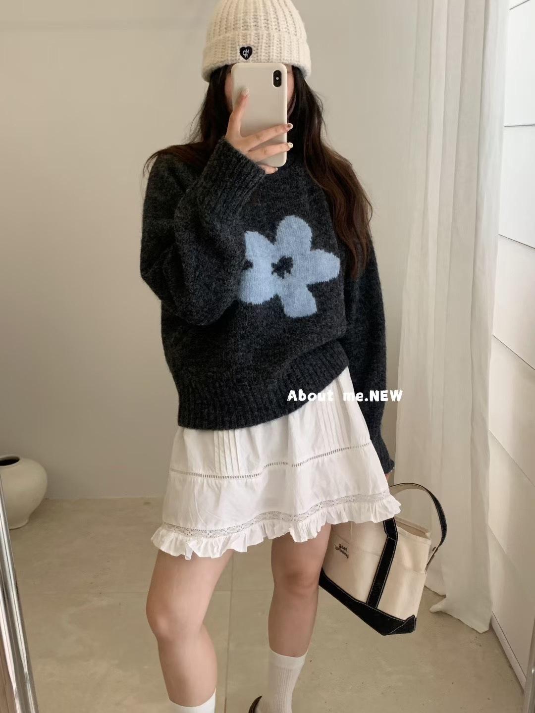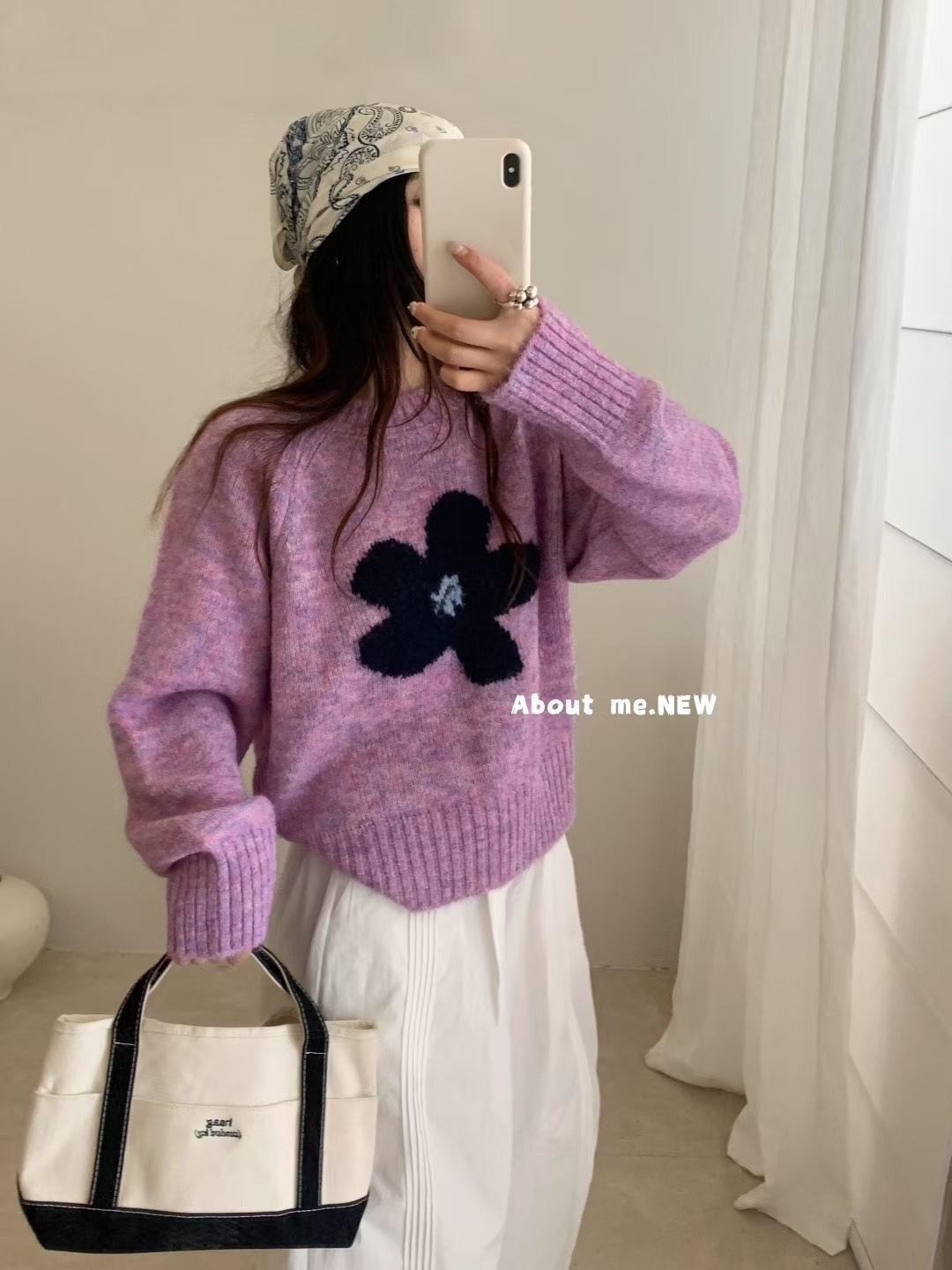 Suéter de Punto Base Floral Jacquard Divertido con Sentido del Diseño Nicho para Mujer Otoño/Invierno 2025 Nueva Tendencia Suéter Pulóver