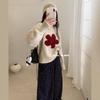 Suéter de Punto de Lana con Flores Jacquard Divertido de Diseño Nicho para Mujer Otoño/Invierno 2025 Estilo Coreano Top Jersey
