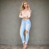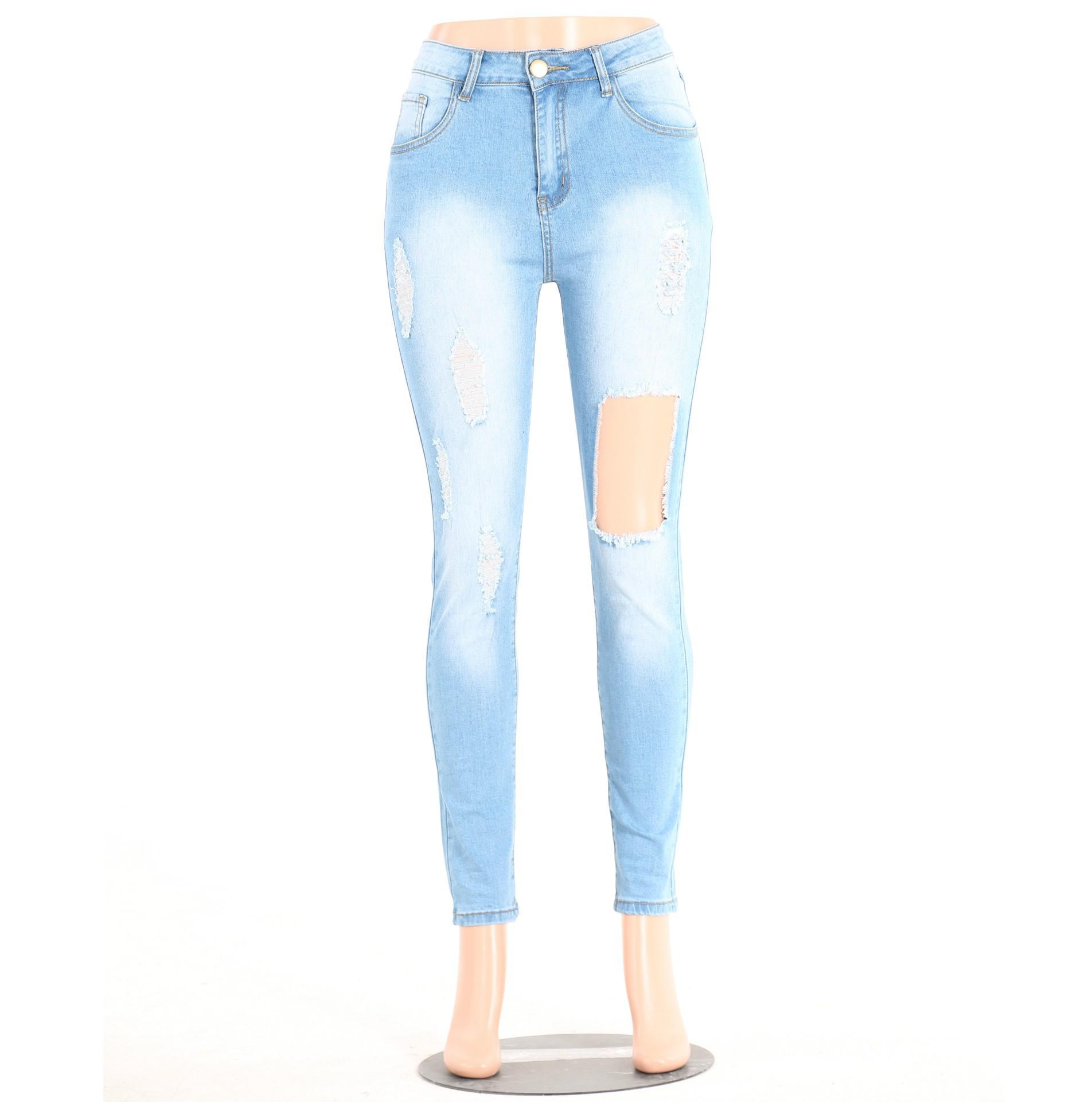 Comercio Exterior Transfronterizo Amazon Wish Primavera Comercio Exterior Spot Nuevo Pantalones de Mezclilla Ajustados Rotos para Mujer