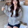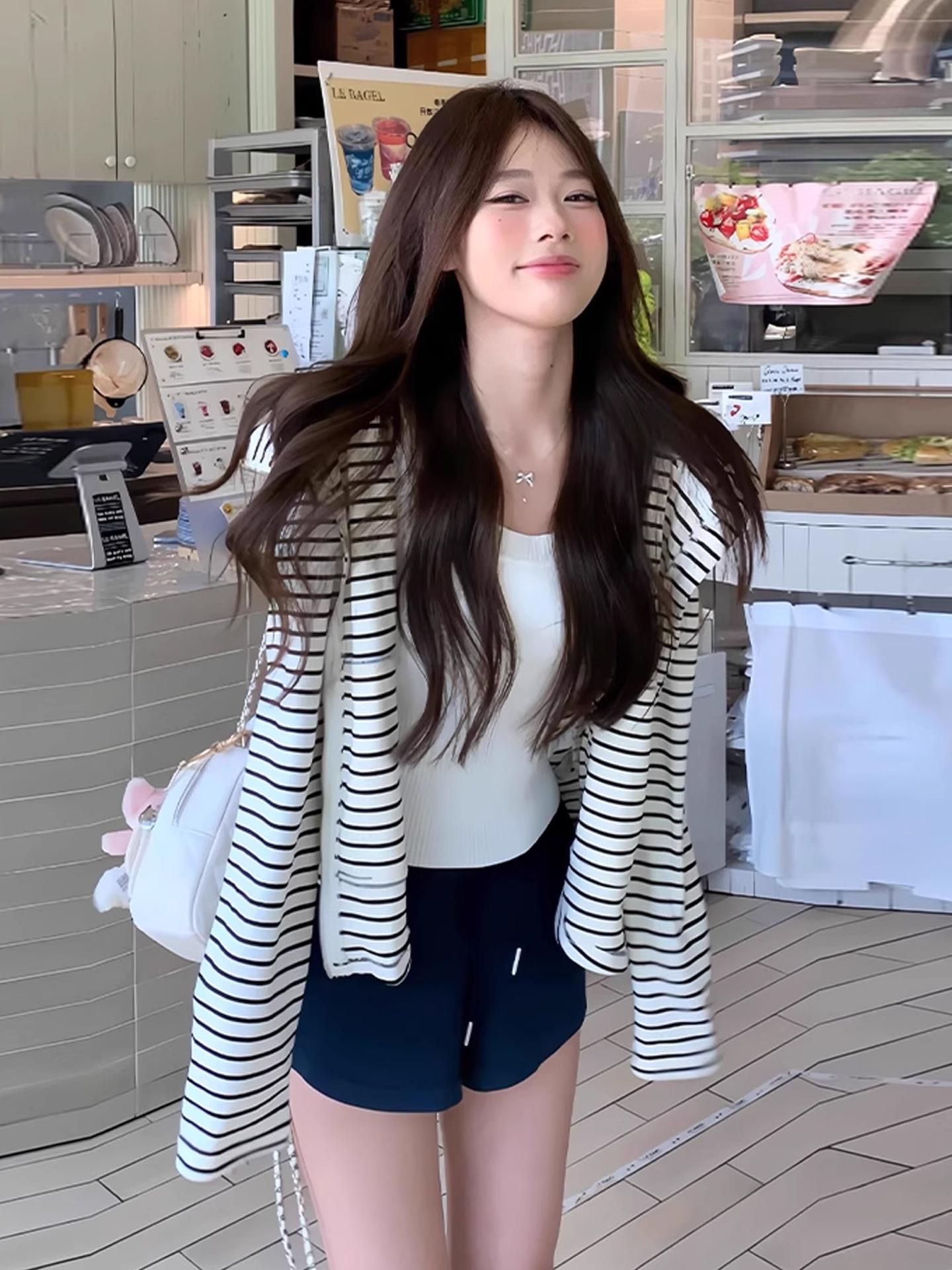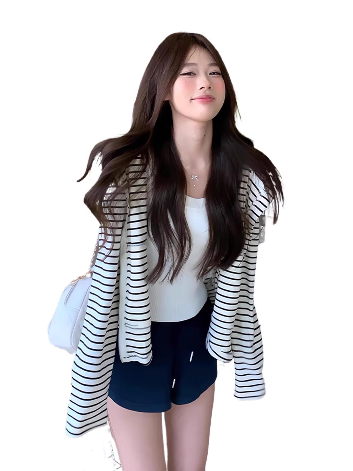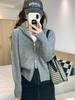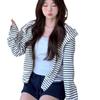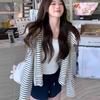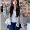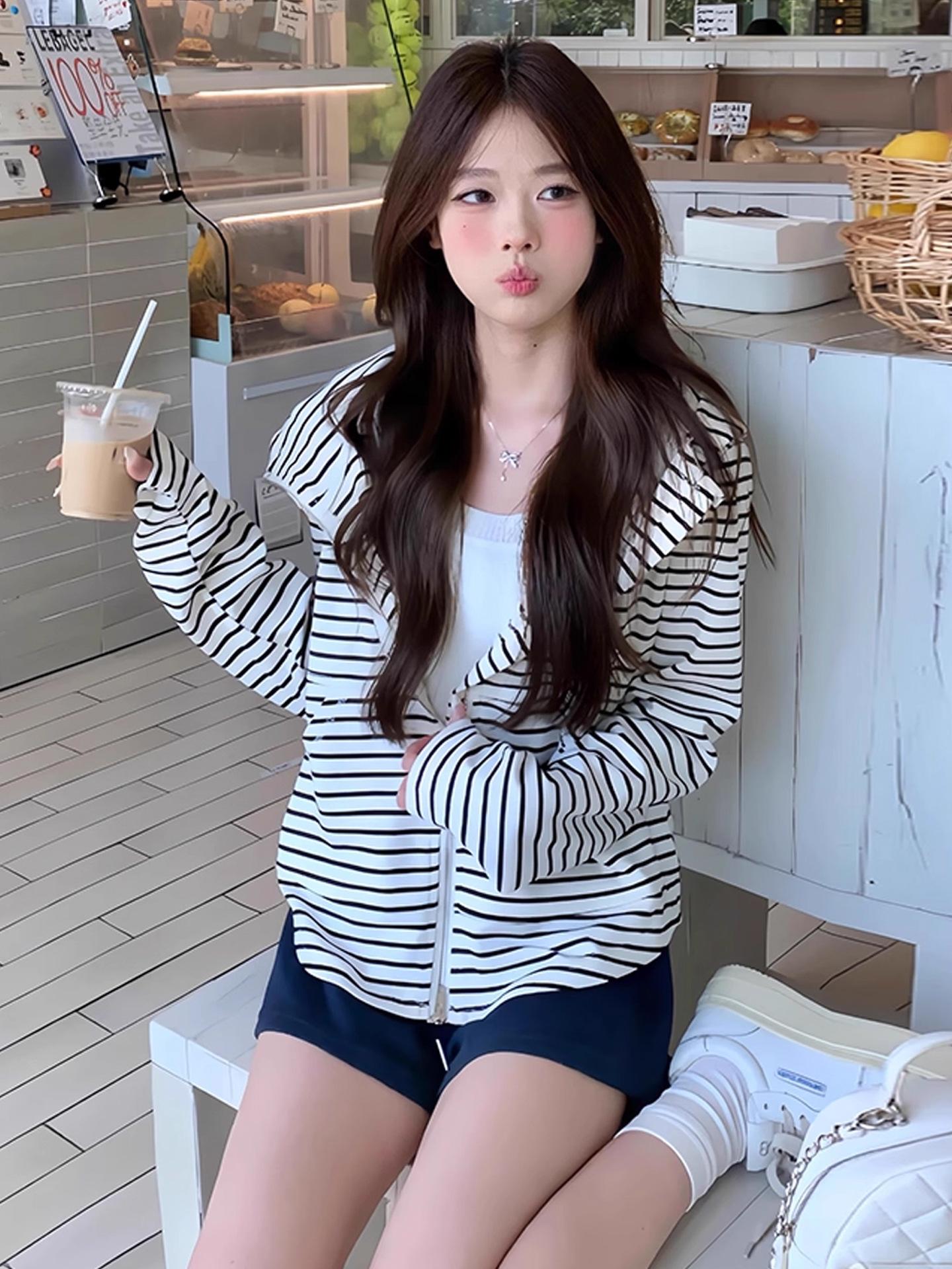 Abrigo Cárdigan Rayado con Capucha Estilo Coreano para Principios de Otoño e Invierno para Mujer Nuevo Casual Ajustado Bolsillo Cremallera Sudadera Top para Mujer