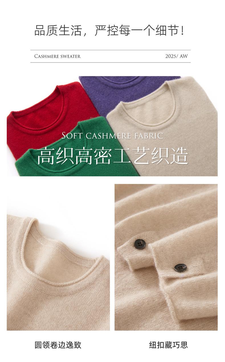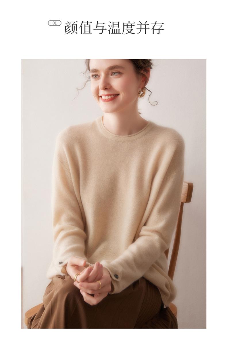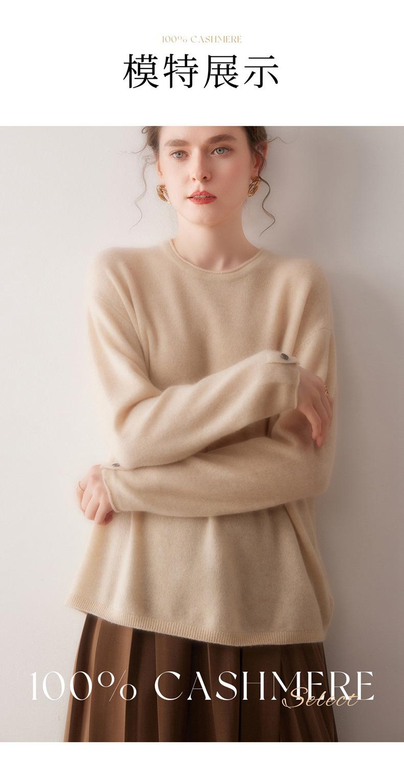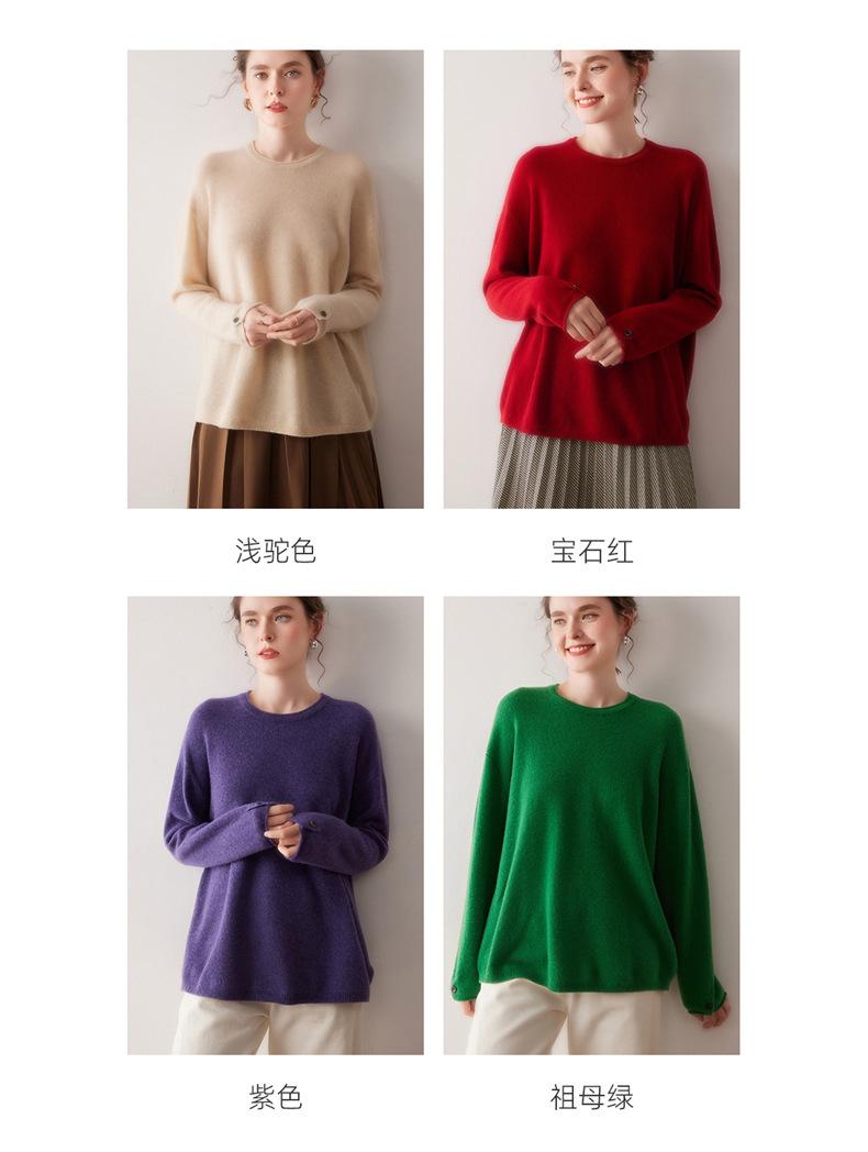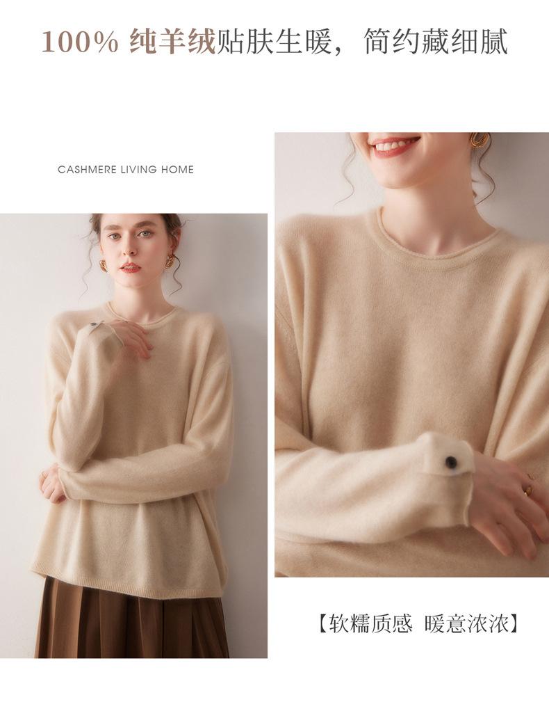 Suéter de cachemira para mujer 100% cachemira pura otoño e invierno nuevo jersey de cuello redondo color sólido moda manga larga tejido suéter base