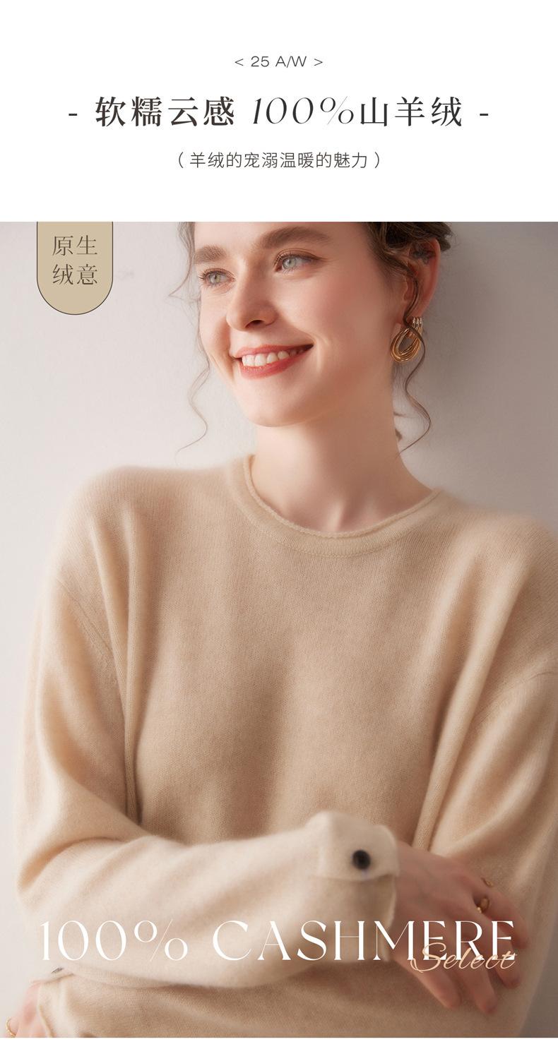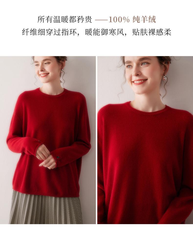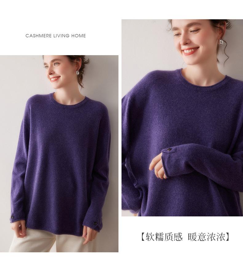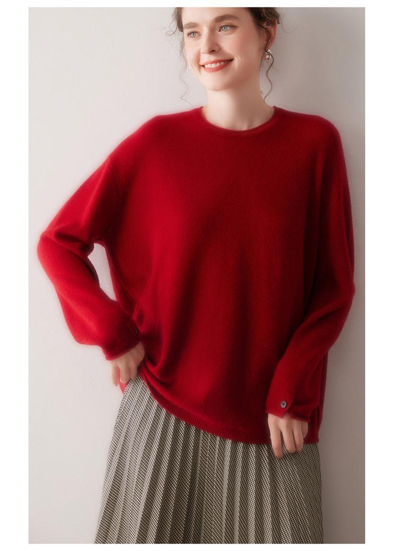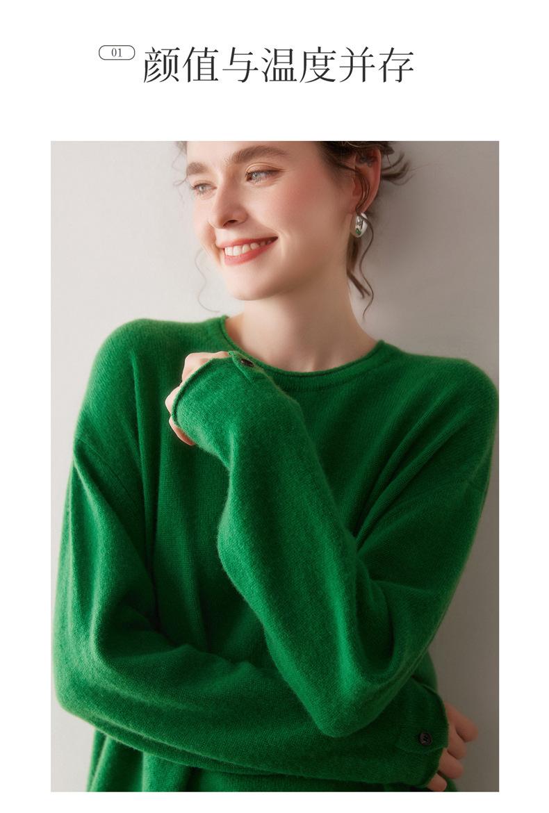 Suéter de cachemira para mujer 100% cachemira pura otoño e invierno nuevo jersey de cuello redondo color sólido moda manga larga tejido suéter base