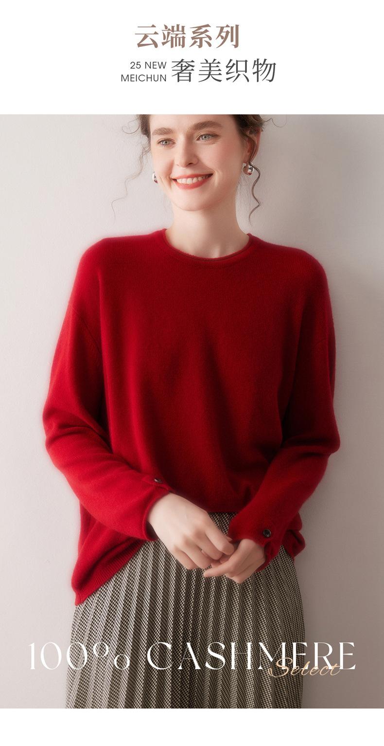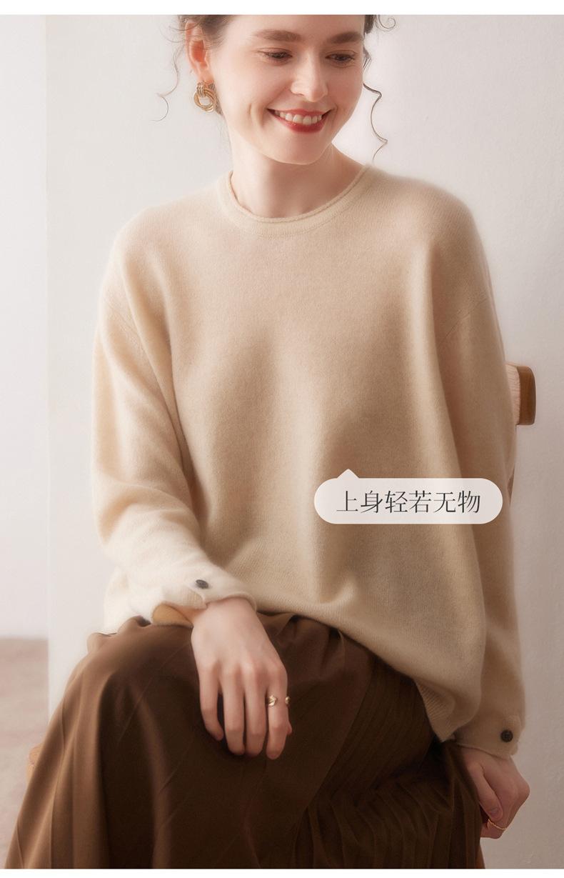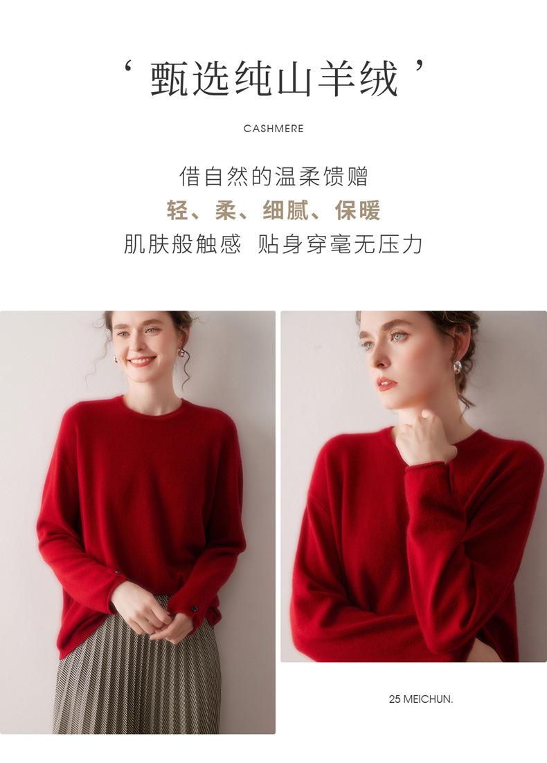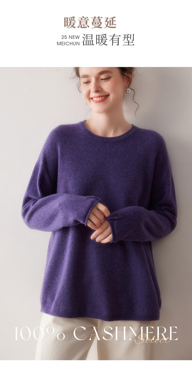 Suéter de cachemira para mujer 100% cachemira pura otoño e invierno nuevo jersey de cuello redondo color sólido moda manga larga tejido suéter base