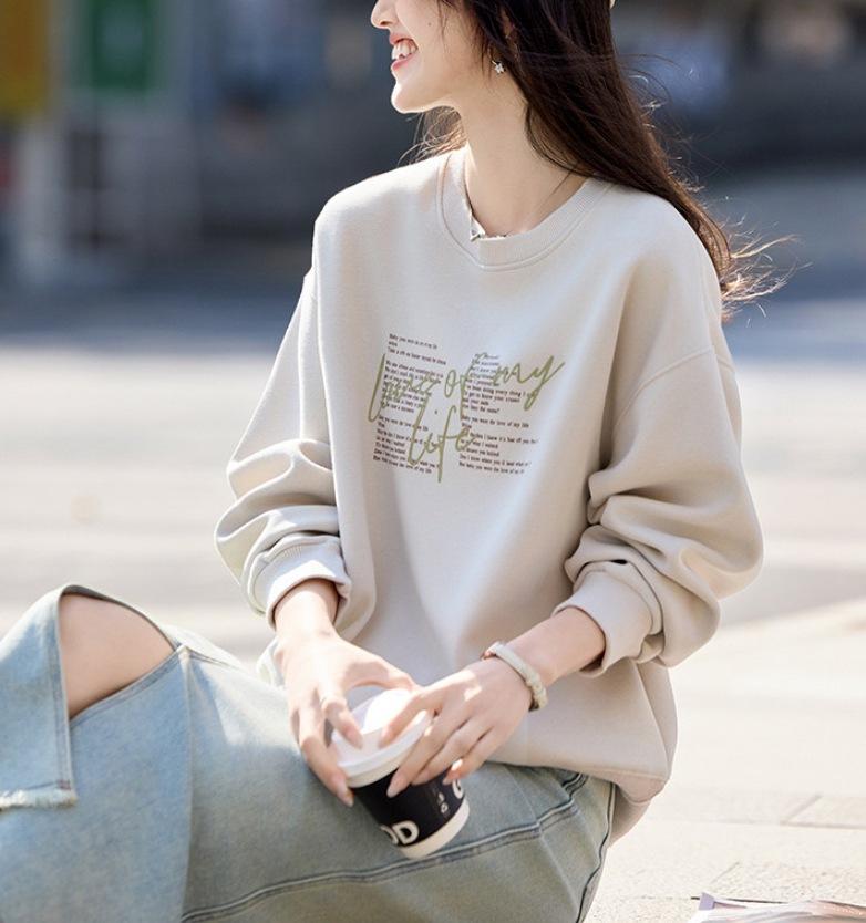 Sudadera Otoño 2025 Nueva Estampado de Letras 3D Moda Trendy Minimalista Talla Pequeña Holgada Casual Top Mujer