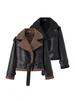 Ropa de mujer de estilo europeo y americano transfronterizo 2025 otoño nueva moda temperamento ropa de mujer piel chaqueta de una pieza abrigo negro