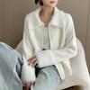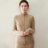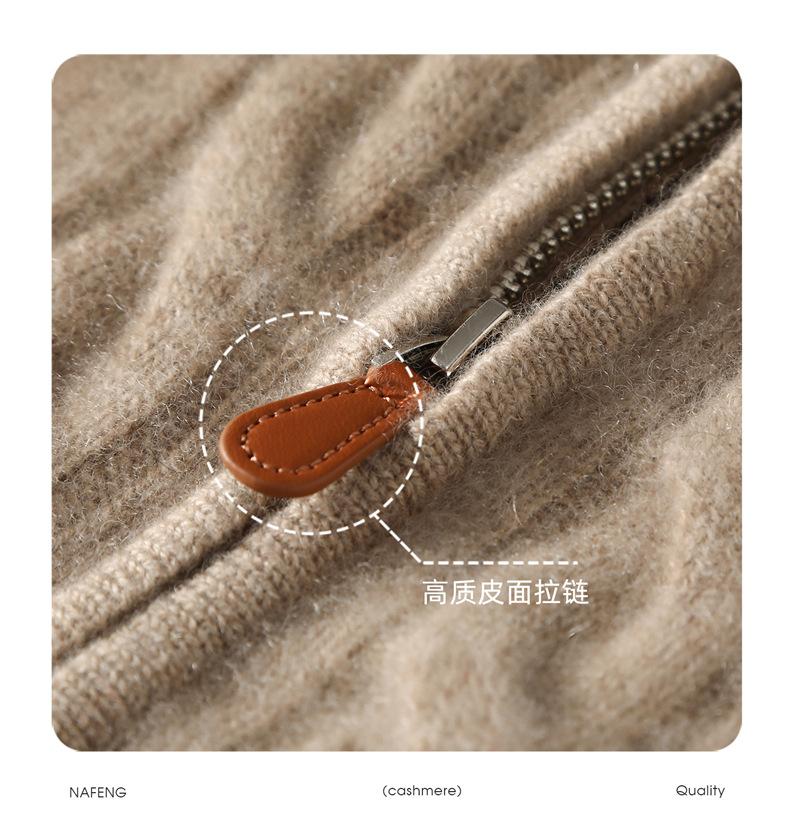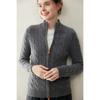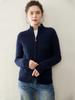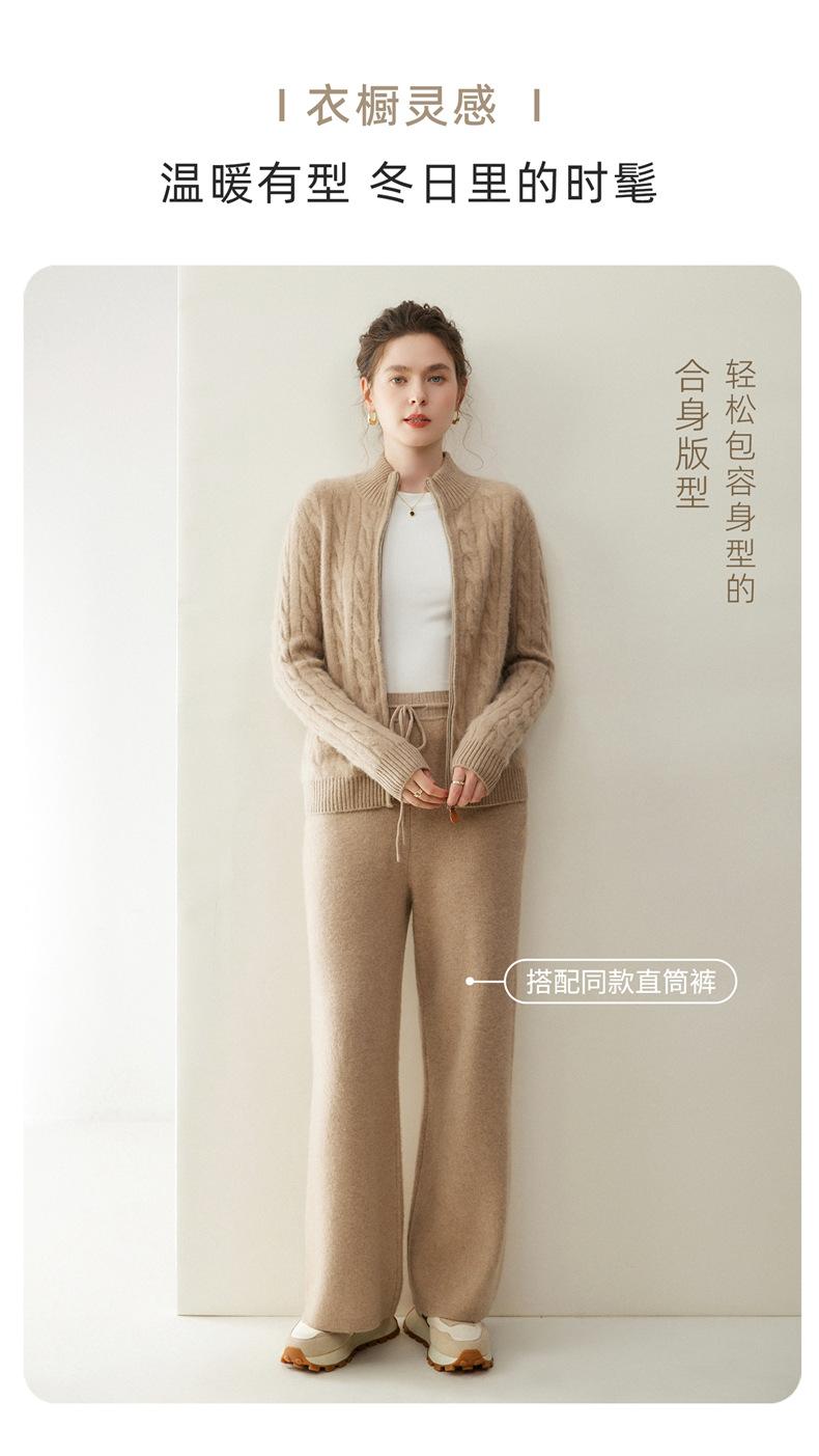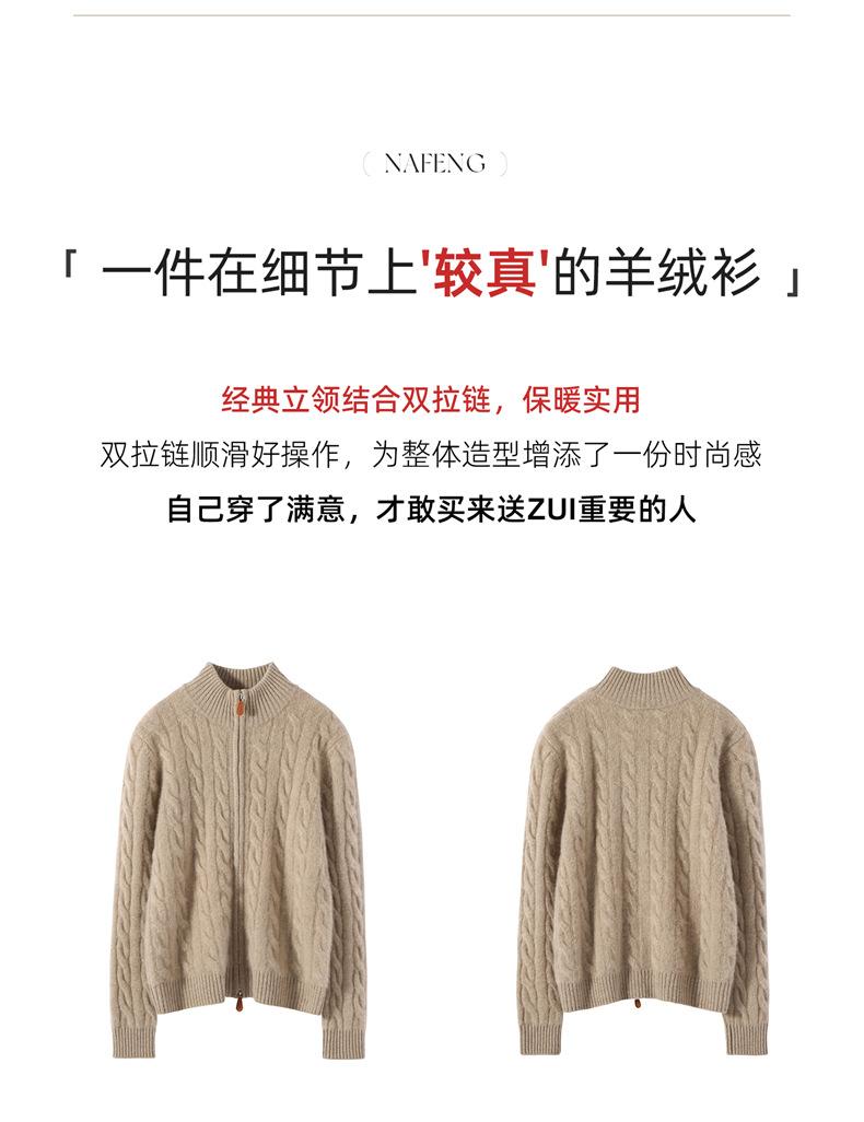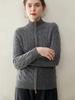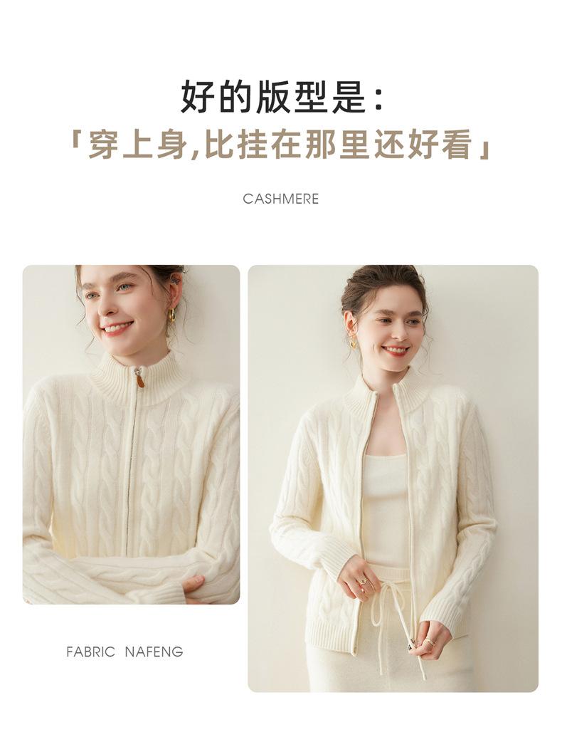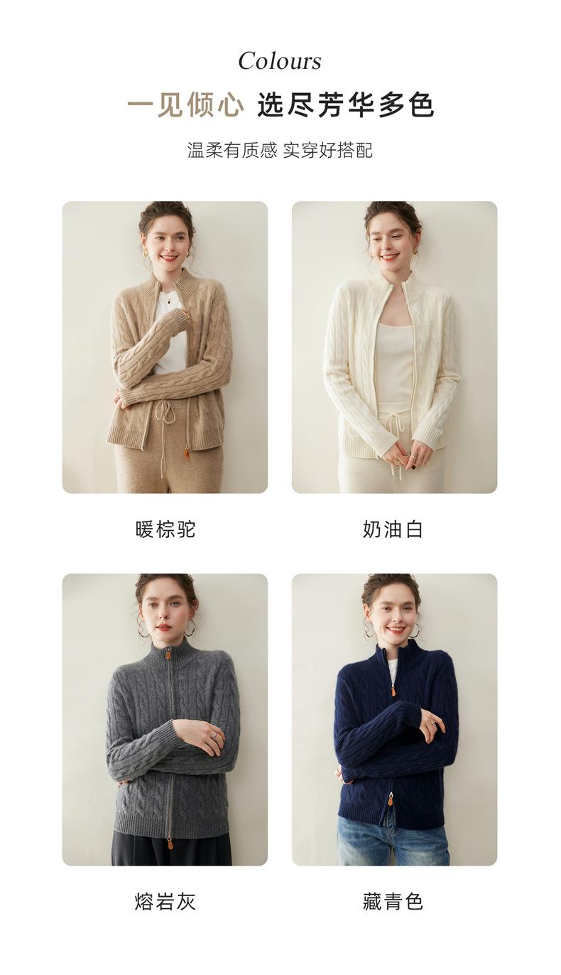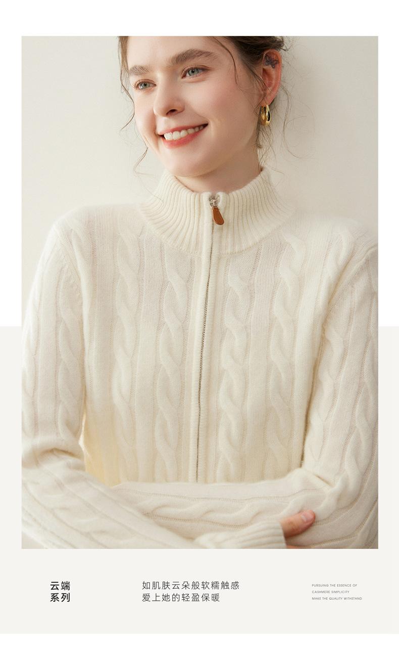 Cárdigan de cachemira de punto de cable de alta gama para mujer, cuello alto, doble cremallera, suéter holgado adelgazante, abrigo grueso