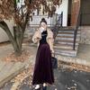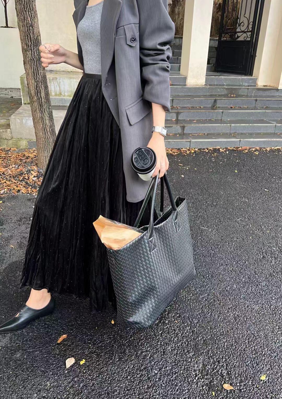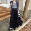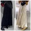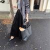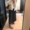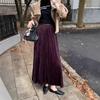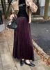Nueva Falda Midi Acampanada de Terciopelo con Pliegues Simple de Estilo Coreano de Otoño/Invierno para Mujer, Holgada, de Cintura Alta Adelgazante, Versátil
