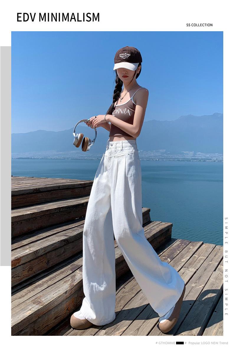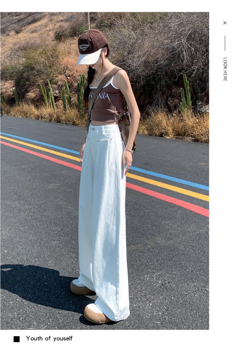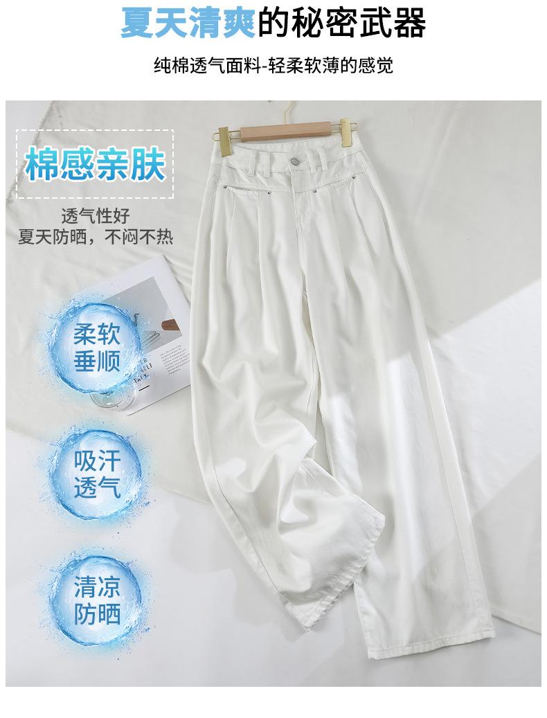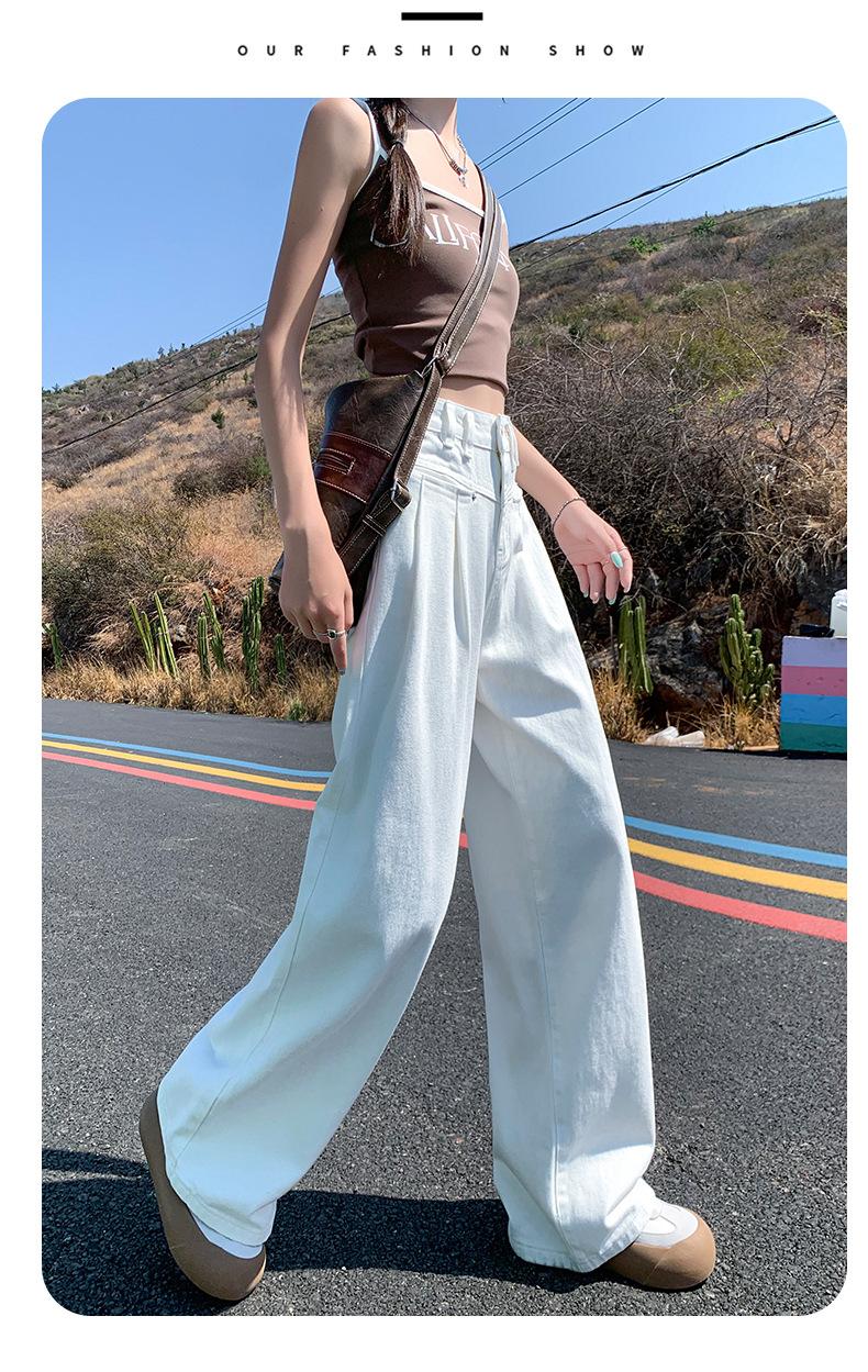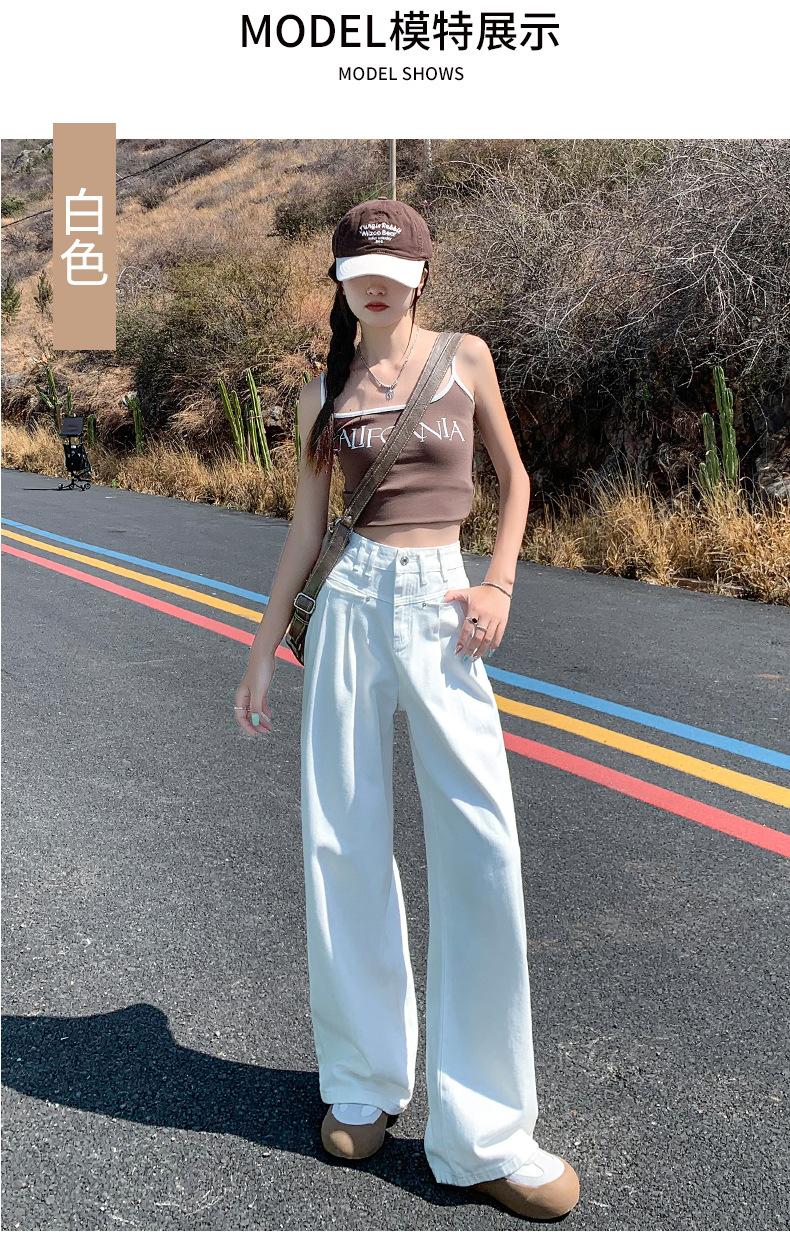 Pantalones Europeos y Americanos Transfronterizos de Comercio Exterior Venta Directa de Fábrica Sueltos de Pierna Ancha con Bolsillo de Solapa Abierta Plisados Ligeros Cómodos Versátiles Jeans Largos hasta el Piso para Mujer