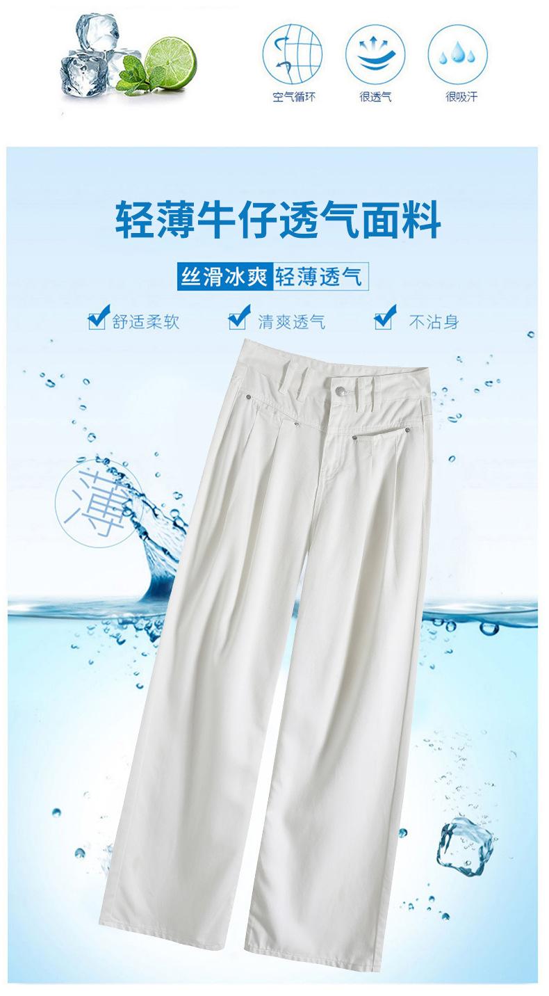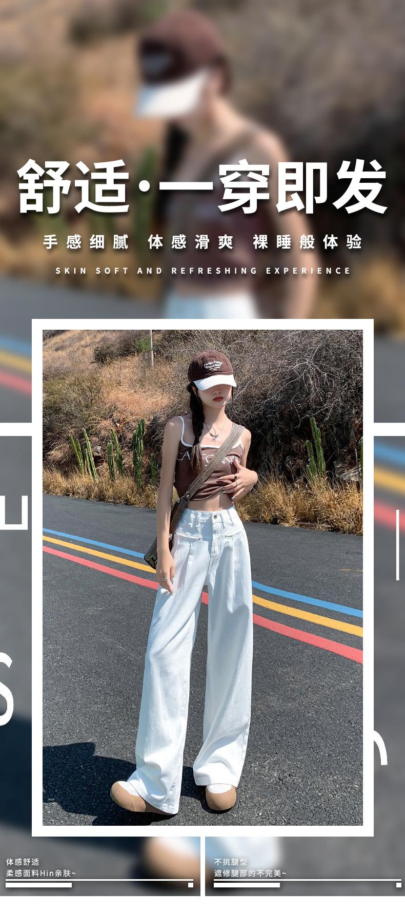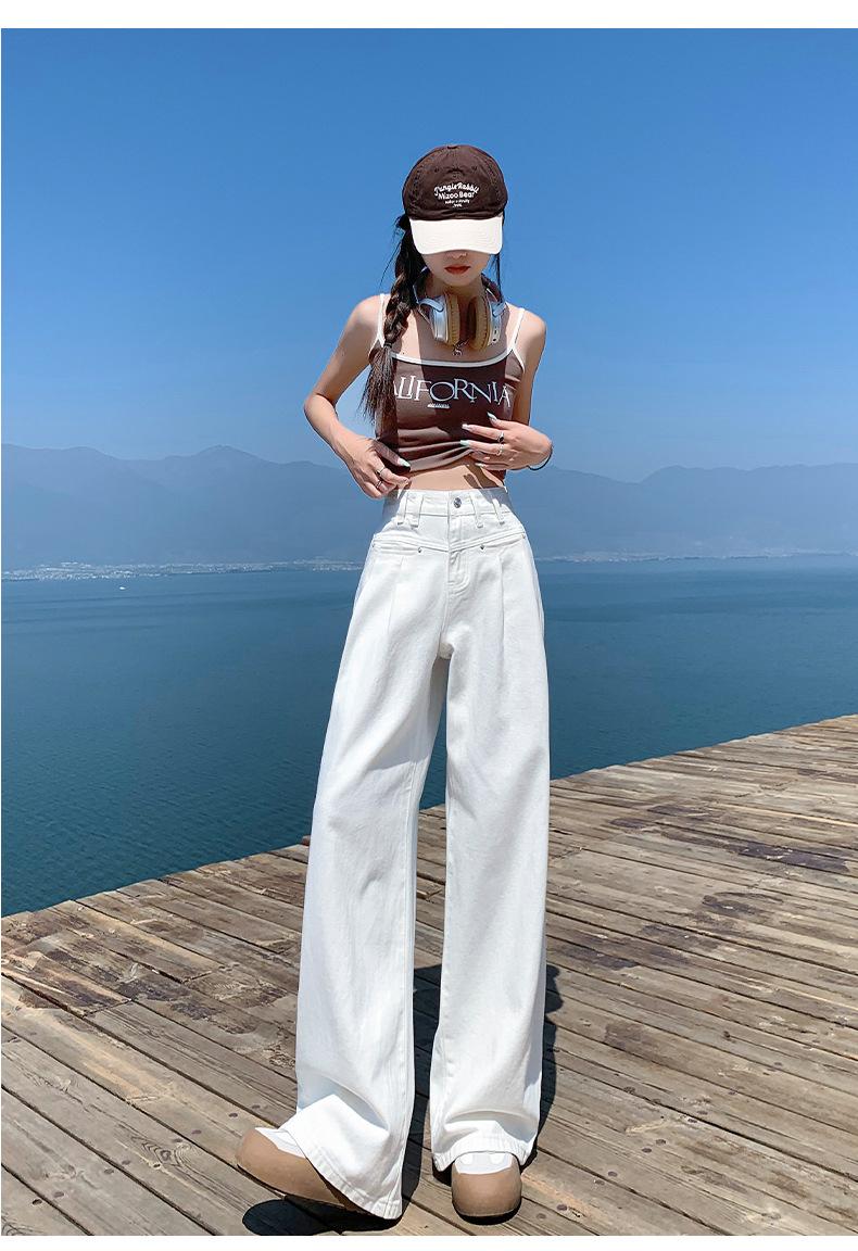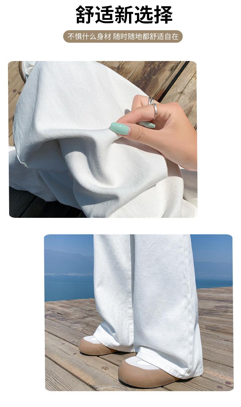 Pantalones Europeos y Americanos Transfronterizos de Comercio Exterior Venta Directa de Fábrica Sueltos de Pierna Ancha con Bolsillo de Solapa Abierta Plisados Ligeros Cómodos Versátiles Jeans Largos hasta el Piso para Mujer
