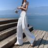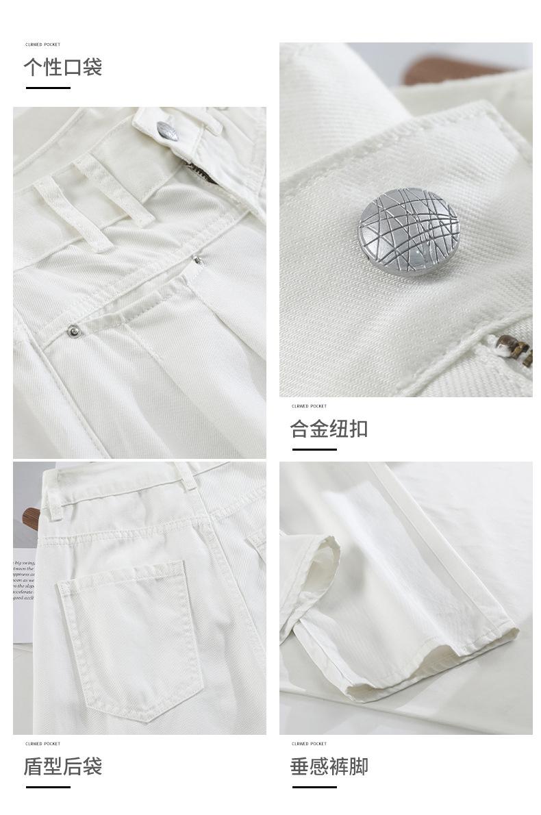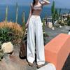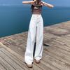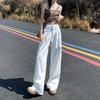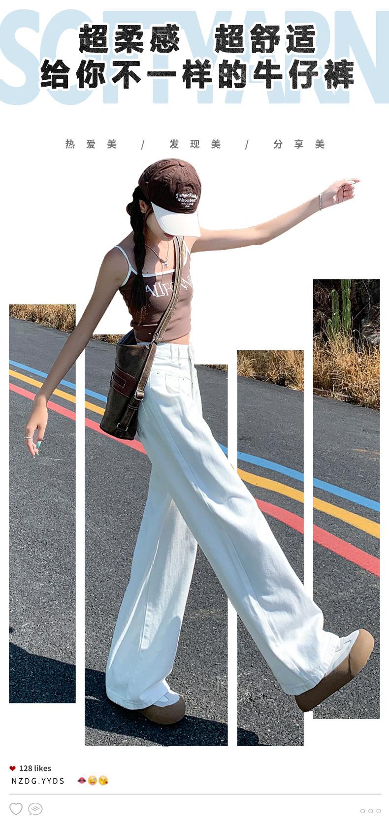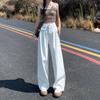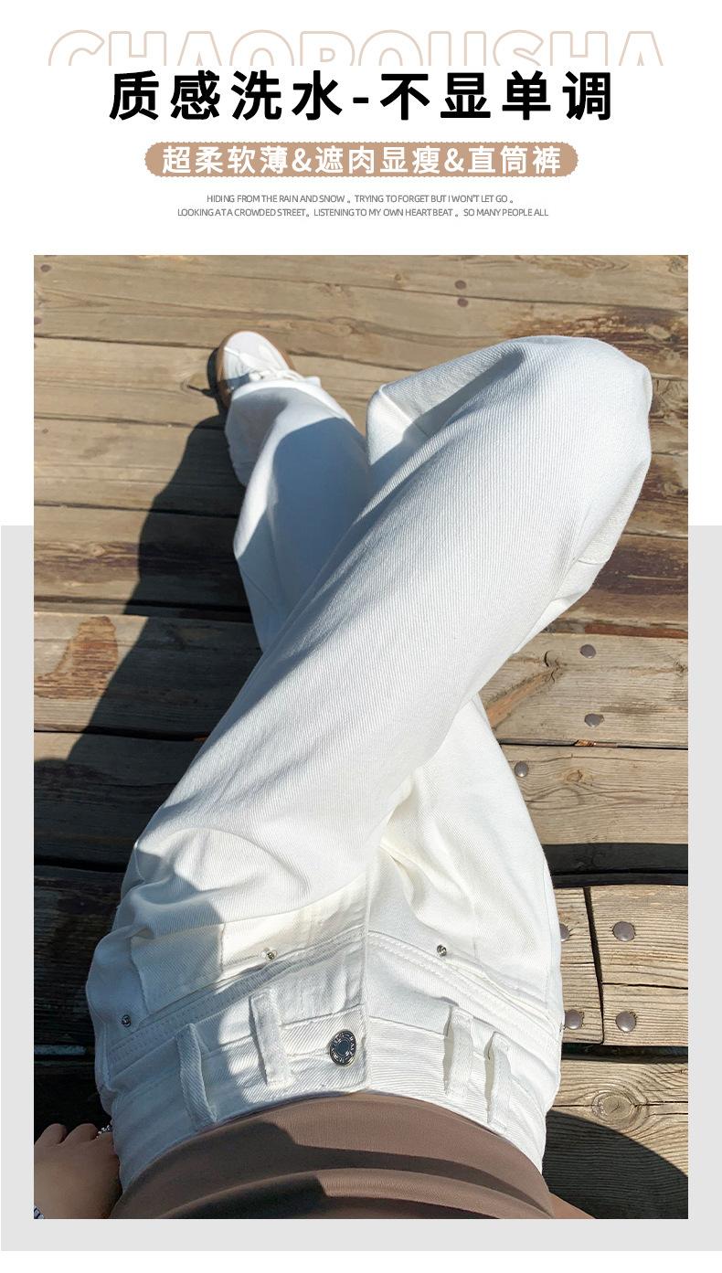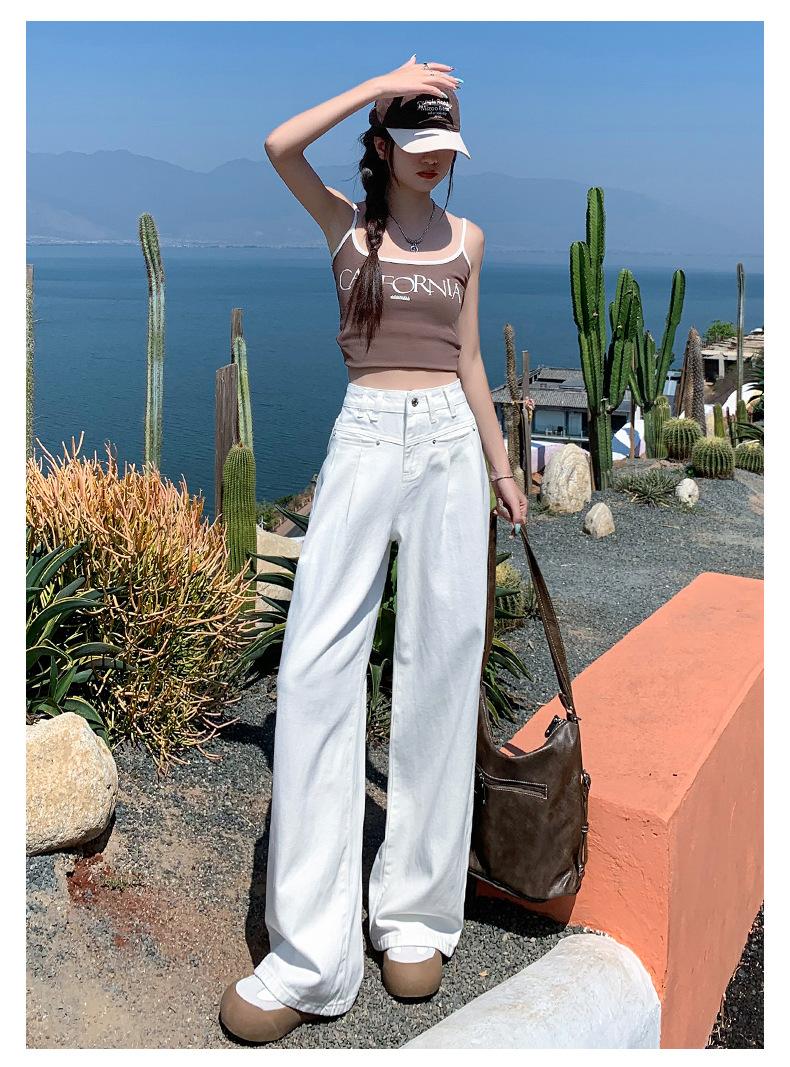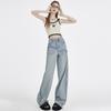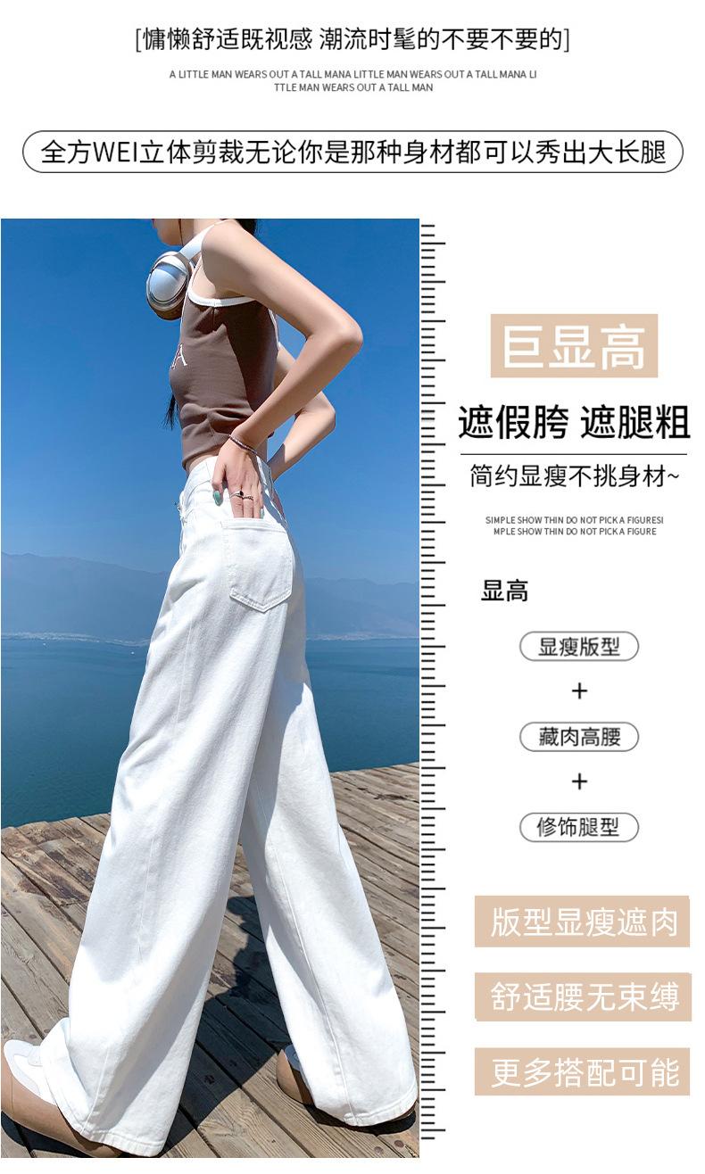 Pantalones Europeos y Americanos Transfronterizos de Comercio Exterior Venta Directa de Fábrica Sueltos de Pierna Ancha con Bolsillo de Solapa Abierta Plisados Ligeros Cómodos Versátiles Jeans Largos hasta el Piso para Mujer