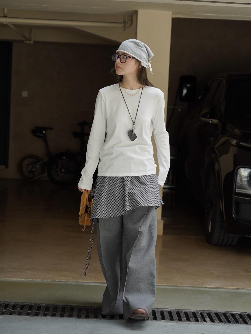 Nuevo Otoño Temprano Estilo Coreano Simple Flojo Blanco Básico Cuello Redondo Manga Larga Camiseta Delicado Suave Top Mujer