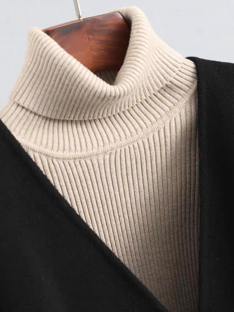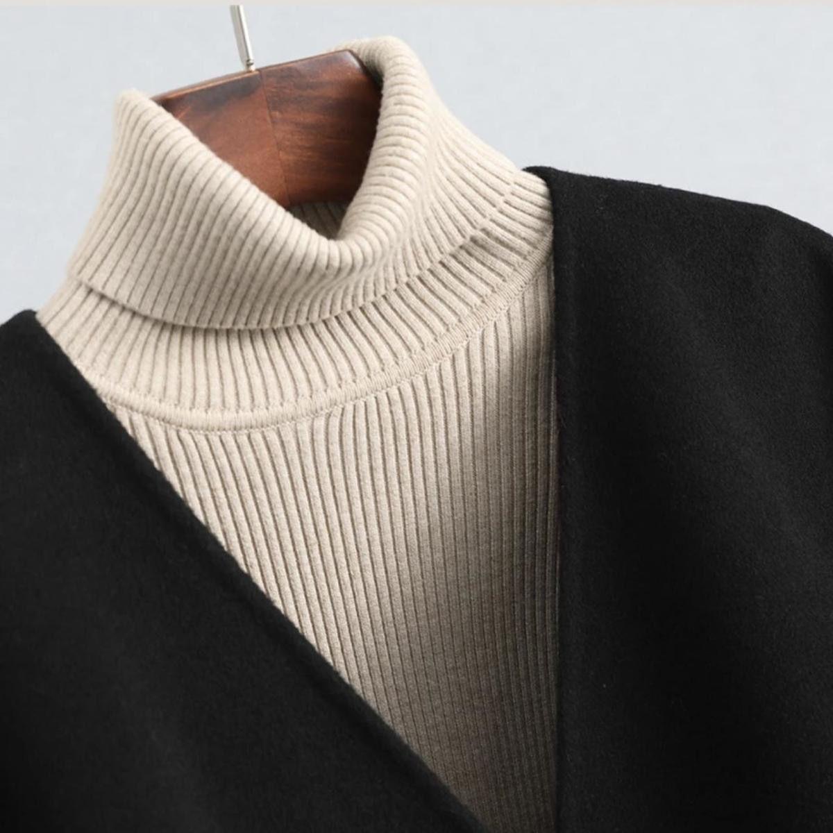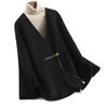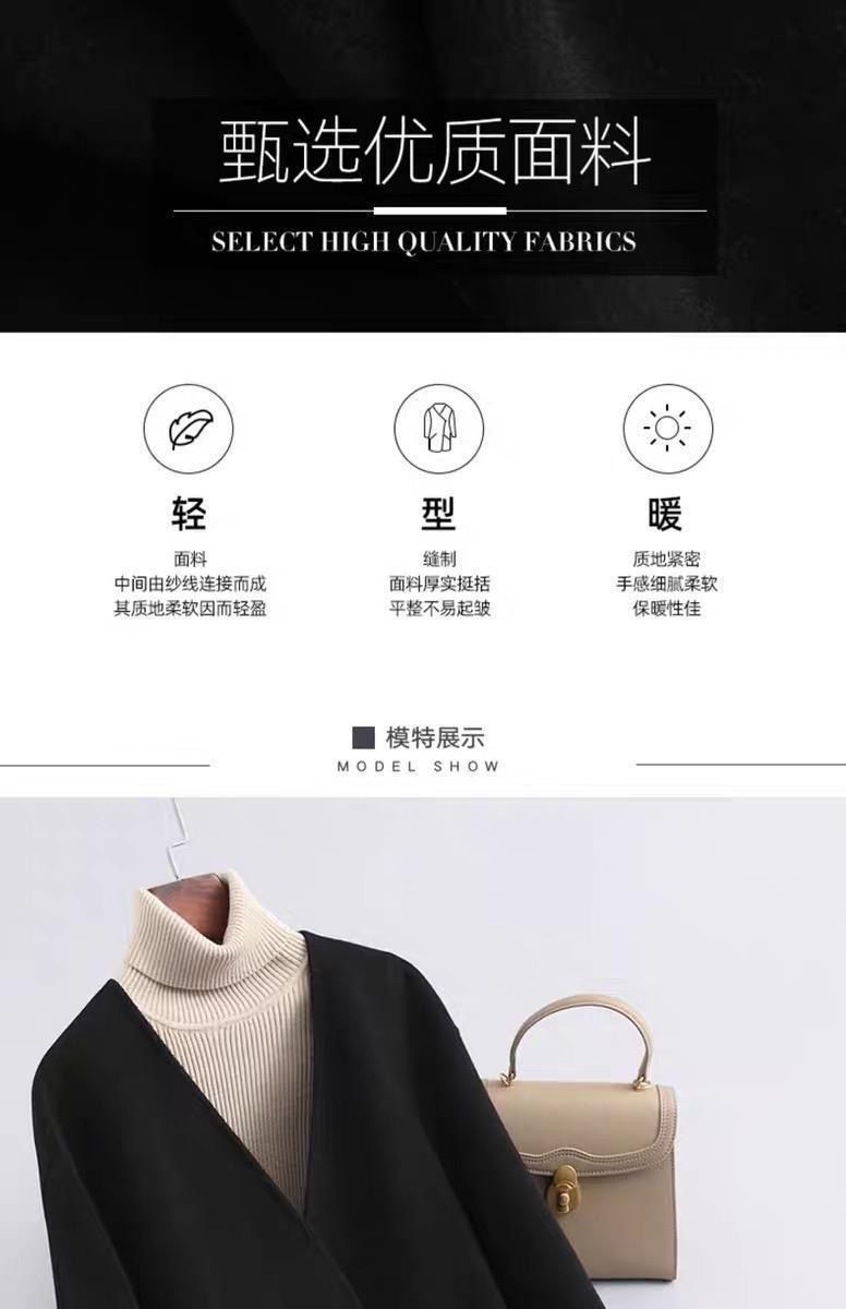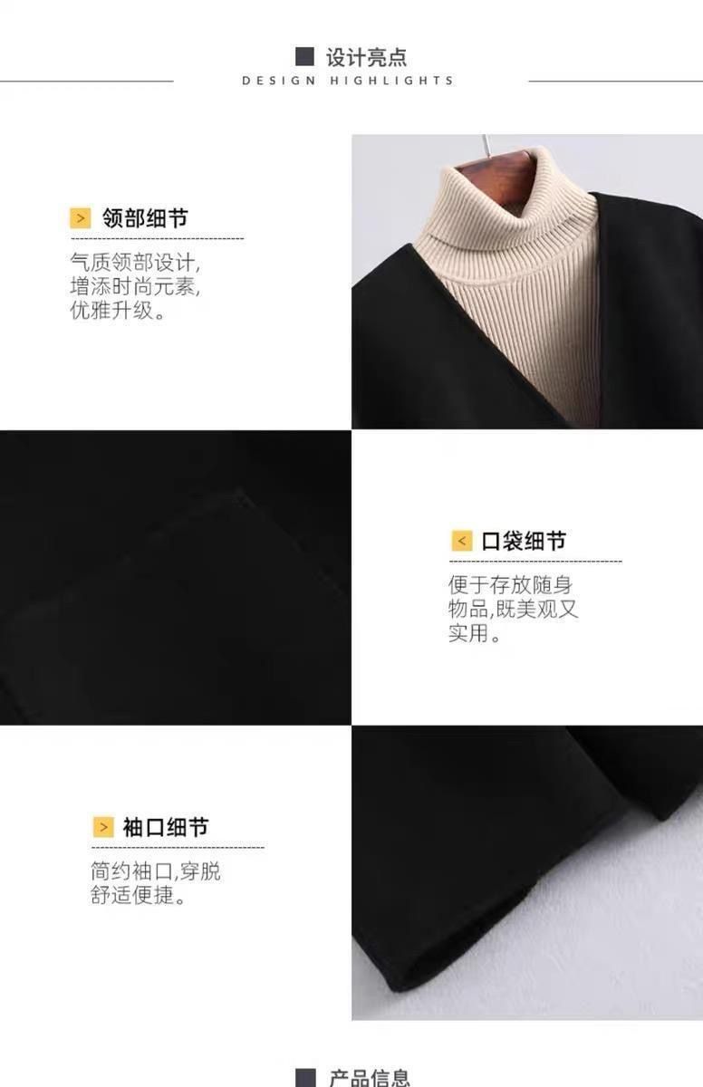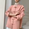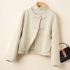 Abrigo de Lana Negro de Doble Vista Estilo Chino Nuevo para Mujer, Abrigo de Lana con Botones de Palanca de Alto Temperamento, Nuevo Top para Otoño e Invierno 2025