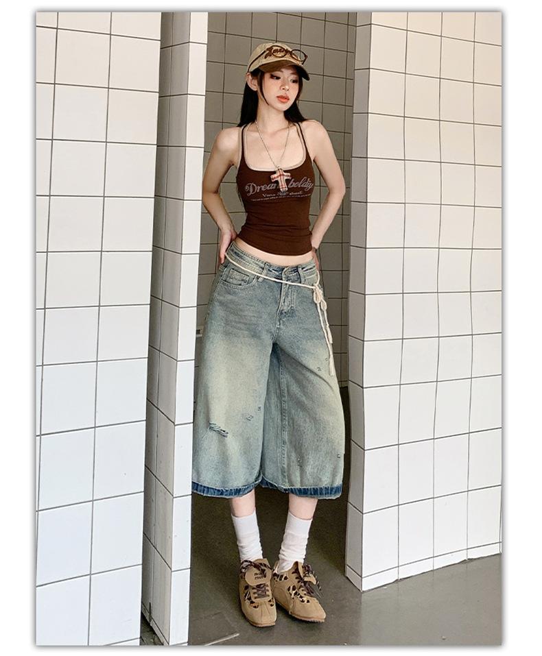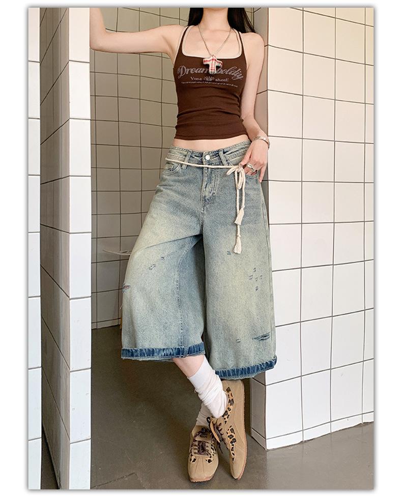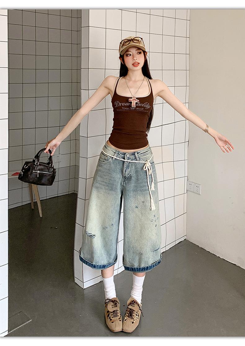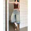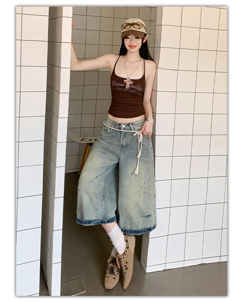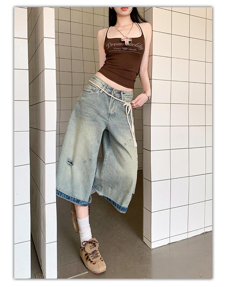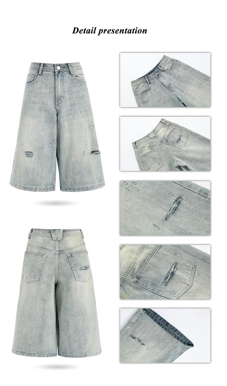Pantalones Recortados Retro Rotos de Estilo Urbano Americano para Hombres y Mujeres, Jeans Sueltos de Pierna Ancha