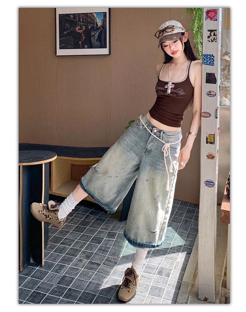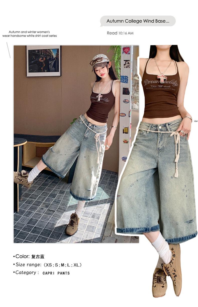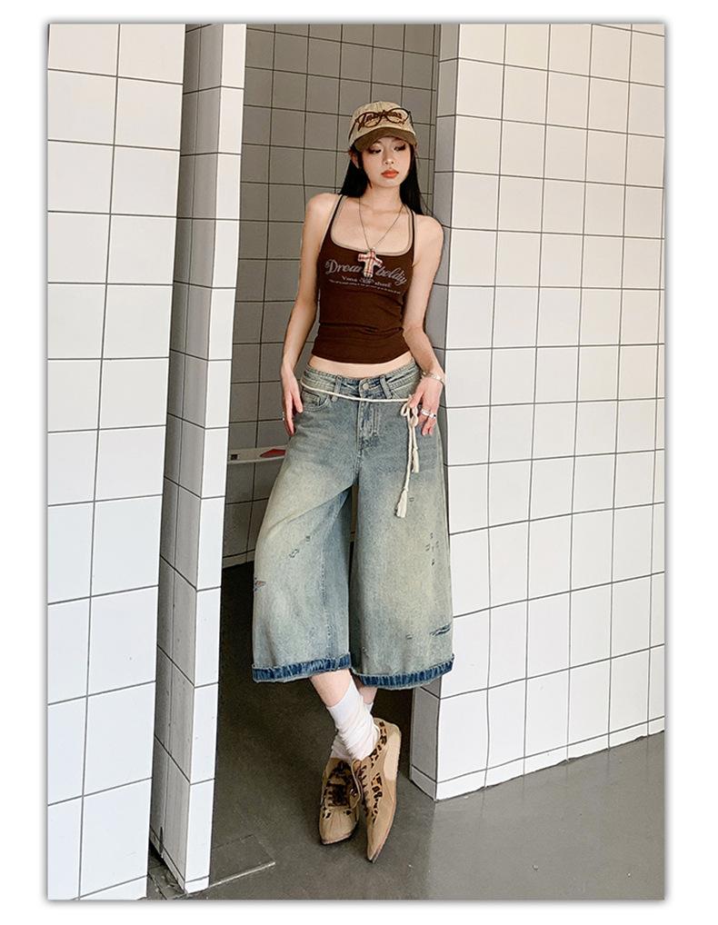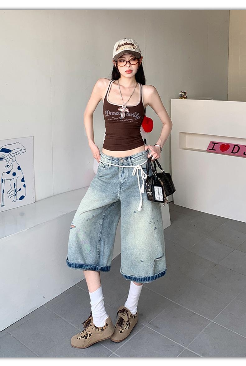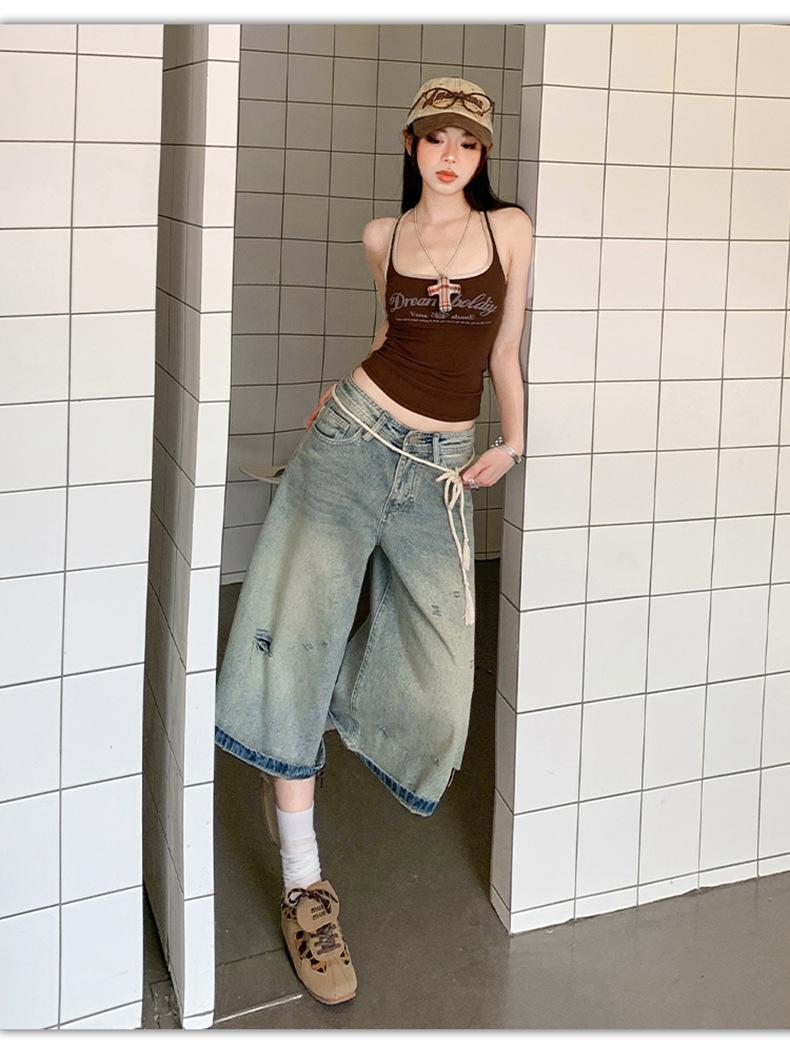 Pantalones Recortados Retro Rotos de Estilo Urbano Americano para Hombres y Mujeres, Jeans Sueltos de Pierna Ancha