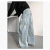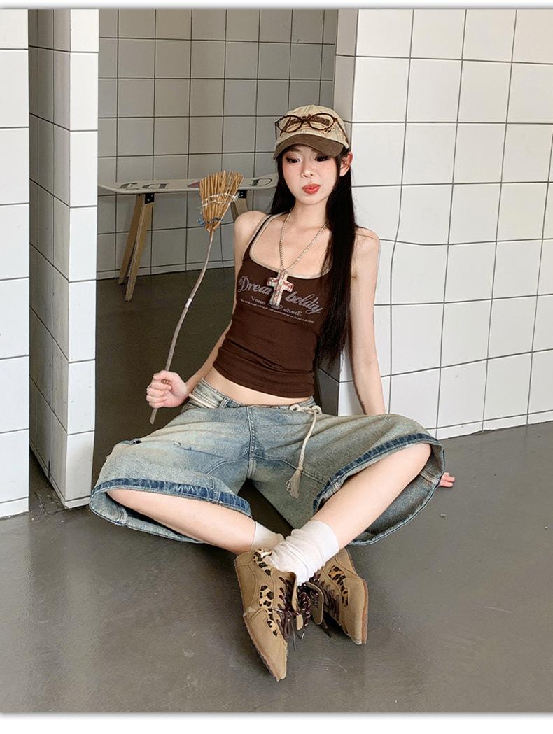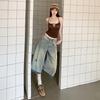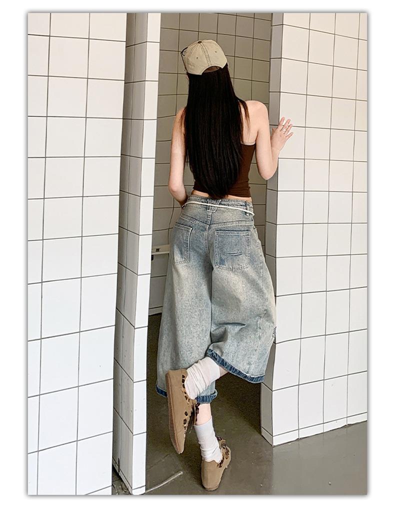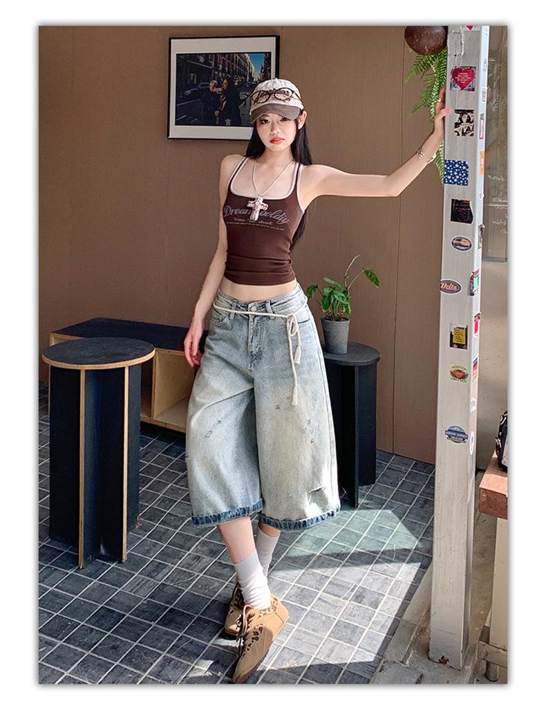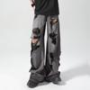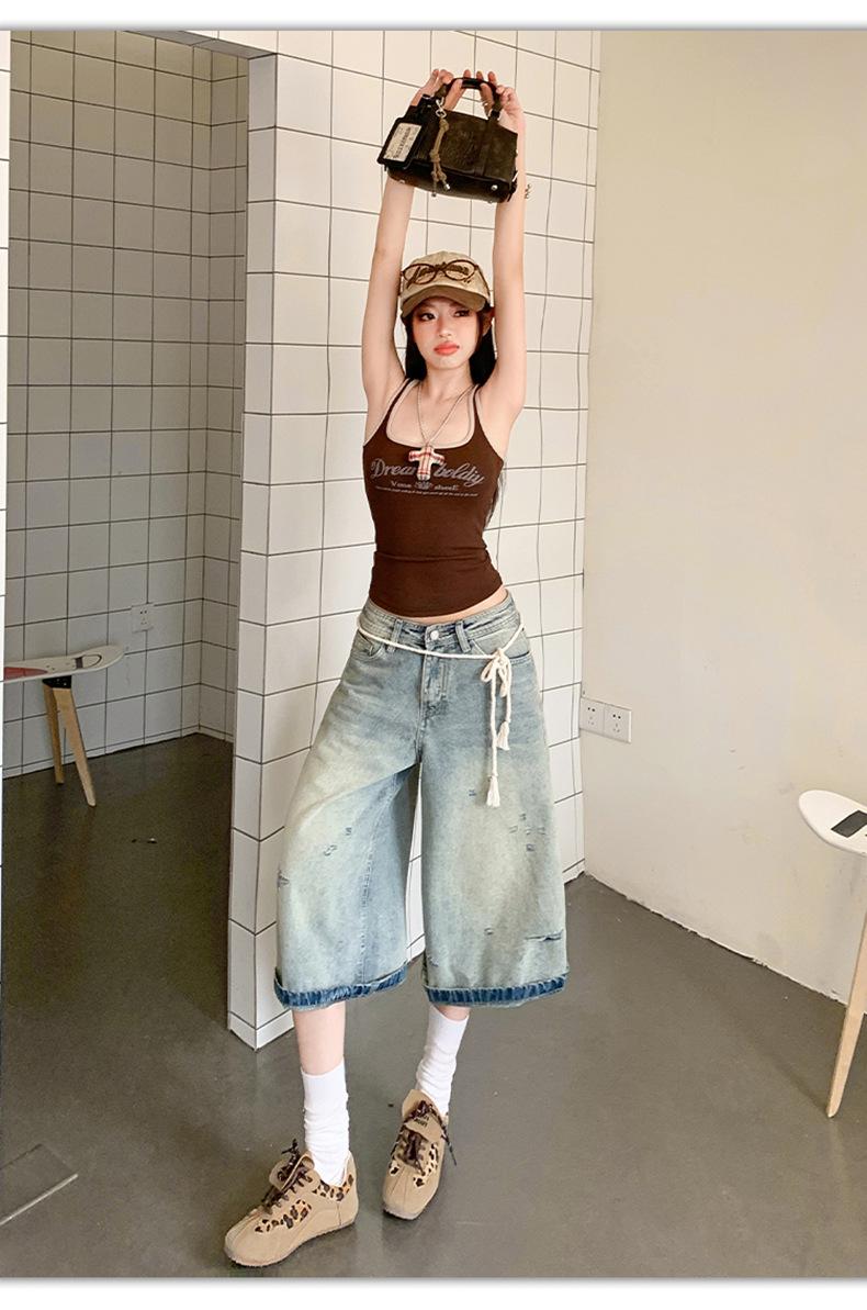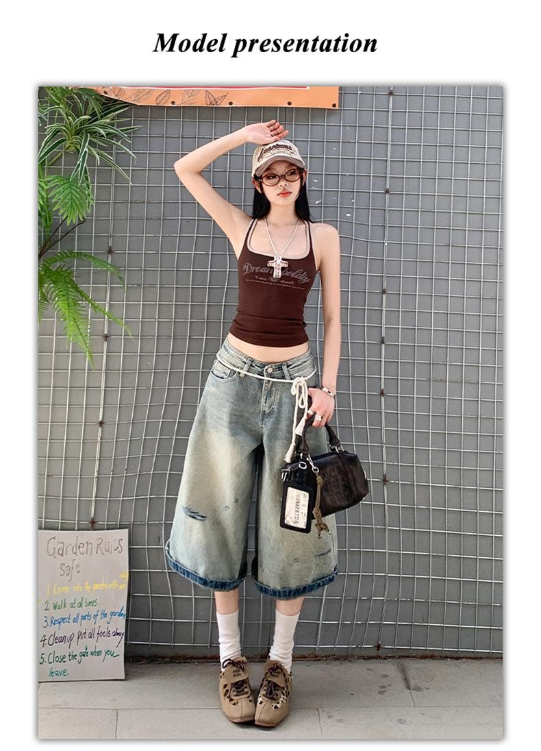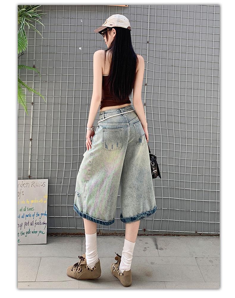 Pantalones Recortados Retro Rotos de Estilo Urbano Americano para Hombres y Mujeres, Jeans Sueltos de Pierna Ancha