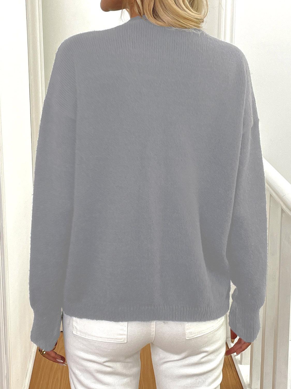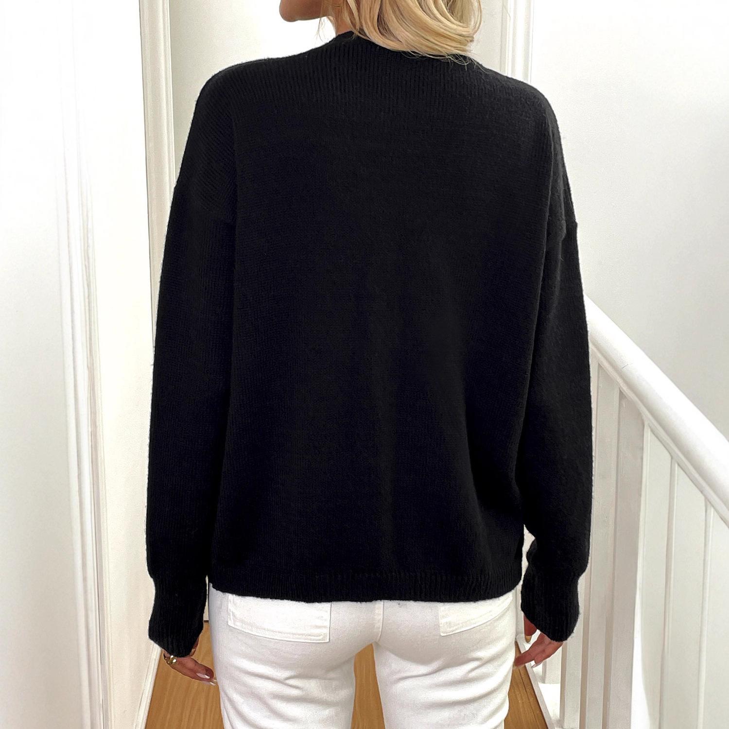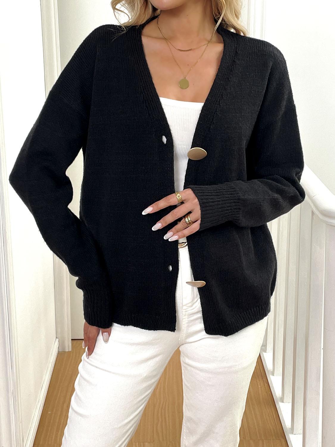 Cárdigan corto de talla europea con botones grandes, ropa de mujer europea y americana transfronteriza, suéter cálido de felpa de ciervo con cuello en V y manga larga para mujer