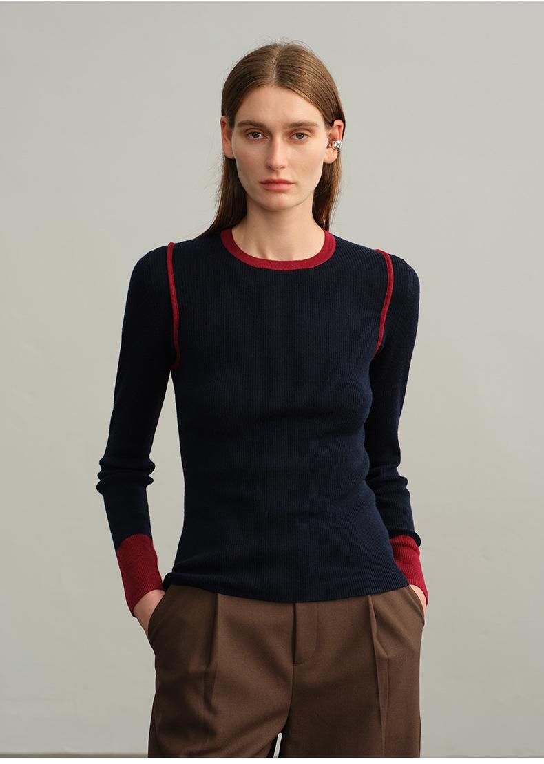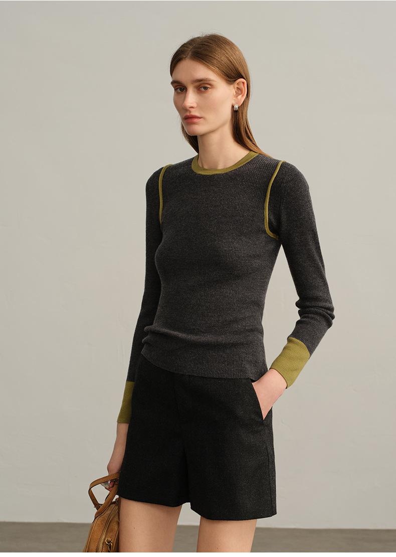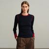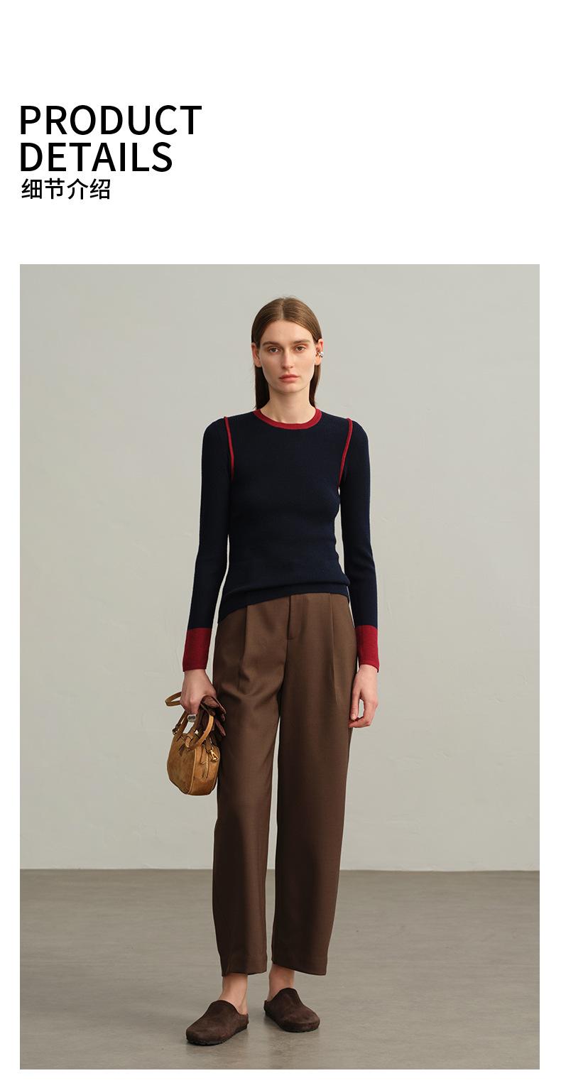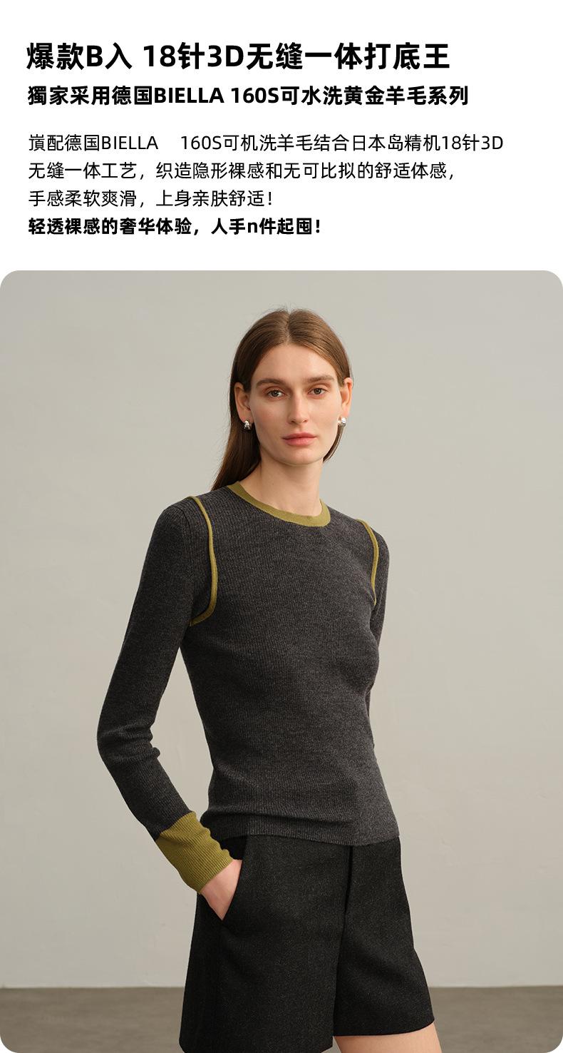 Suéter de Lana para Mujer 100% Lana Pura Nuevo Hilado Alemán Yangtze Cuello Redondo Jersey Manga Larga Tejido a Rayas Suéter Base
