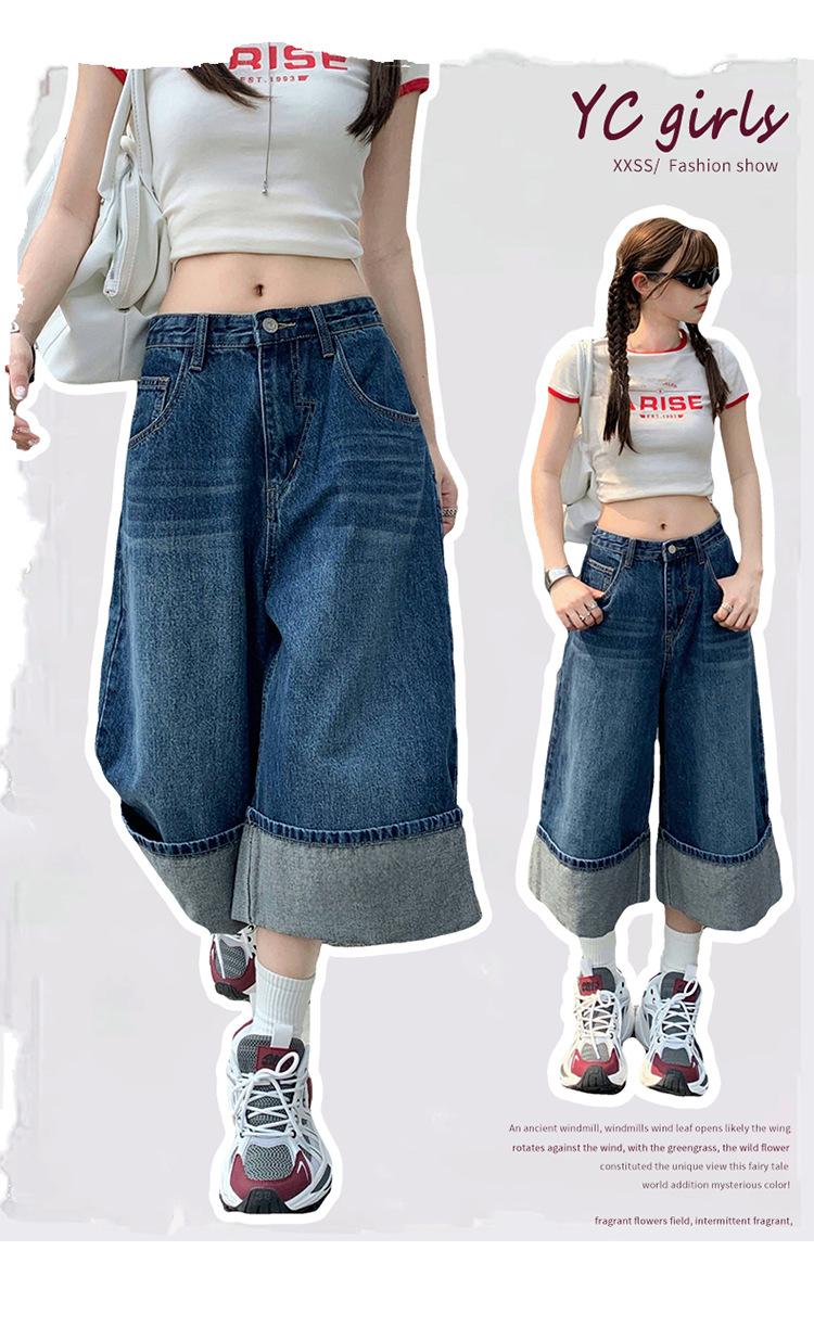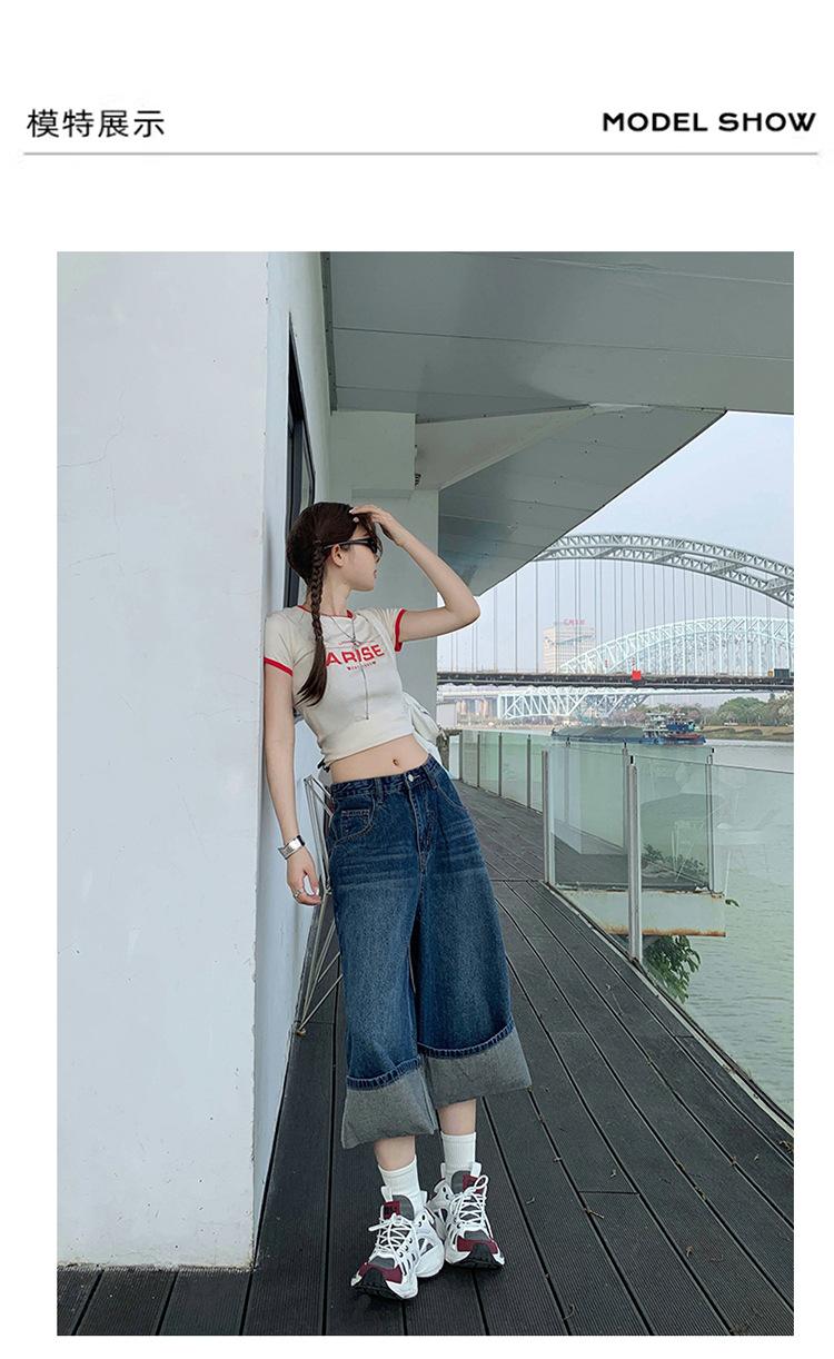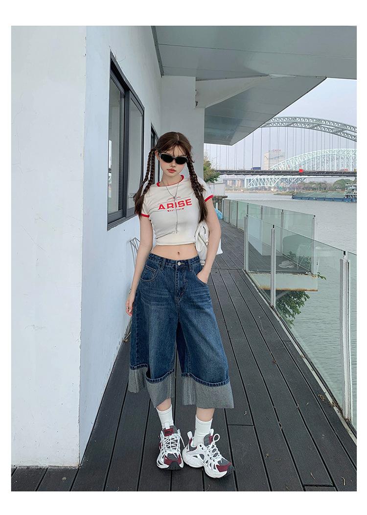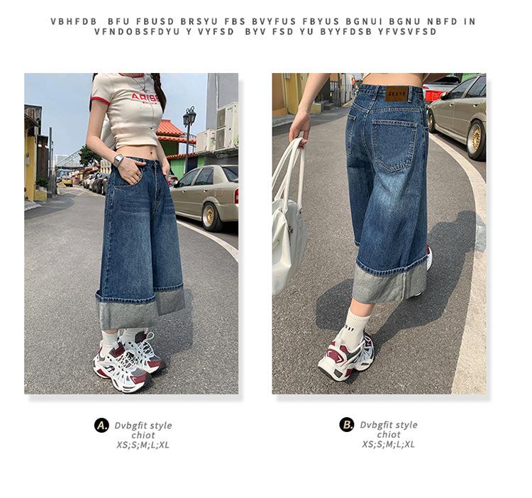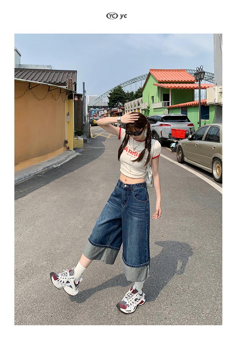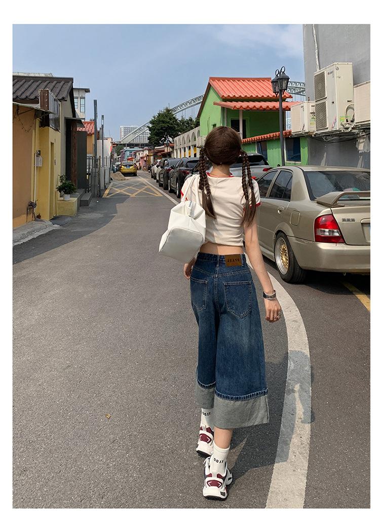 Naranja Infantil # Diseño Americano Retro con Puño Jeans de Pierna Ancha de Cintura Alta para Mujer, Sueltos, Ajustados, Pantalones Recortados Modernos y Versátiles