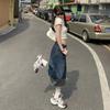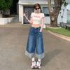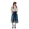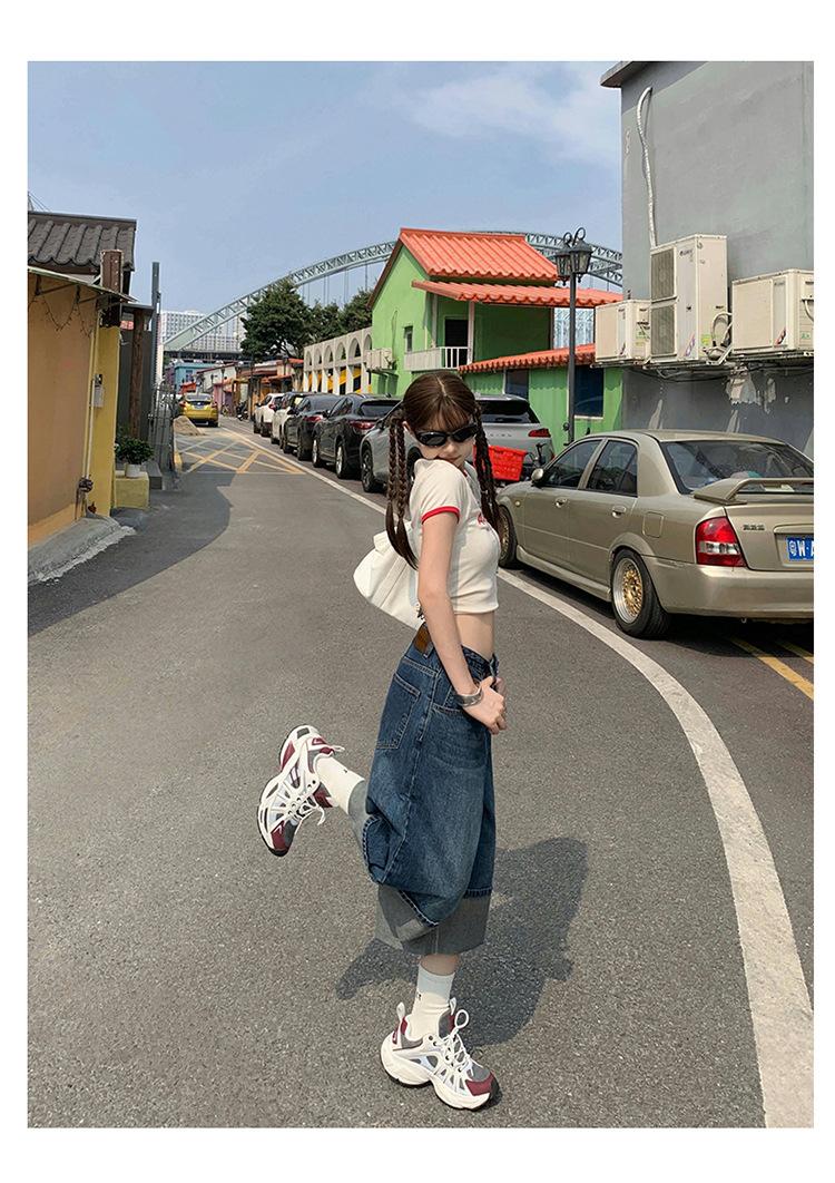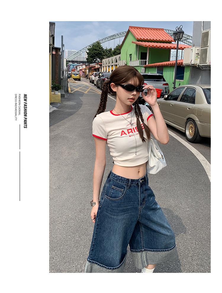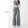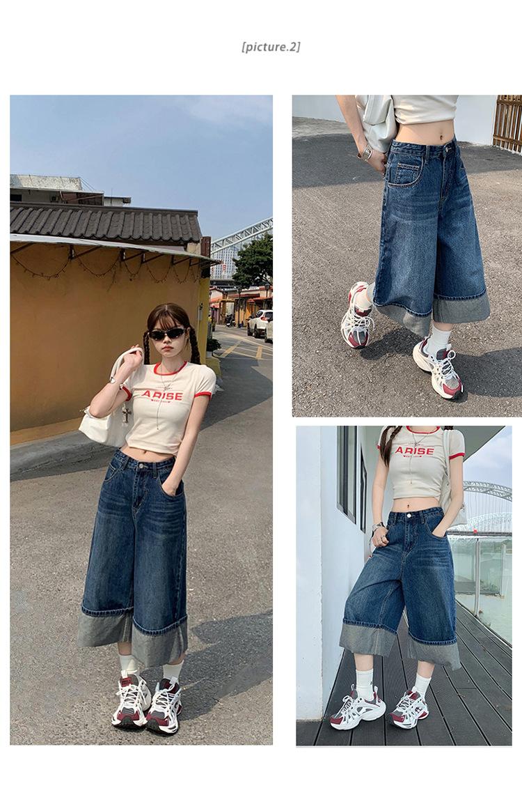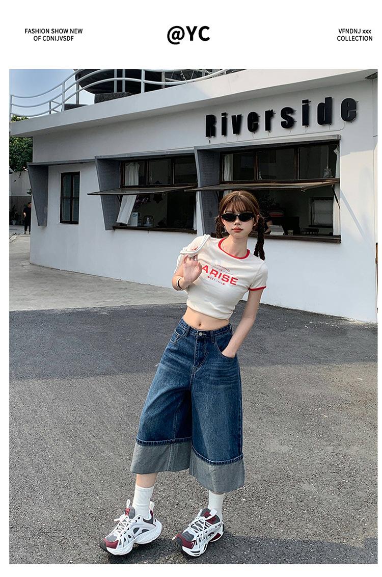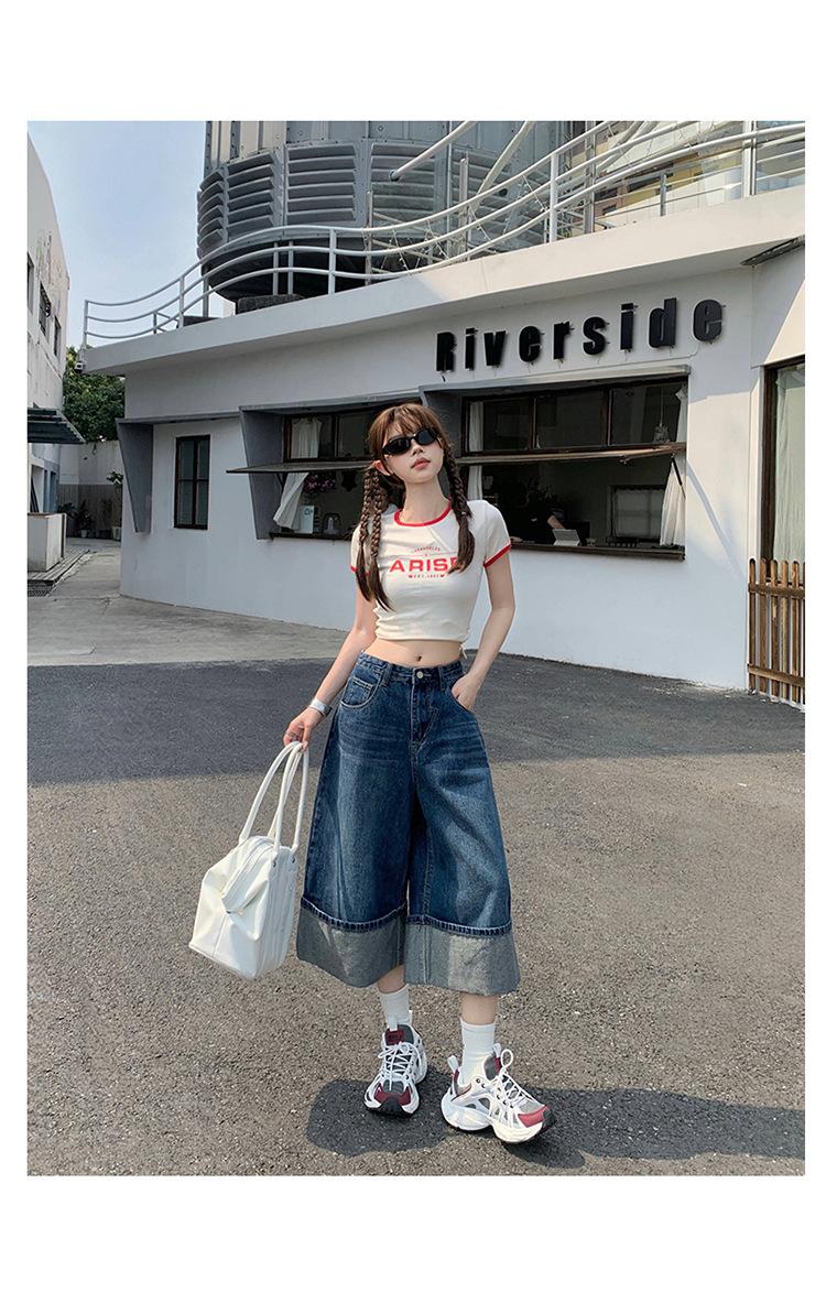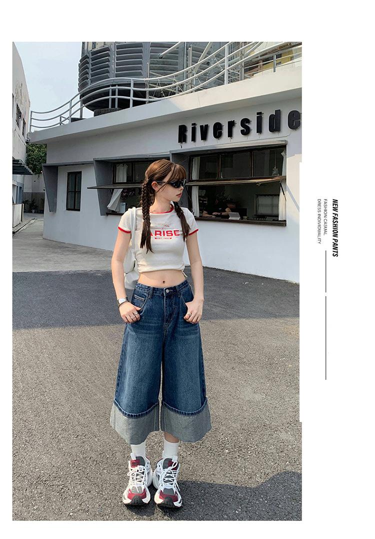 Naranja Infantil # Diseño Americano Retro con Puño Jeans de Pierna Ancha de Cintura Alta para Mujer, Sueltos, Ajustados, Pantalones Recortados Modernos y Versátiles