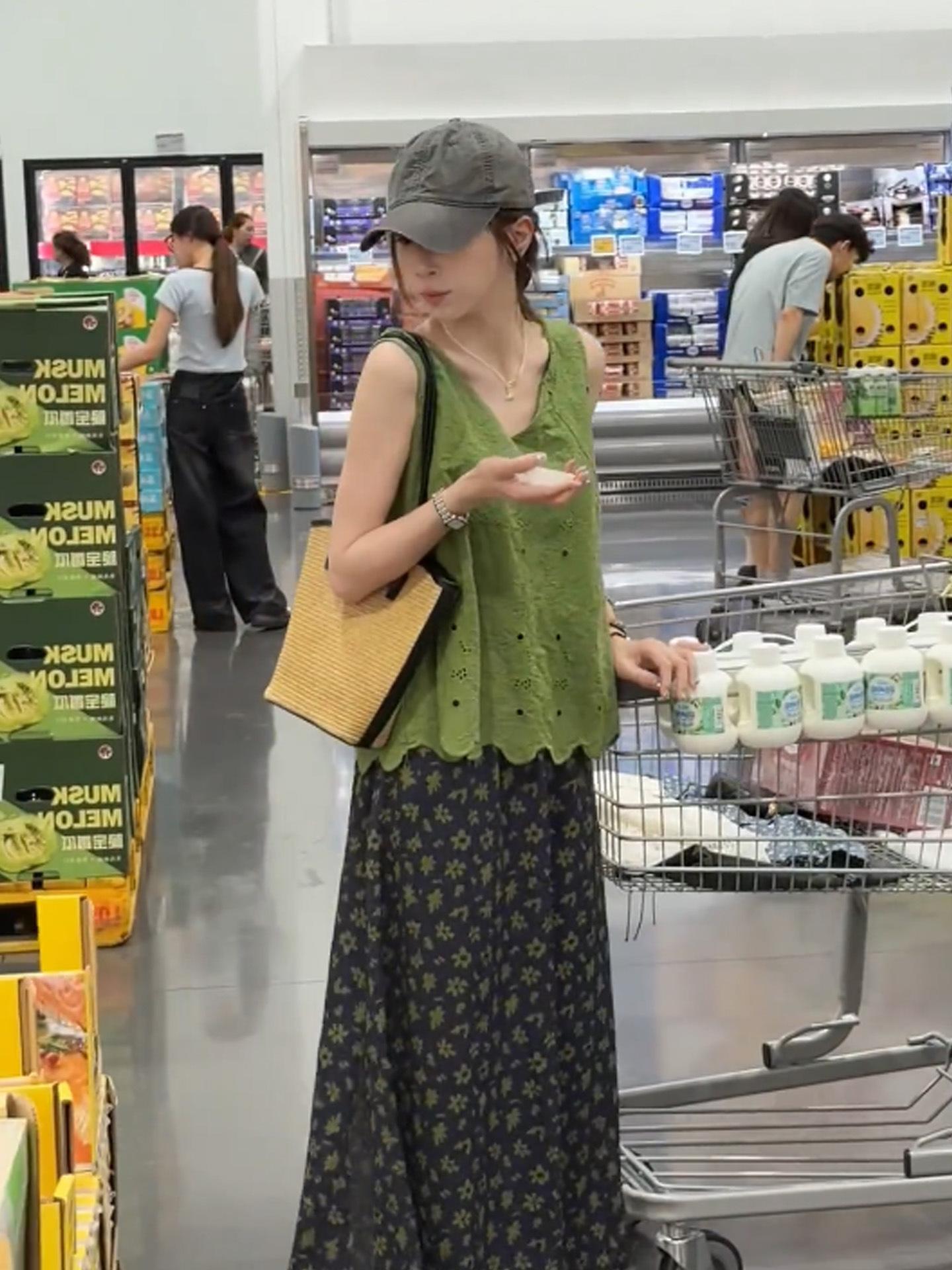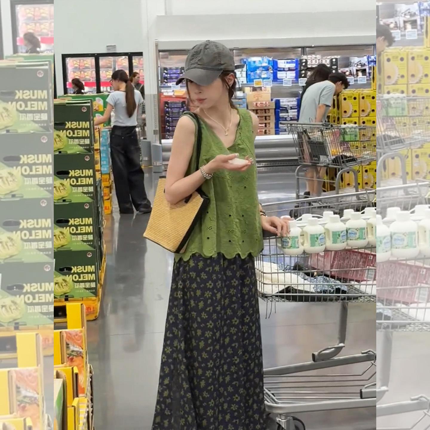 Estilo Caliente, Chaleco sin Mangas Súper Bonito + Falda Floral Conjunto de Dos Piezas Moda de Verano para Mujer Traje Reductor de Edad