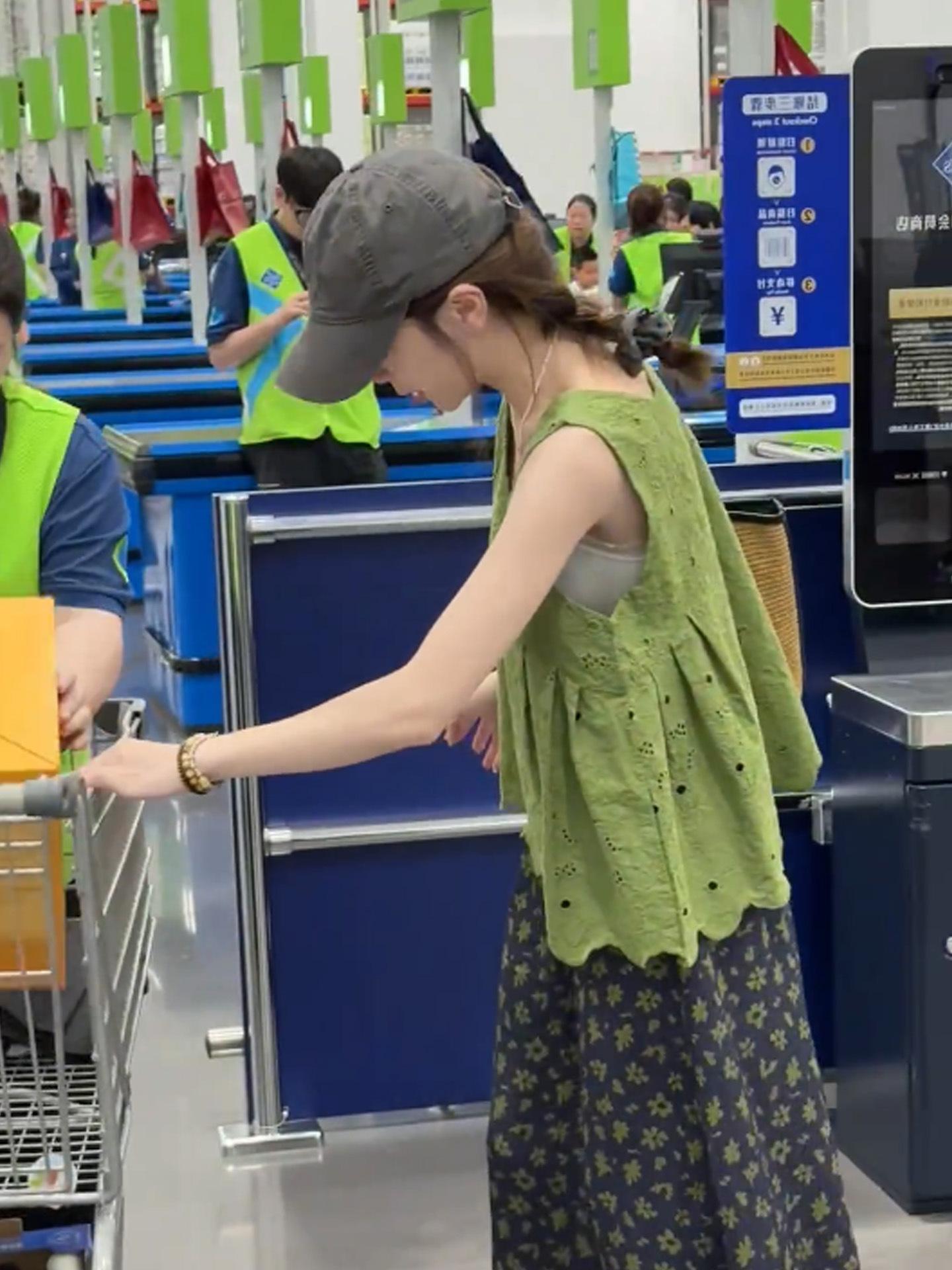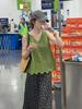 Green shirt + floral skirt