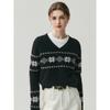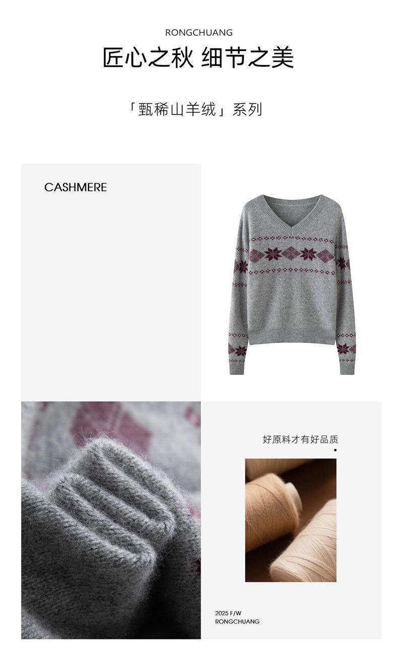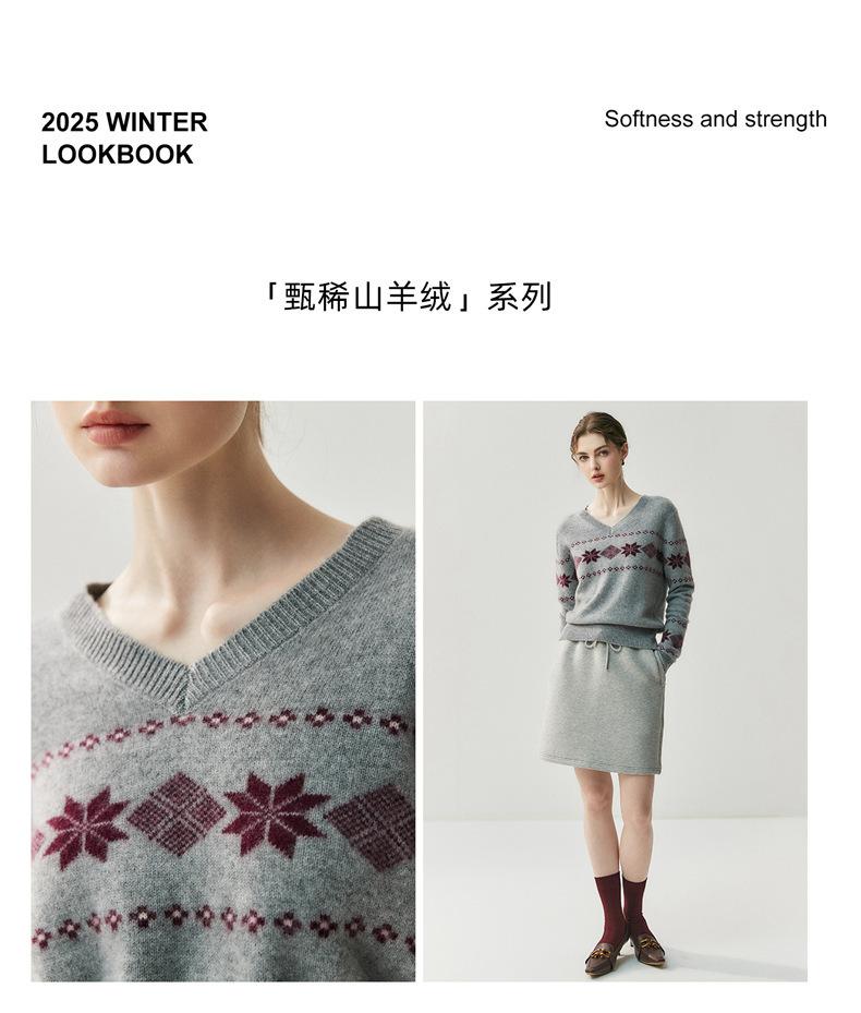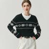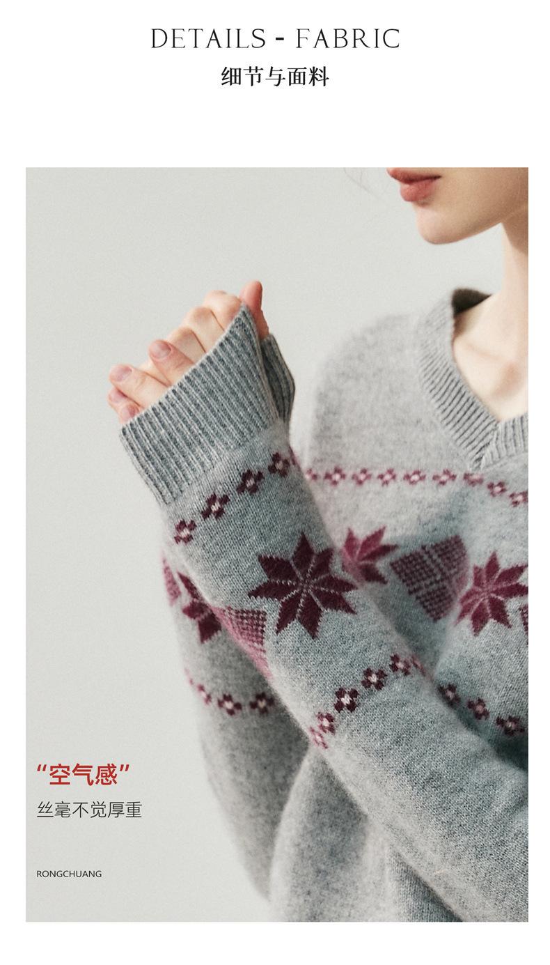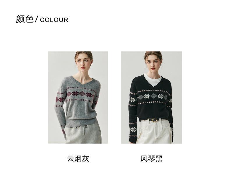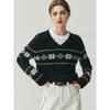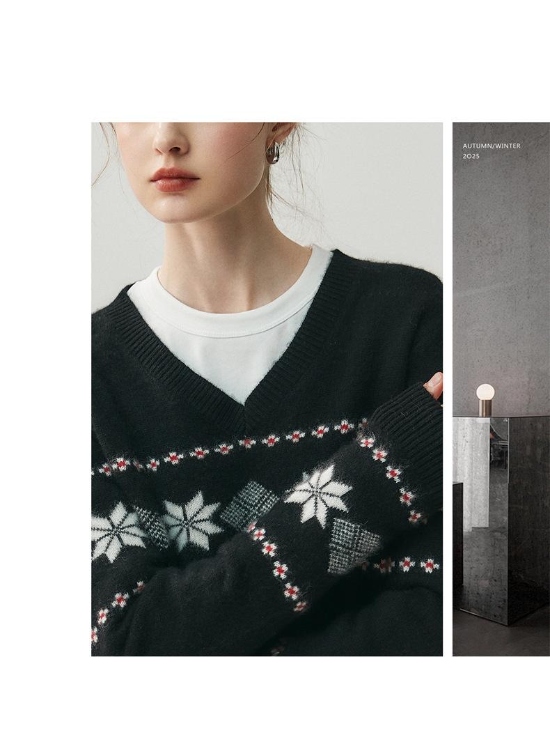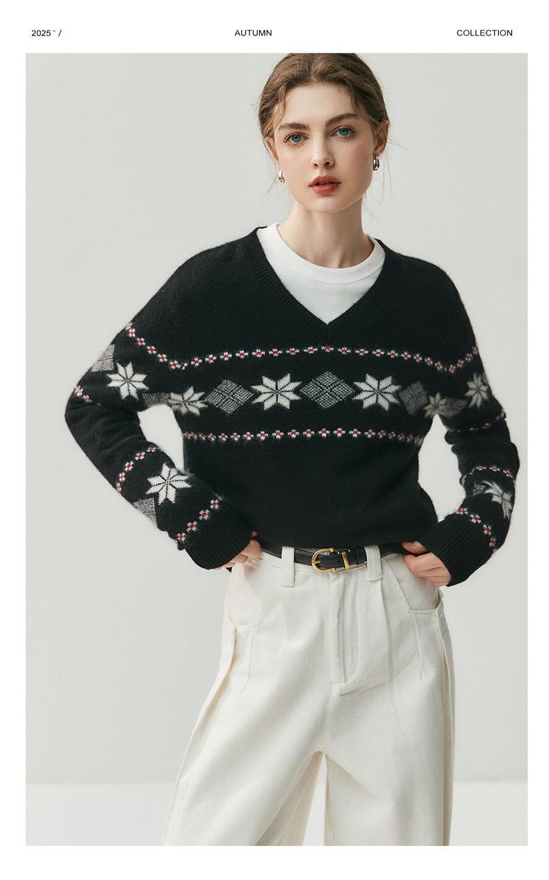 Fair Isle Copo de Nieve Jacquard Prendas de Punto de Cachemira Mujer 25 Otoño/Invierno Cuello en V Suéter Holgado Adelgazante Suave Suéter de Cachemira