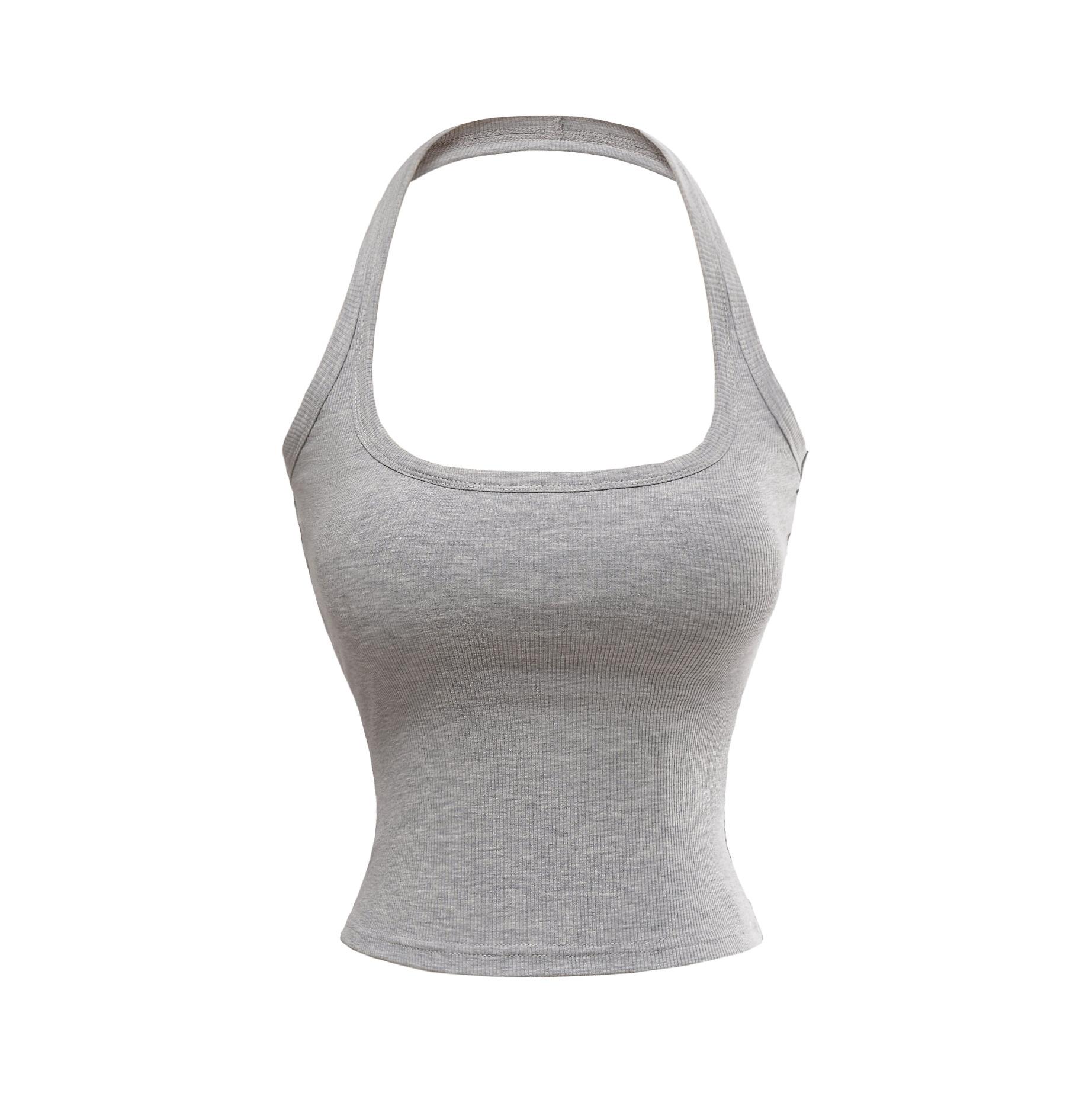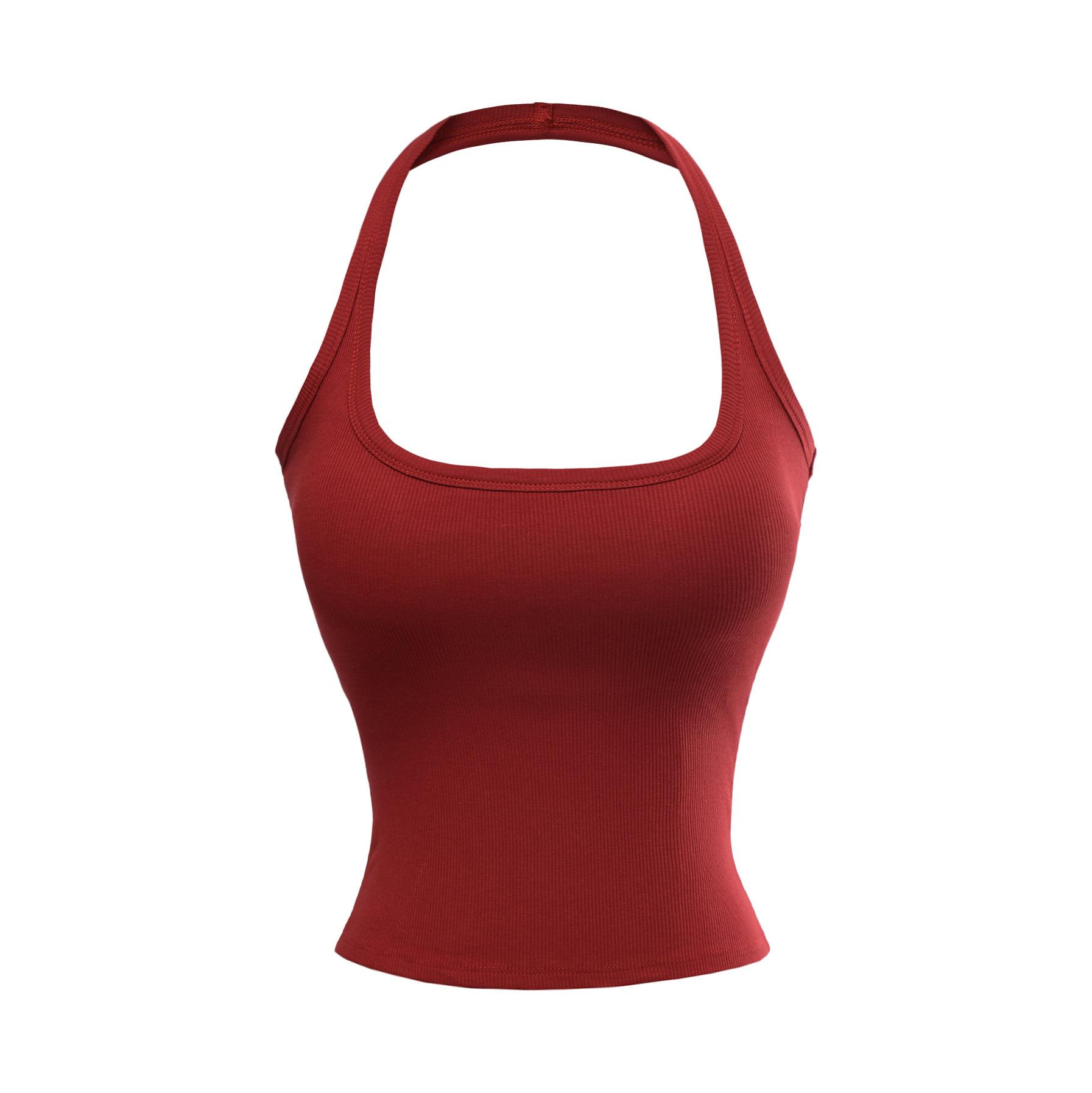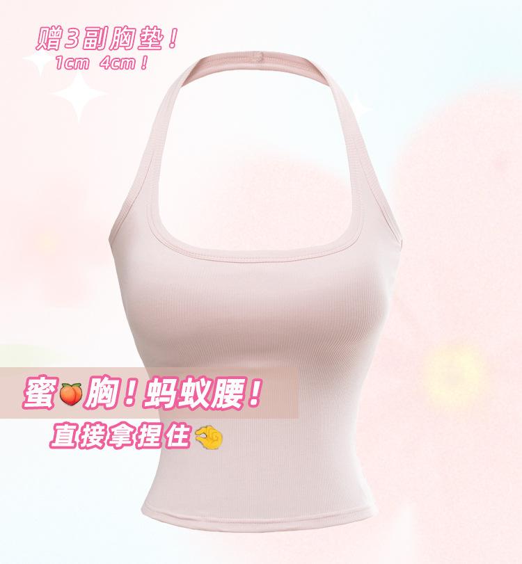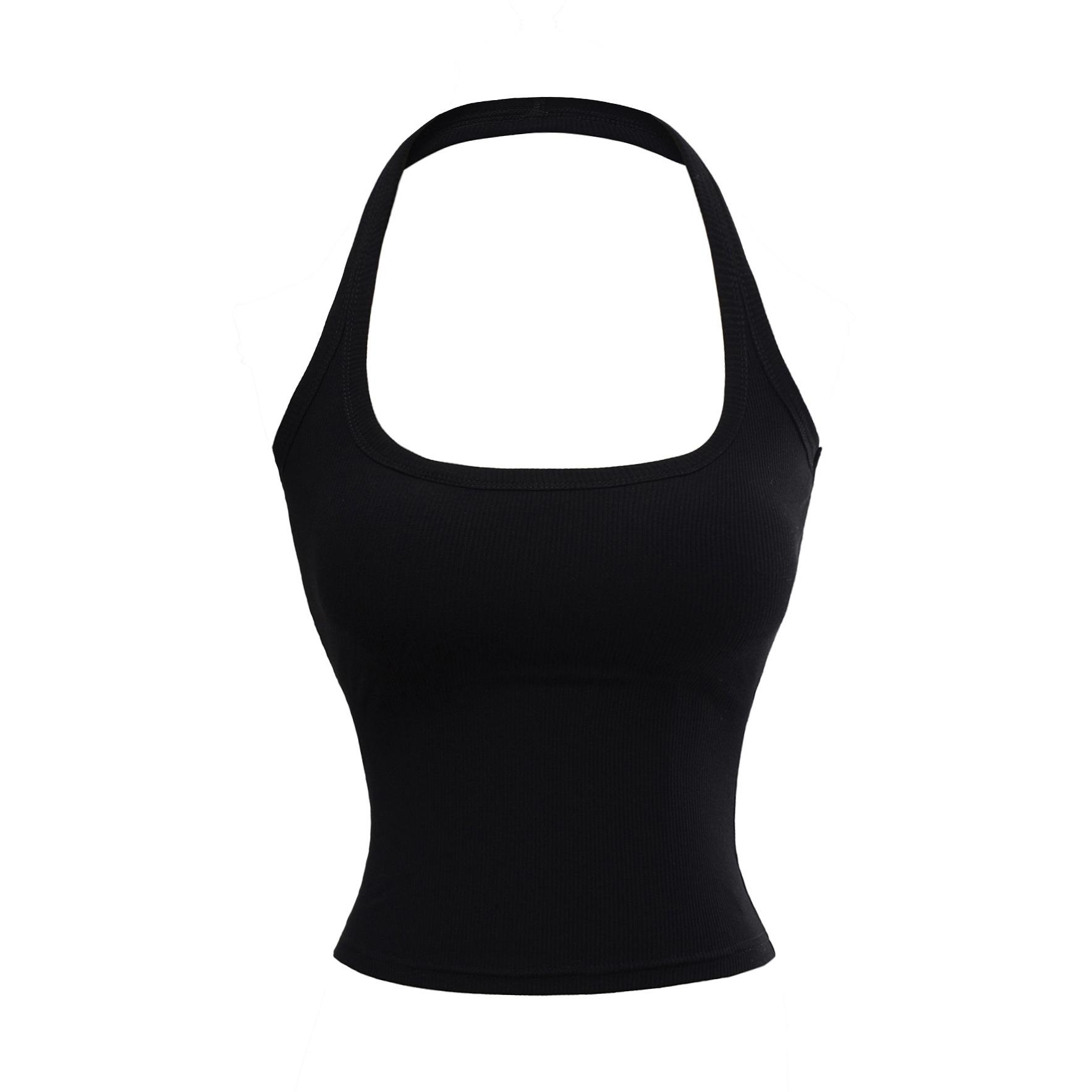 Top Camisola Sexy Americana para Chica Caliente a Prueba de Golpes con Reunión para Mujer Verano Nuevo Acanalado de Alta Elasticidad Adelgazante Base Camiseta sin Mangas