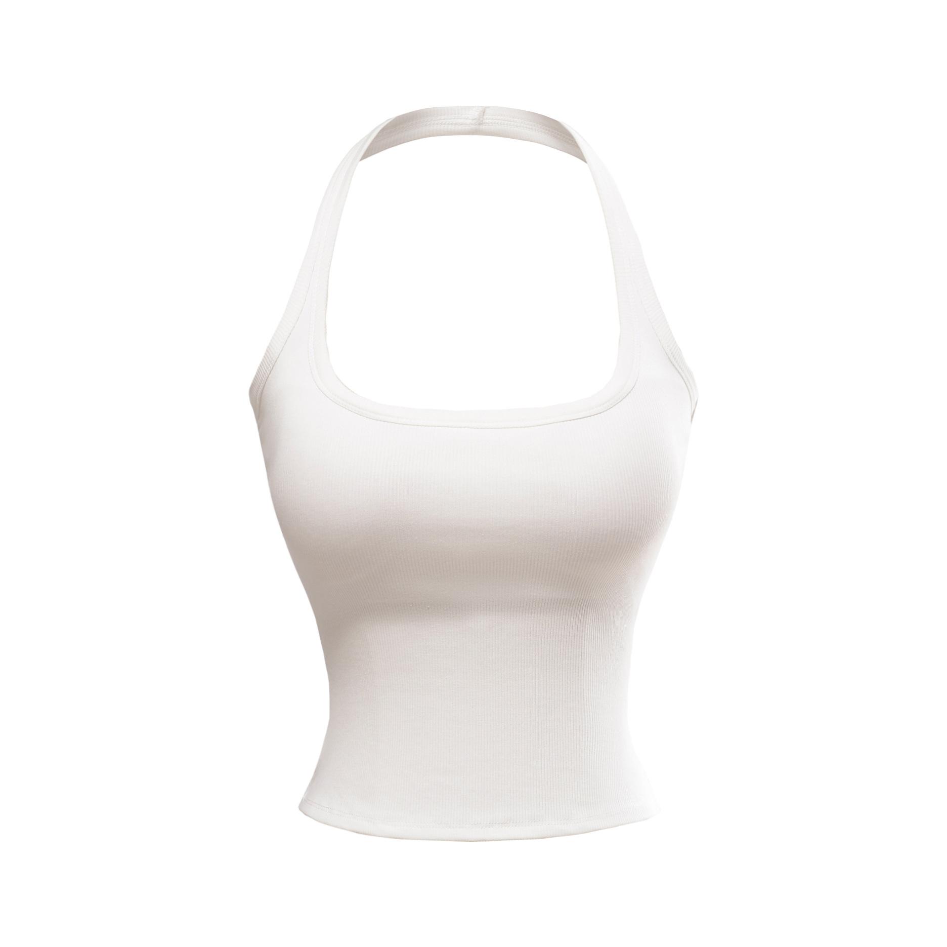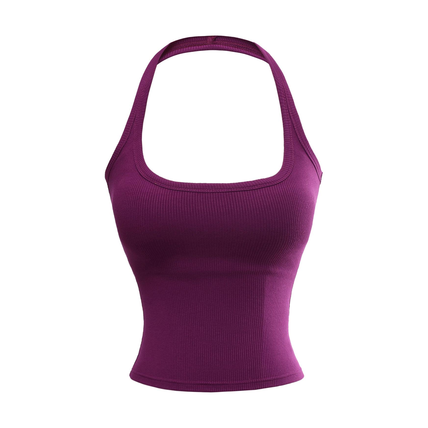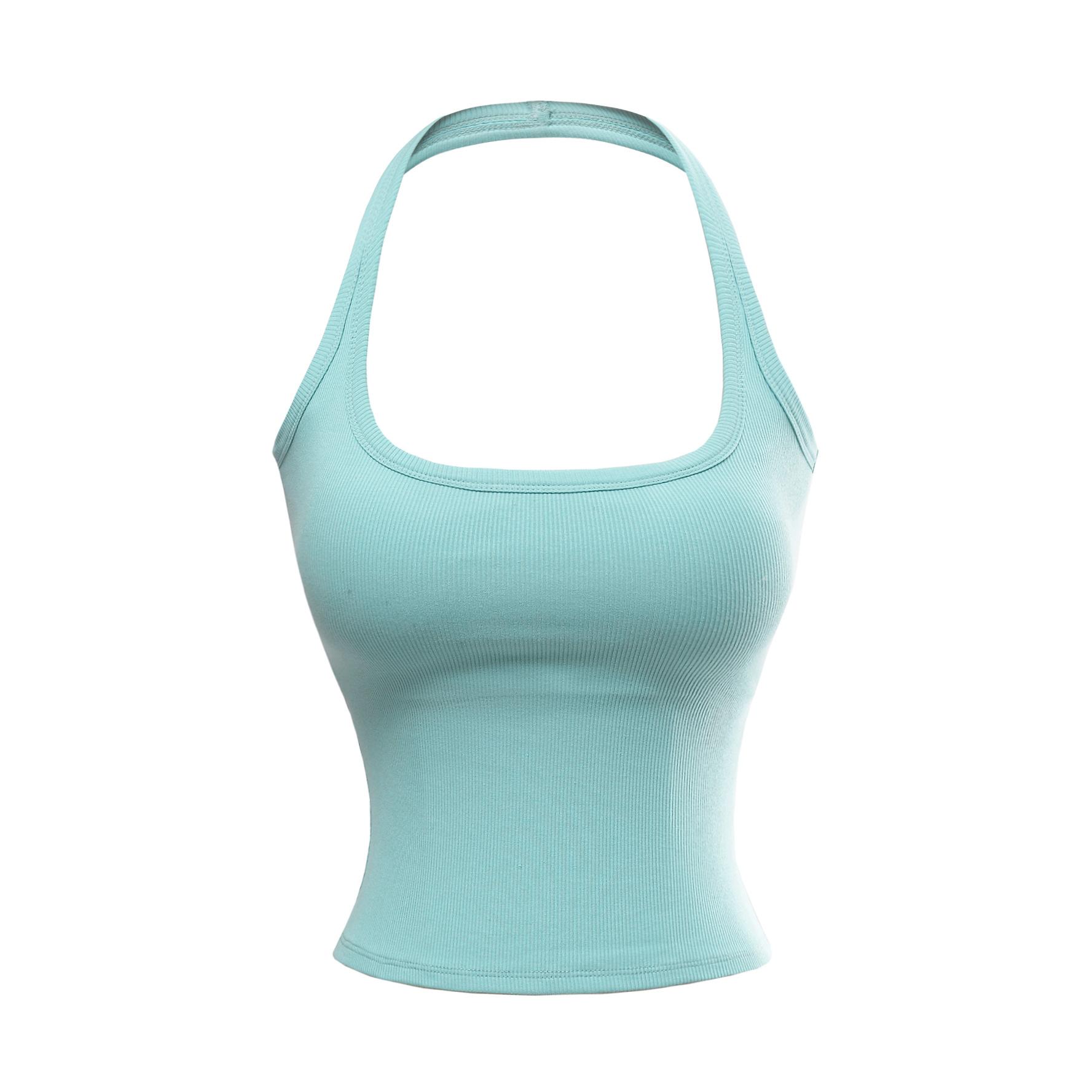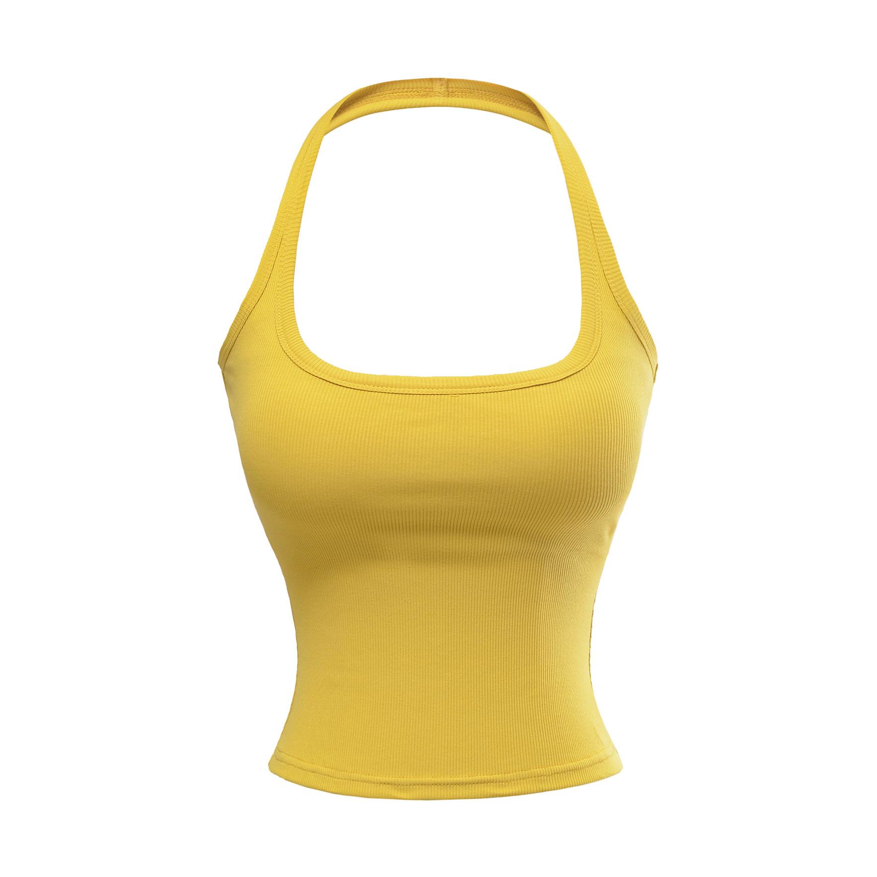 Top Camisola Sexy Americana para Chica Caliente a Prueba de Golpes con Reunión para Mujer Verano Nuevo Acanalado de Alta Elasticidad Adelgazante Base Camiseta sin Mangas