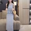Black skirt suit, Blue and gray skirt suit, Milk tea color skirt suit