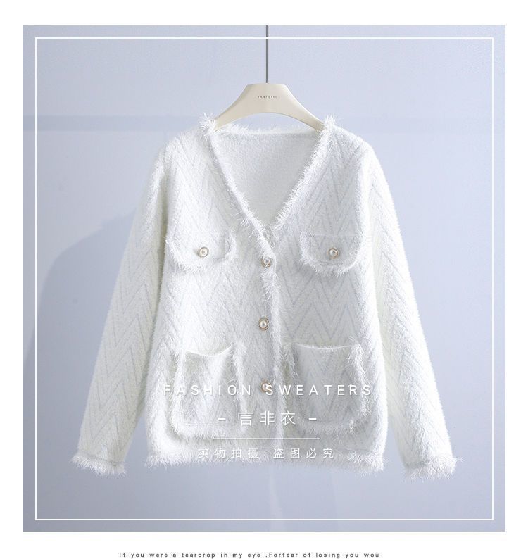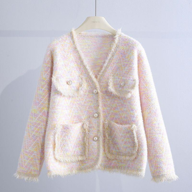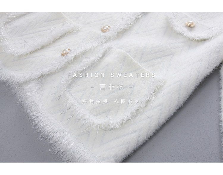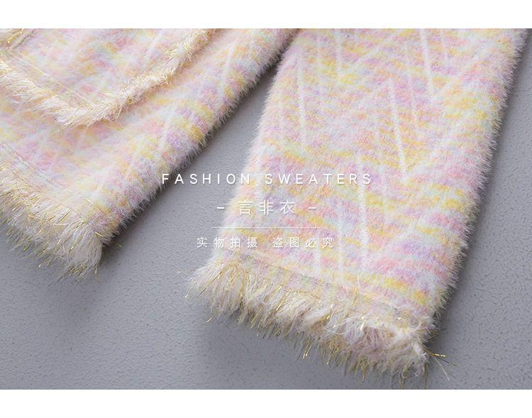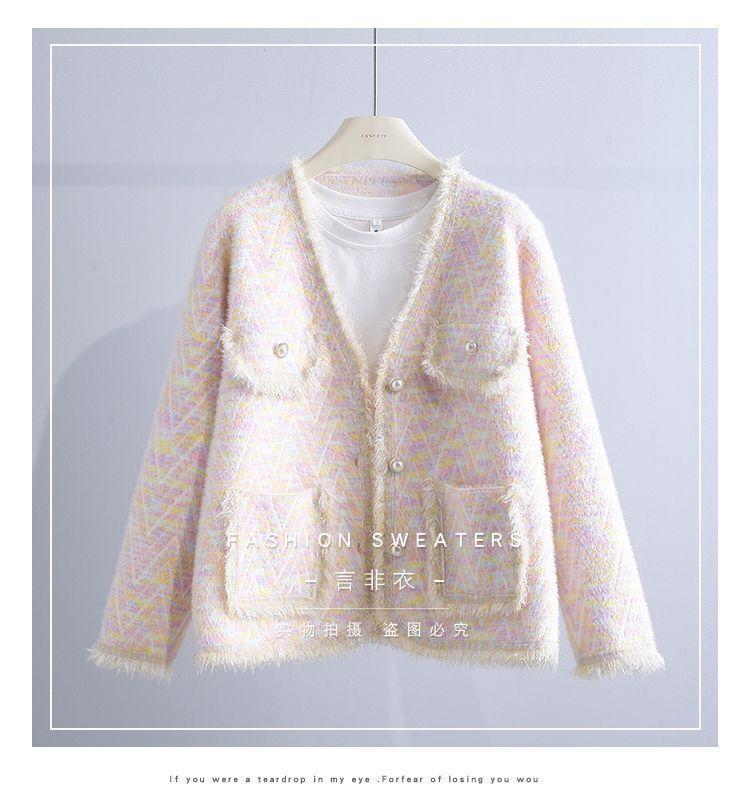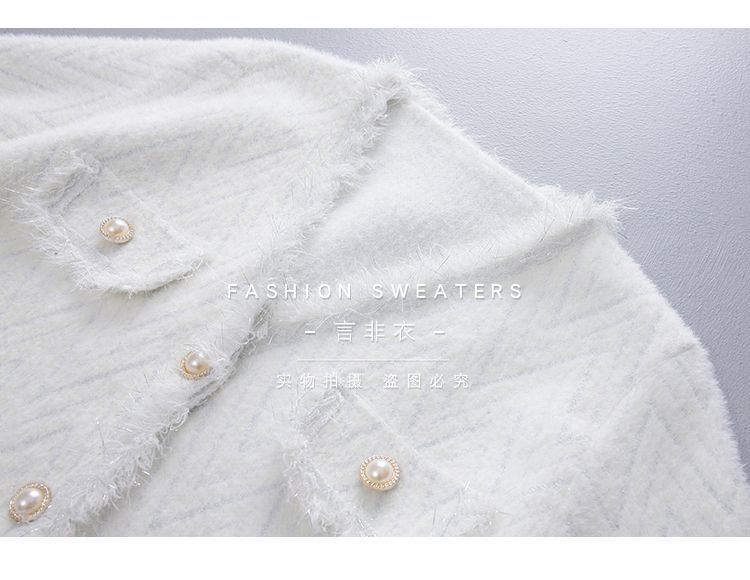 Abrigo Suéter de Cachemira de Visón Sintético Estilo Chanel Pequeño 2025 para Mujer Otoño/Invierno Grosor Temperamento Socialité Holgado Prendas de Exterior Punto de Borlas