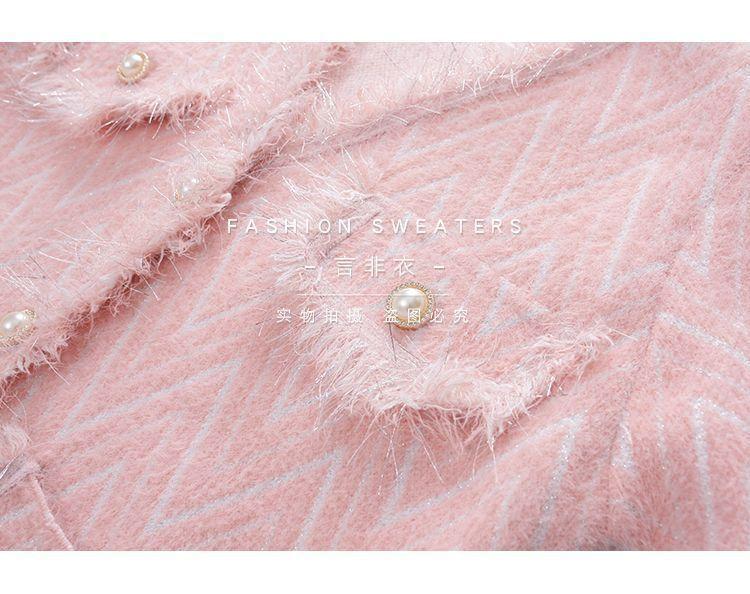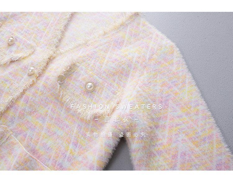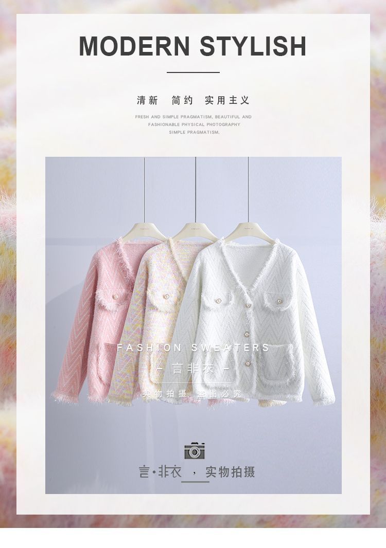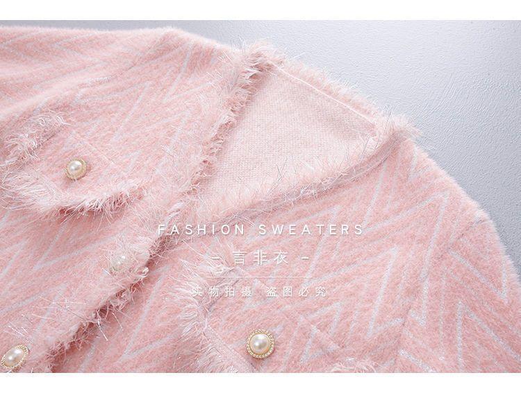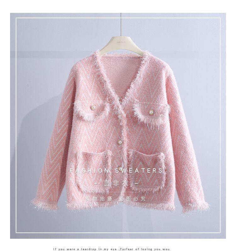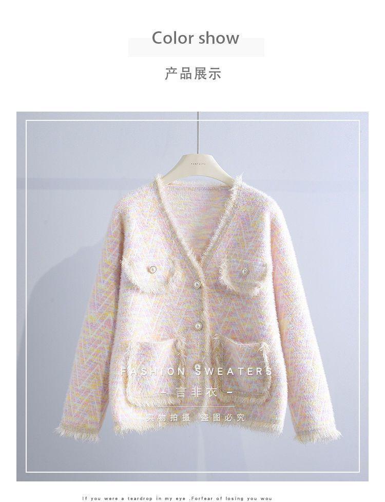 Abrigo Suéter de Cachemira de Visón Sintético Estilo Chanel Pequeño 2025 para Mujer Otoño/Invierno Grosor Temperamento Socialité Holgado Prendas de Exterior Punto de Borlas