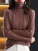 Suéter grueso de canalé de cuello alto para mujer otoño e invierno jersey de alta gama cálido camisa base color sólido estilo holgazán prendas de punto