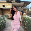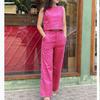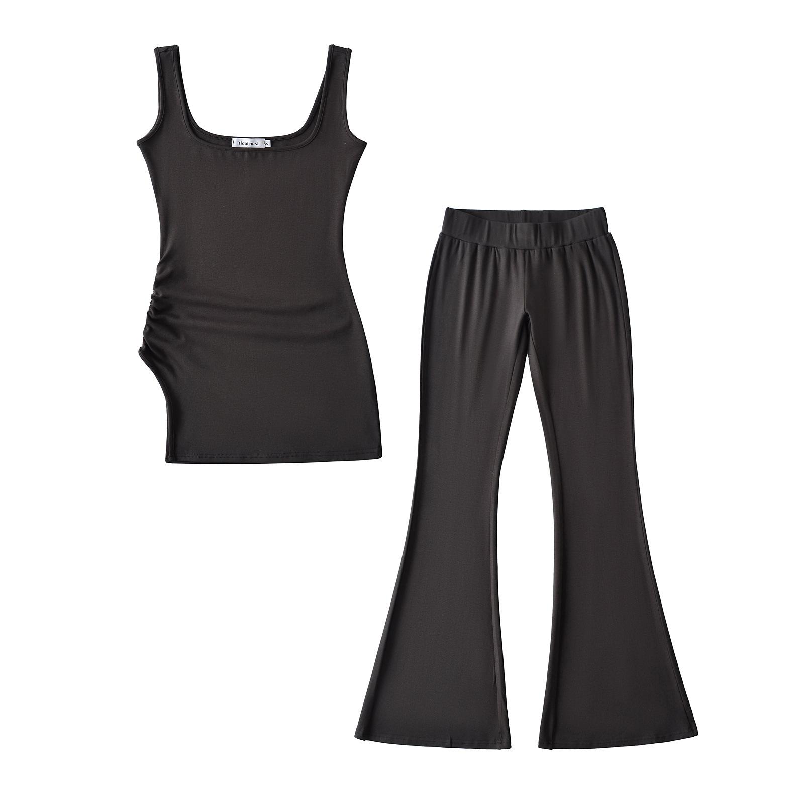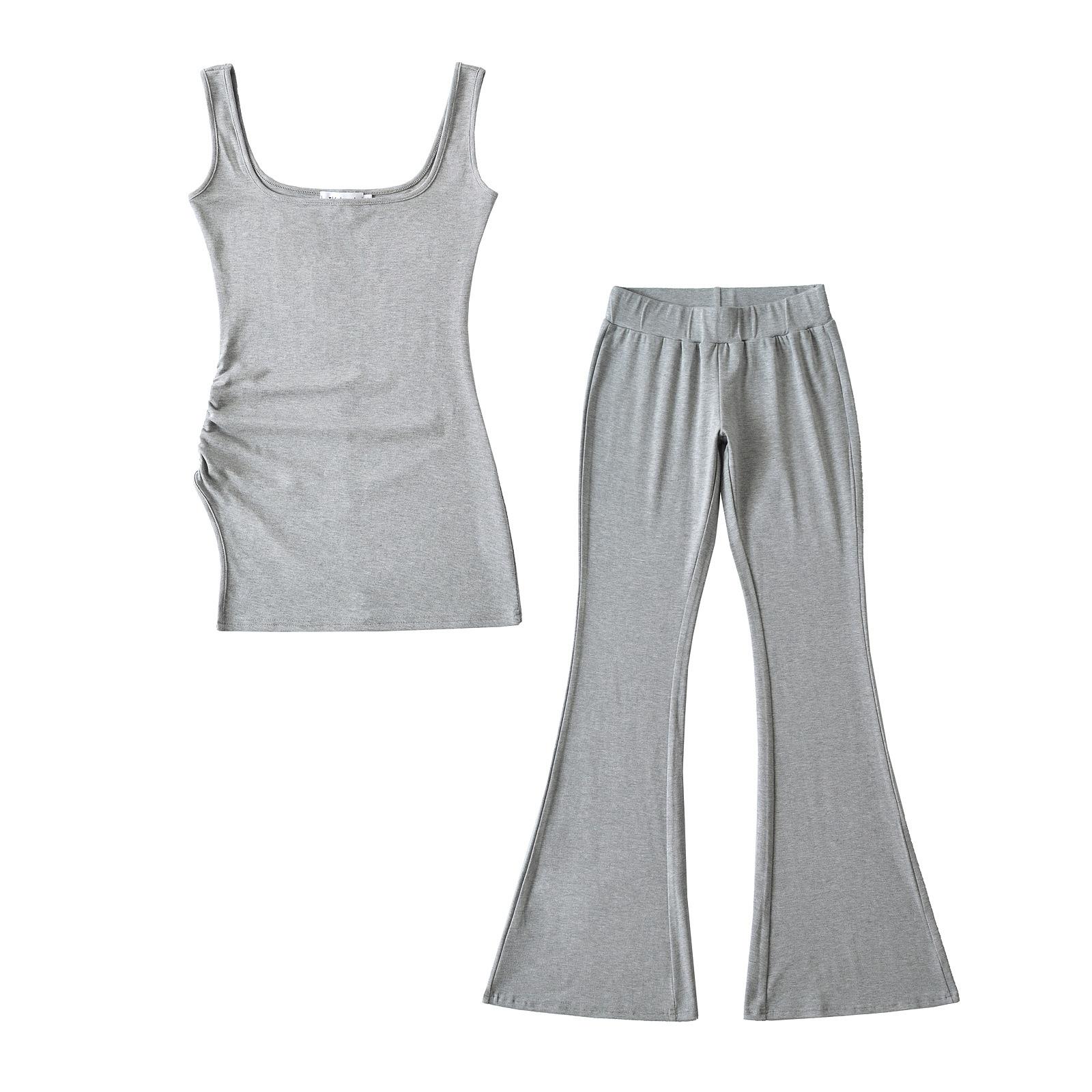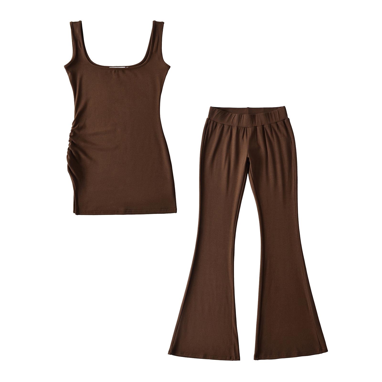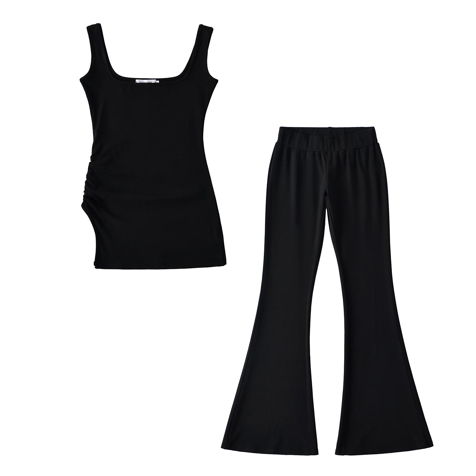 Ropa de Mujer Transfronteriza al Por Mayor Verano Nuevo Estilo Europeo y Americano Color Sólido Ajustado Versátil Top Chaleco + Set de Pantalones Micro Acampanados