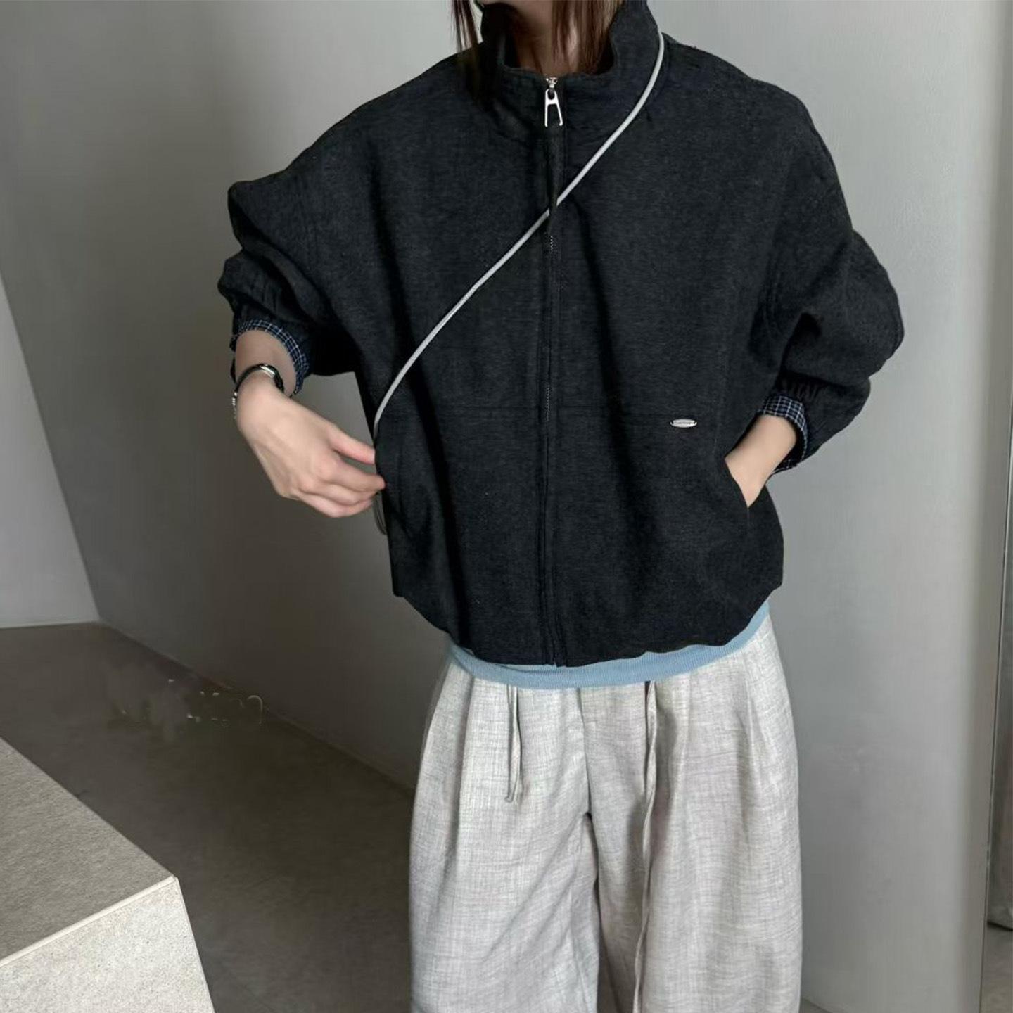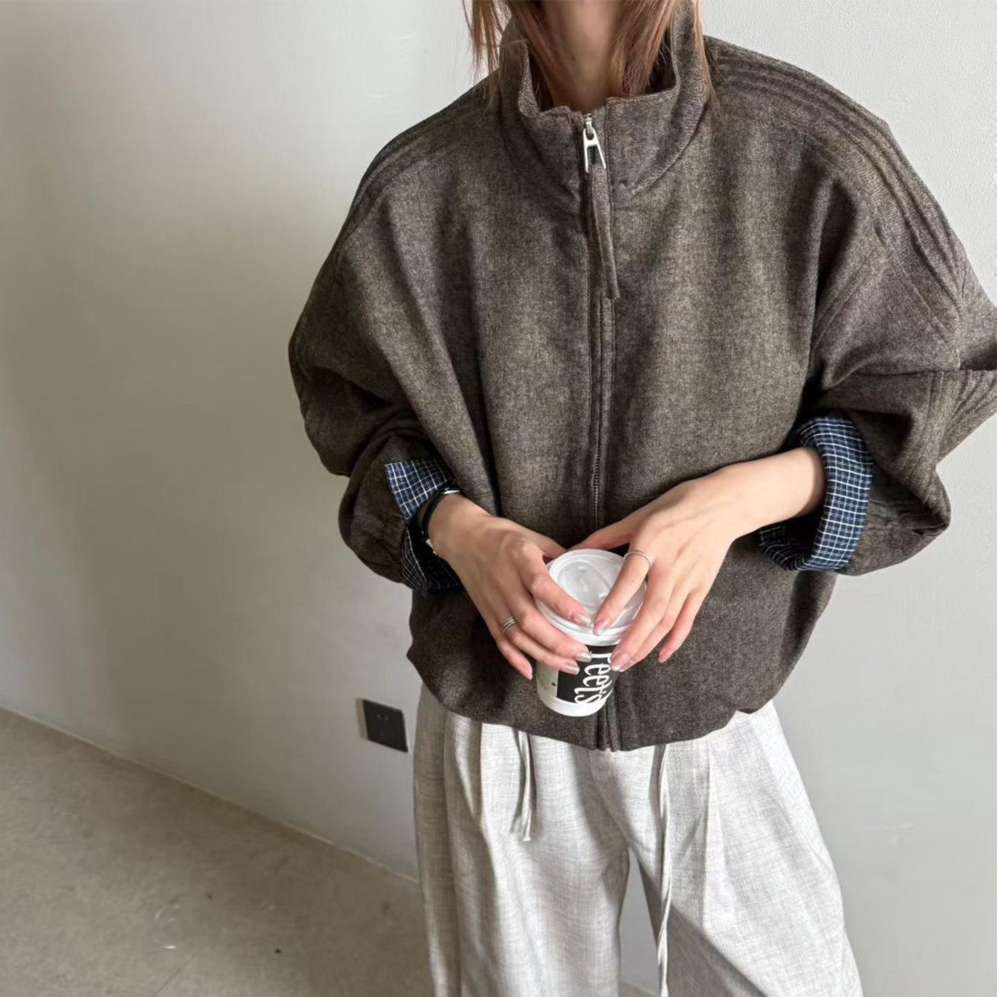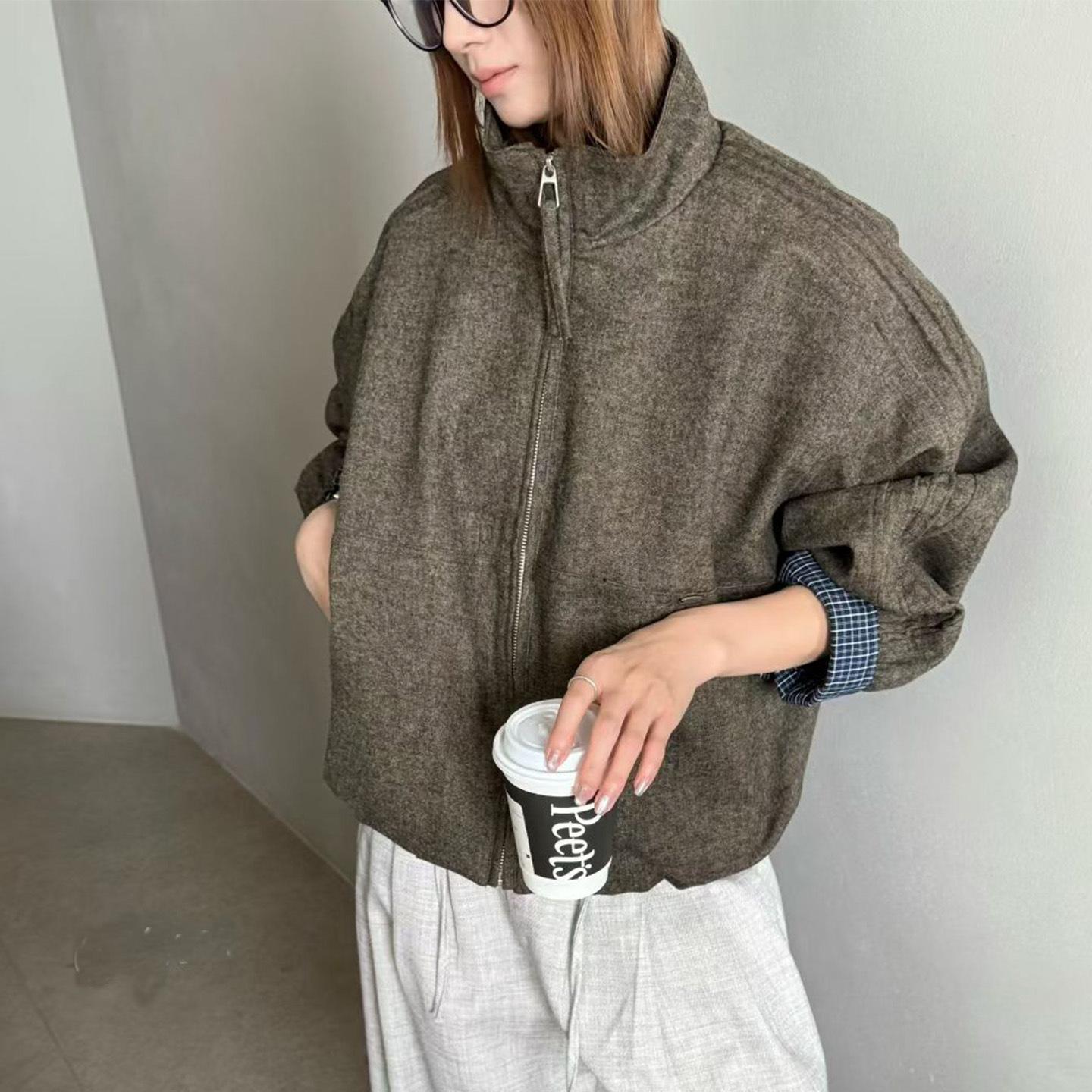 Abrigo de Mezcla de Lana con Parche de Cuadros de Moda para Mujer Bienes Europeos 2025 Otoño Nuevo Holgado Casual Versátil Ropa Exterior