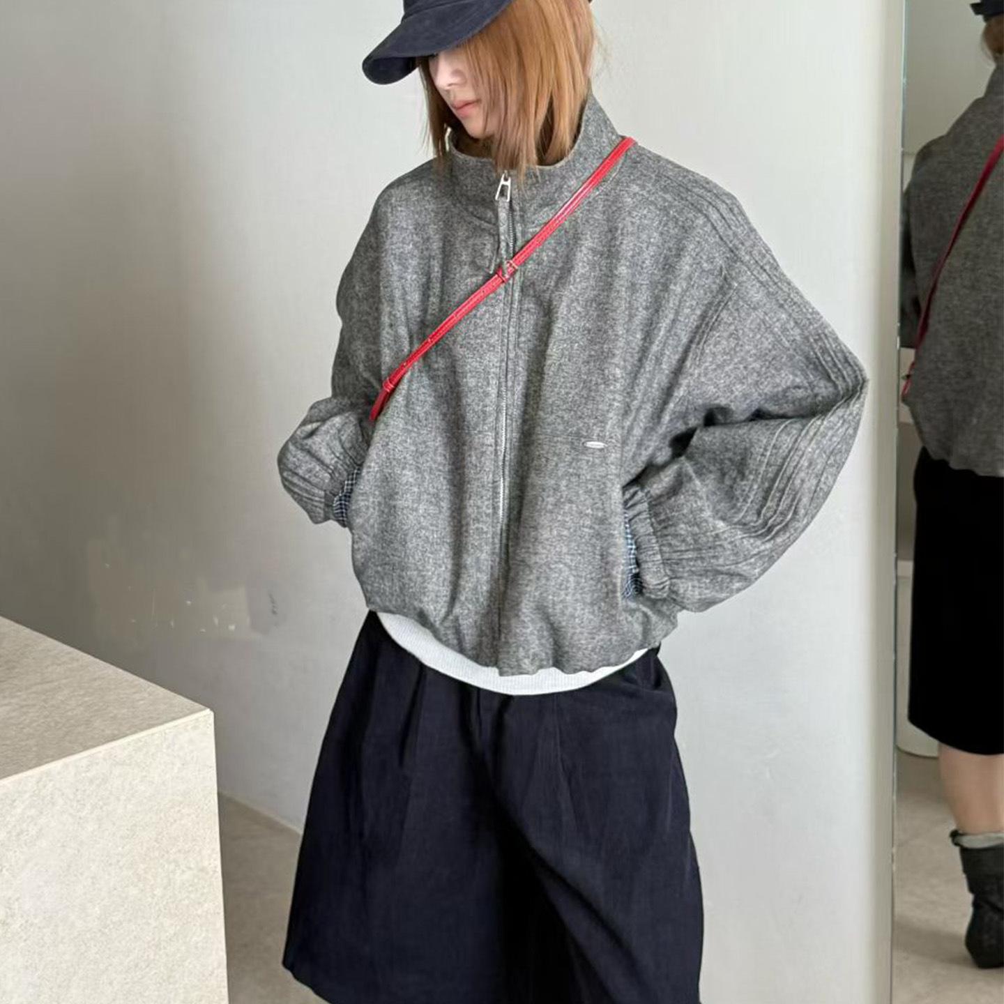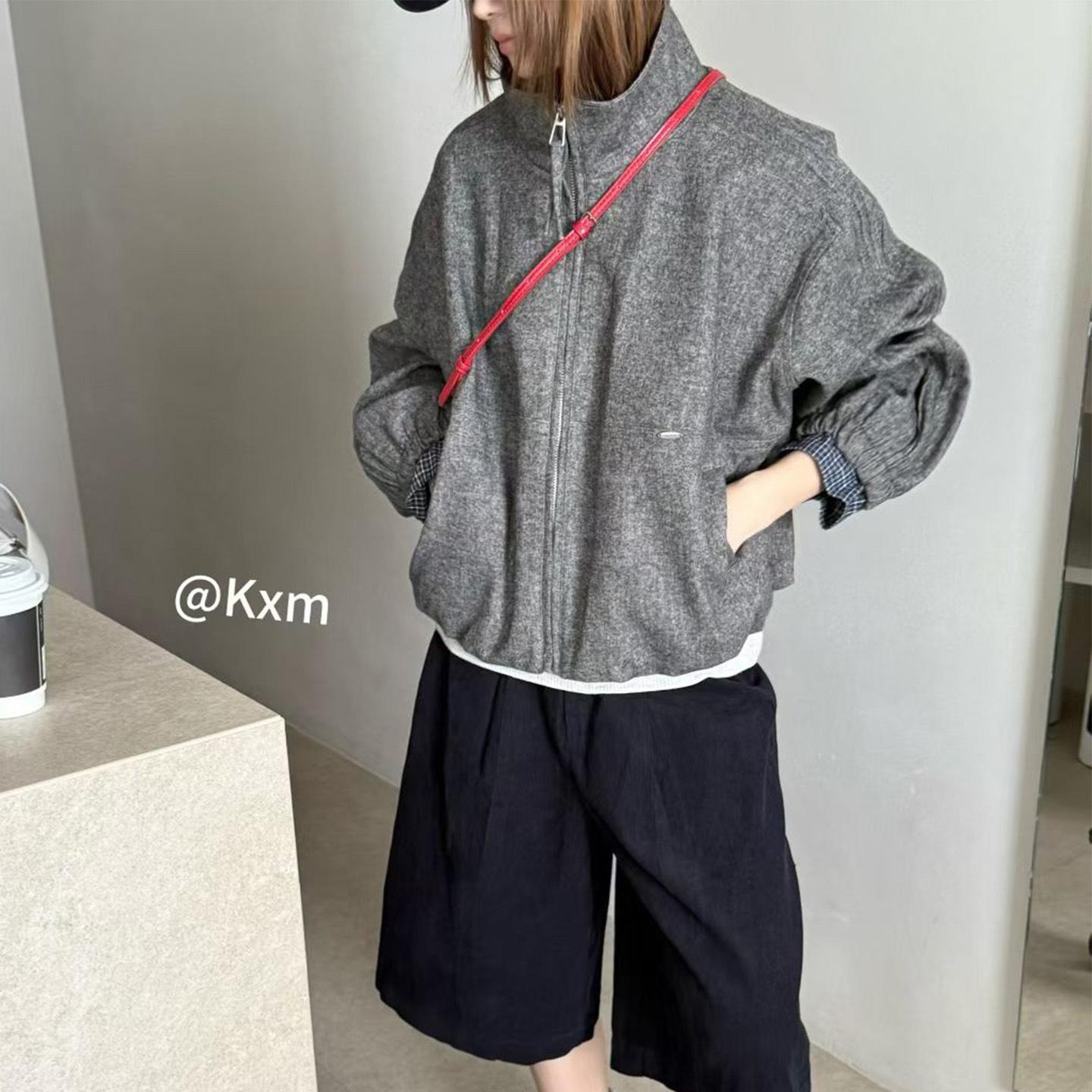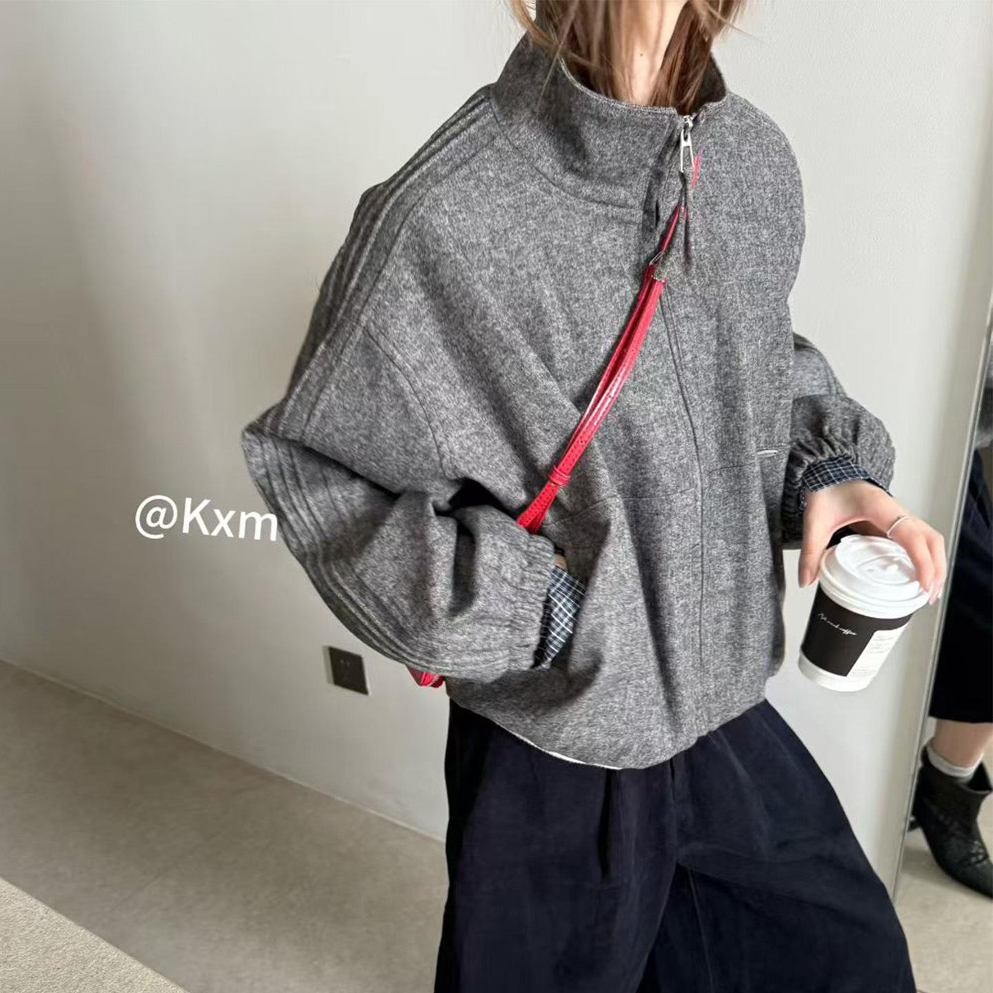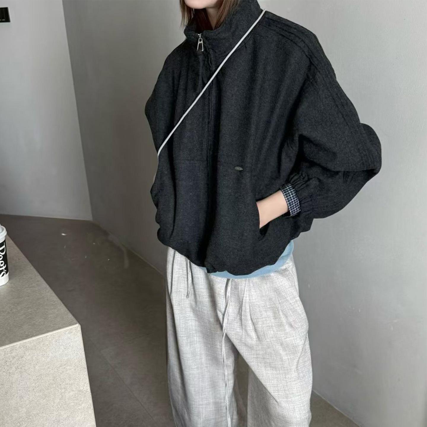 Abrigo de Mezcla de Lana con Parche de Cuadros de Moda para Mujer Bienes Europeos 2025 Otoño Nuevo Holgado Casual Versátil Ropa Exterior