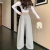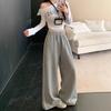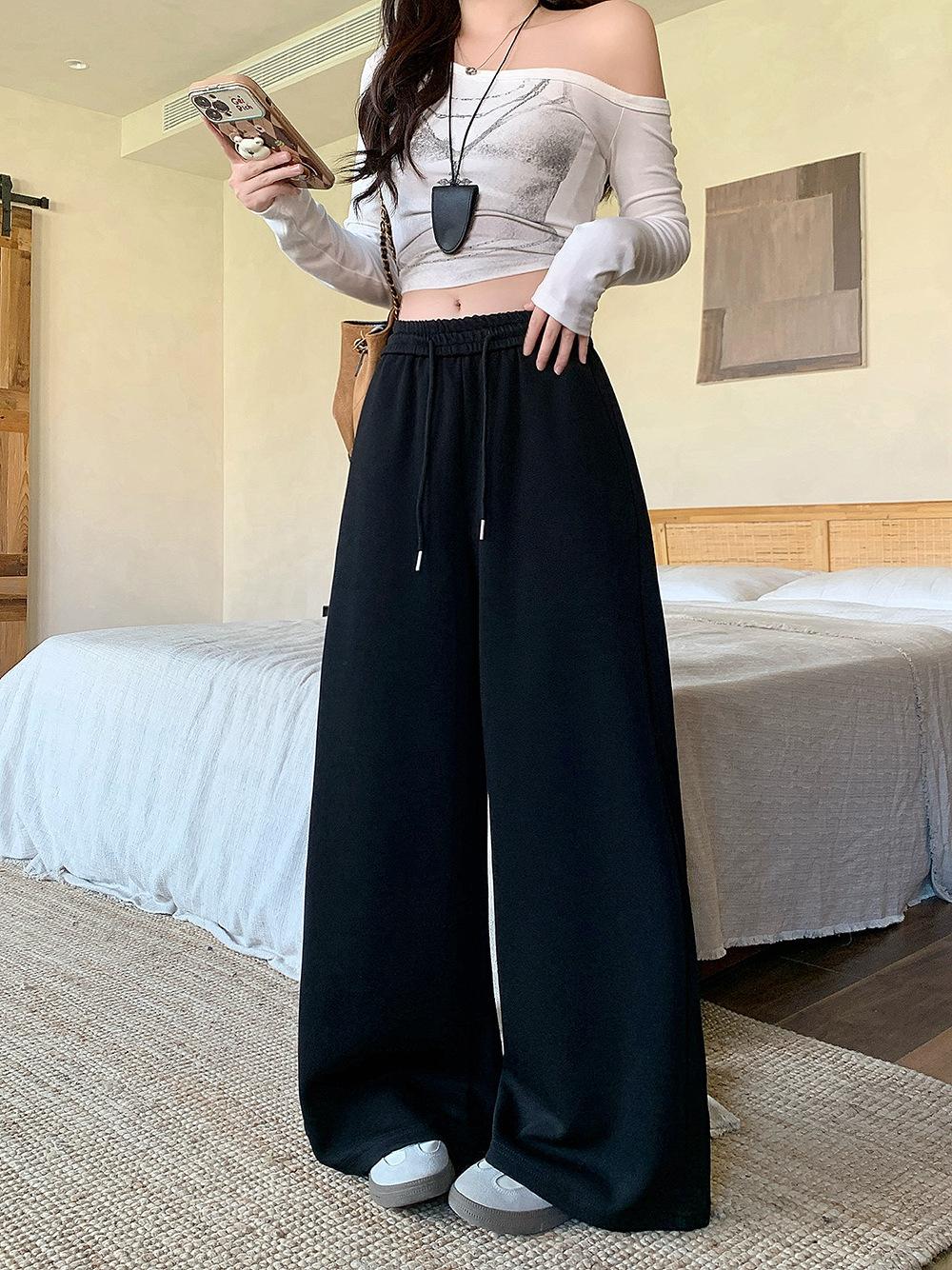Pantalones Casuales Retro de Talla Grande para Mujer Otoño Cuerpo en Forma de Pera Cintura Alta Deportivos Pierna Ancha Cubren la Carne y Adelgazantes