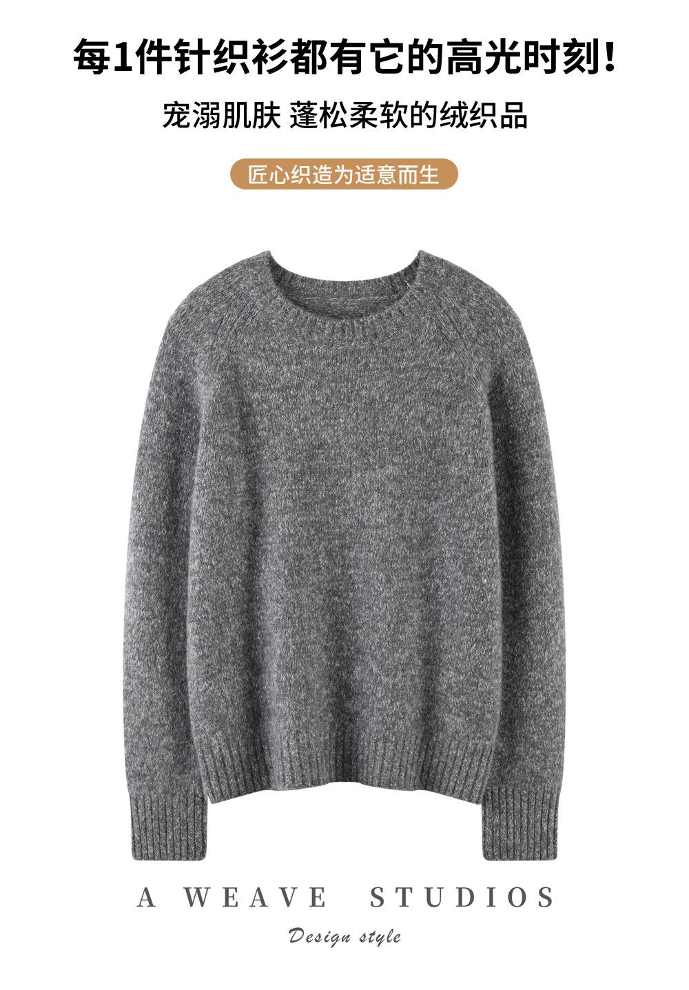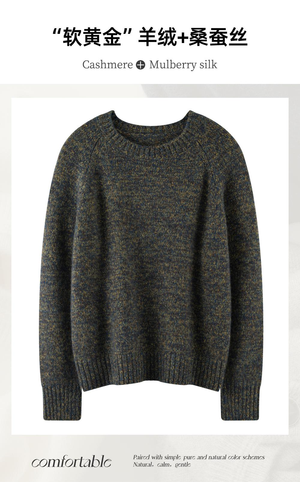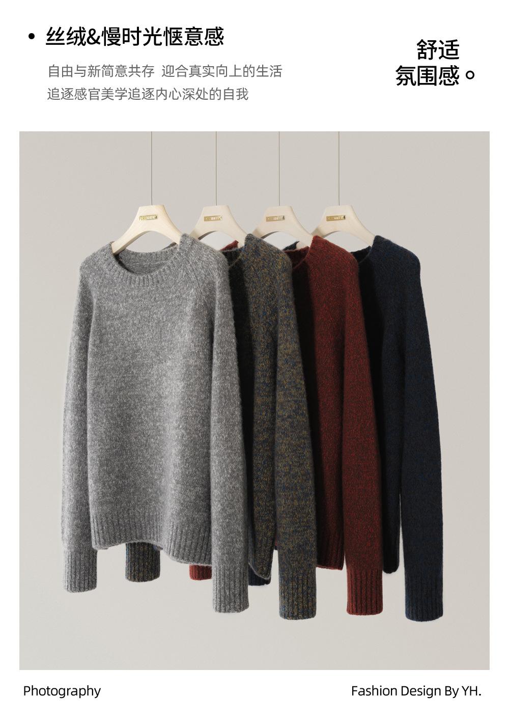 Cachemira para Mujer Cuello Redondo Tejido de Hilaza Slub Cálido Holgado Moda Casual Sencillo Estilo Lazy Capa Interior Base
