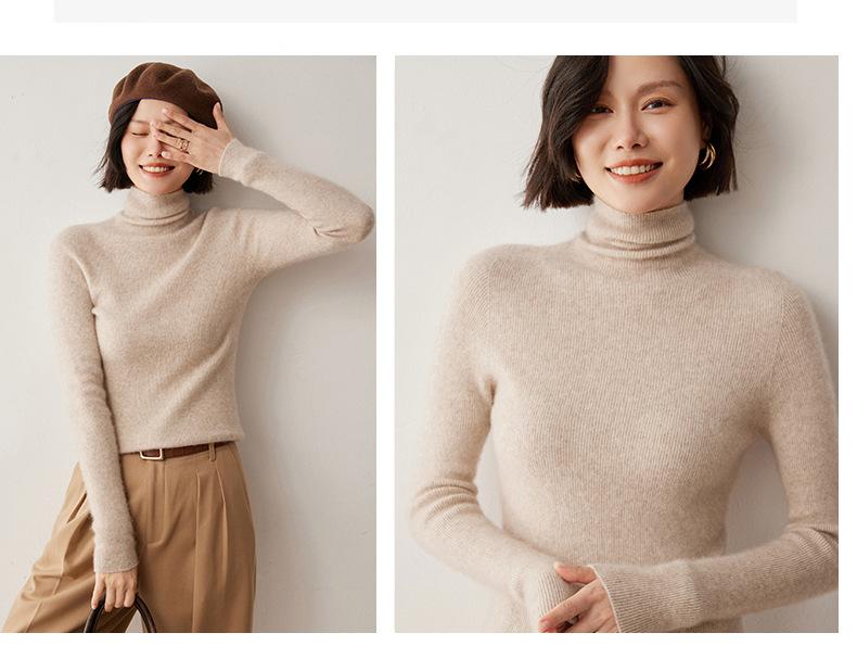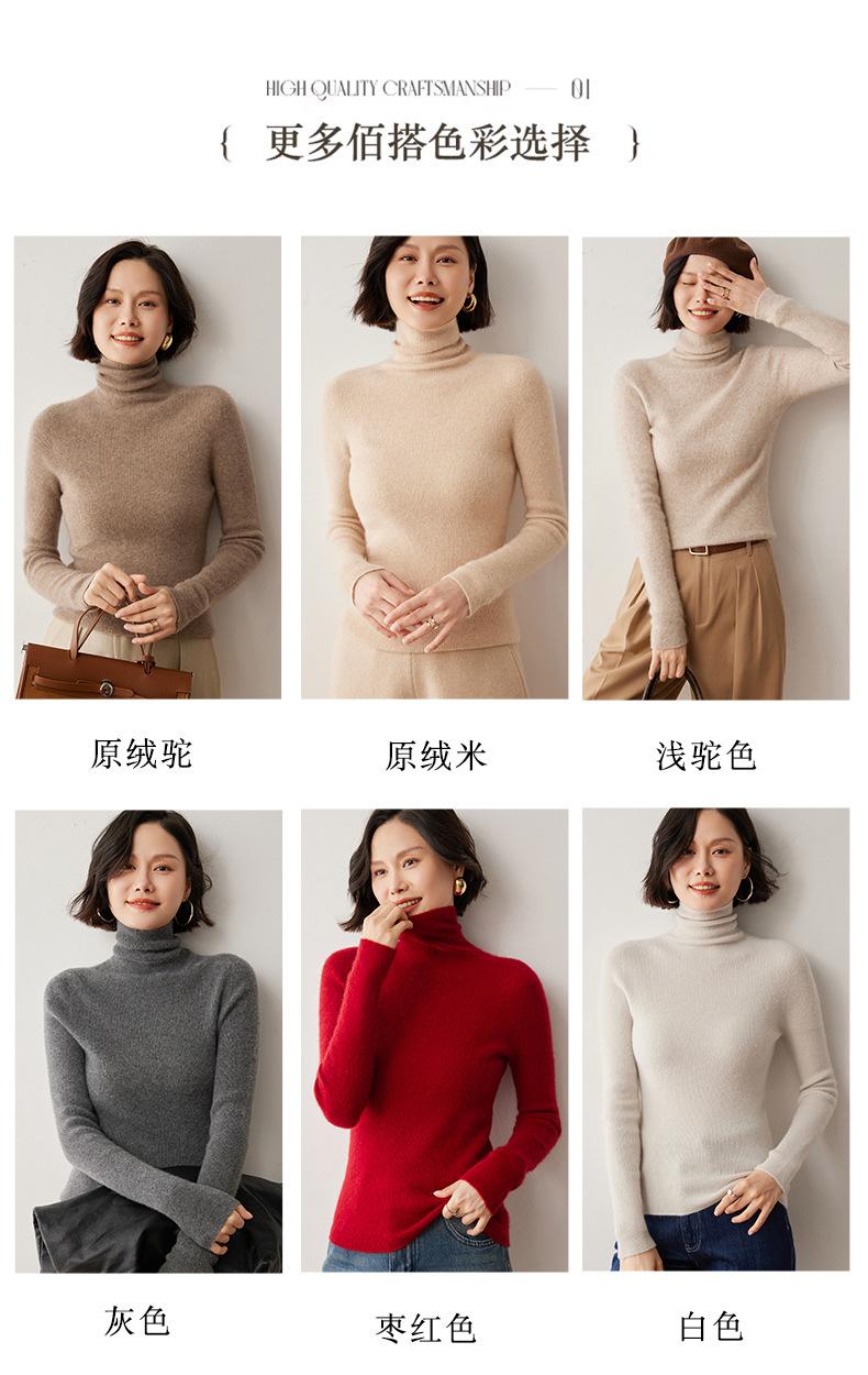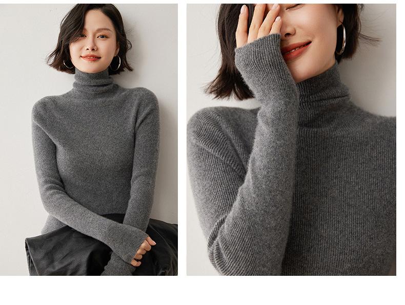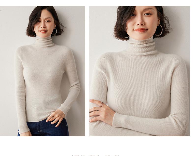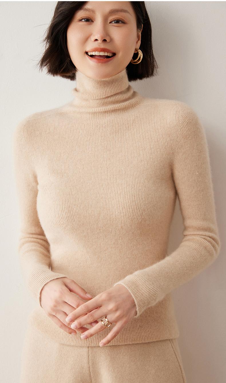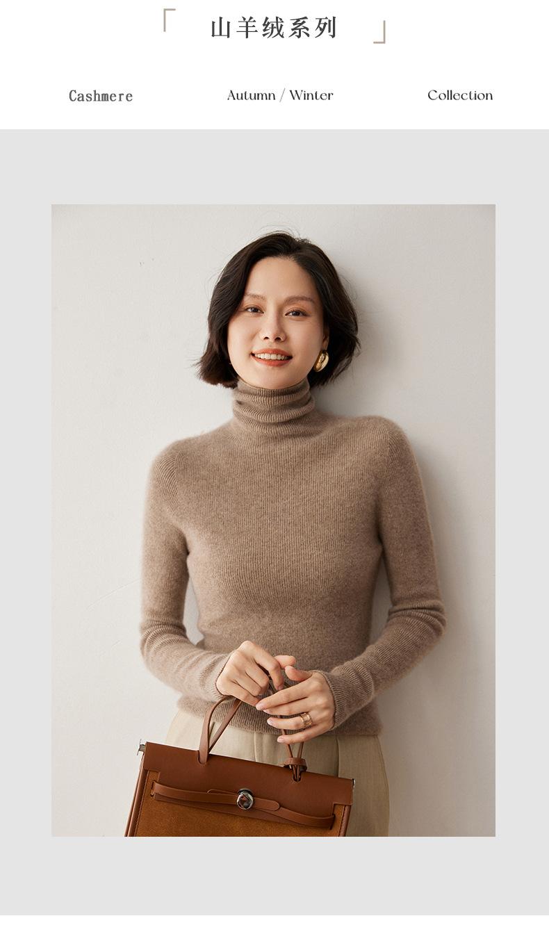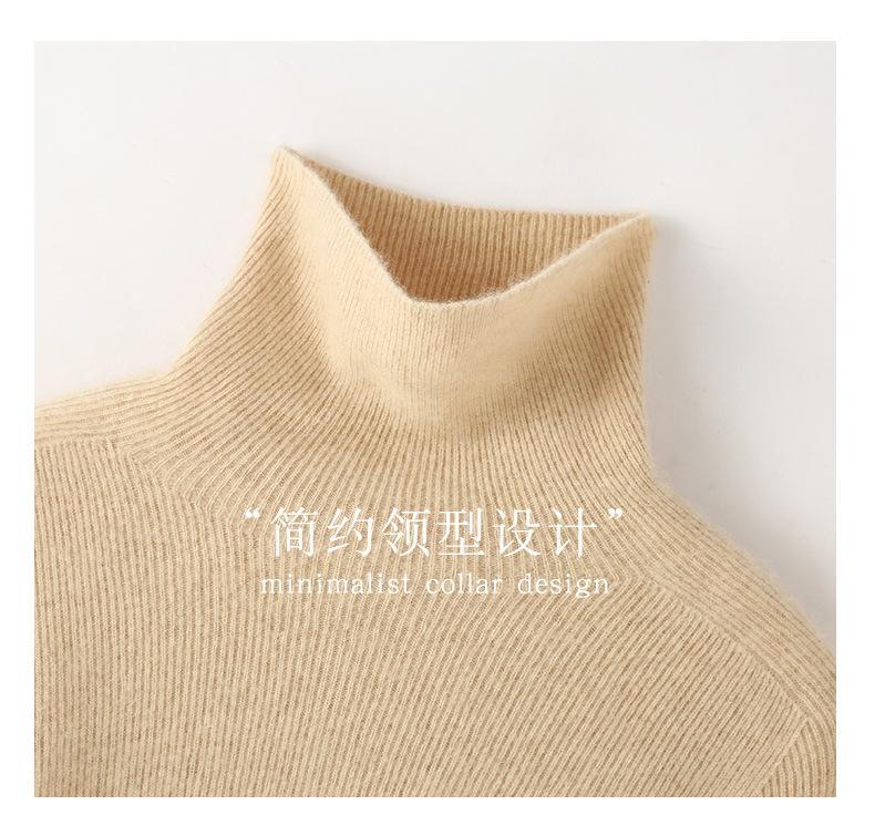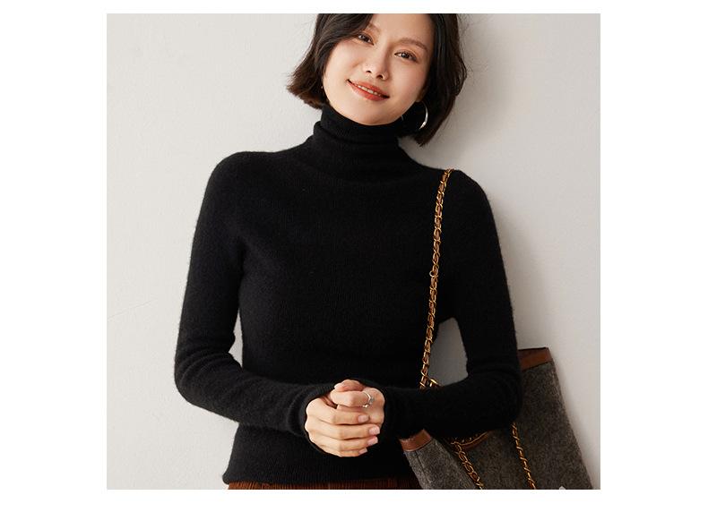 Nuevo Otoño/Invierno Una Línea Listo para Usar Corte Slim Color Sólido Tejido de Cachemira Camiseta Base para Mujer Suéter de Cuello Alto Suave y Agradable para la Piel