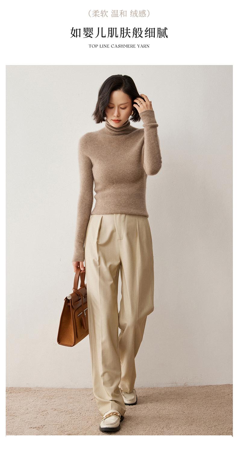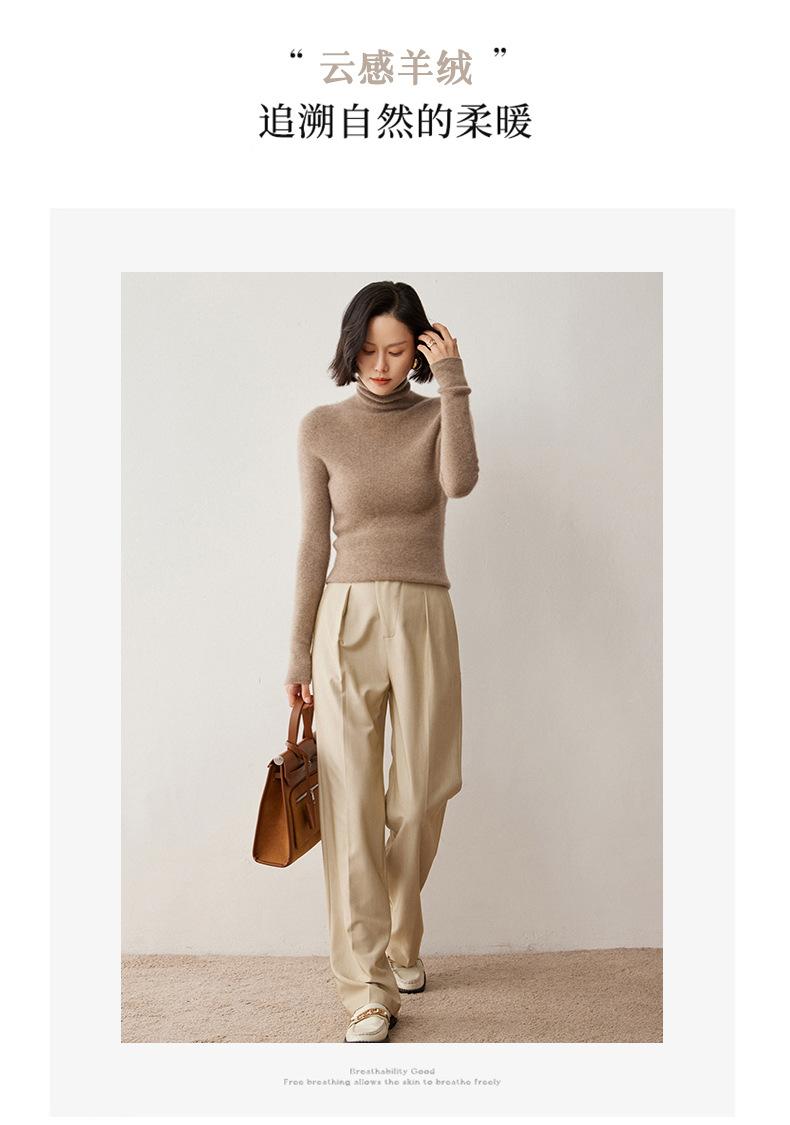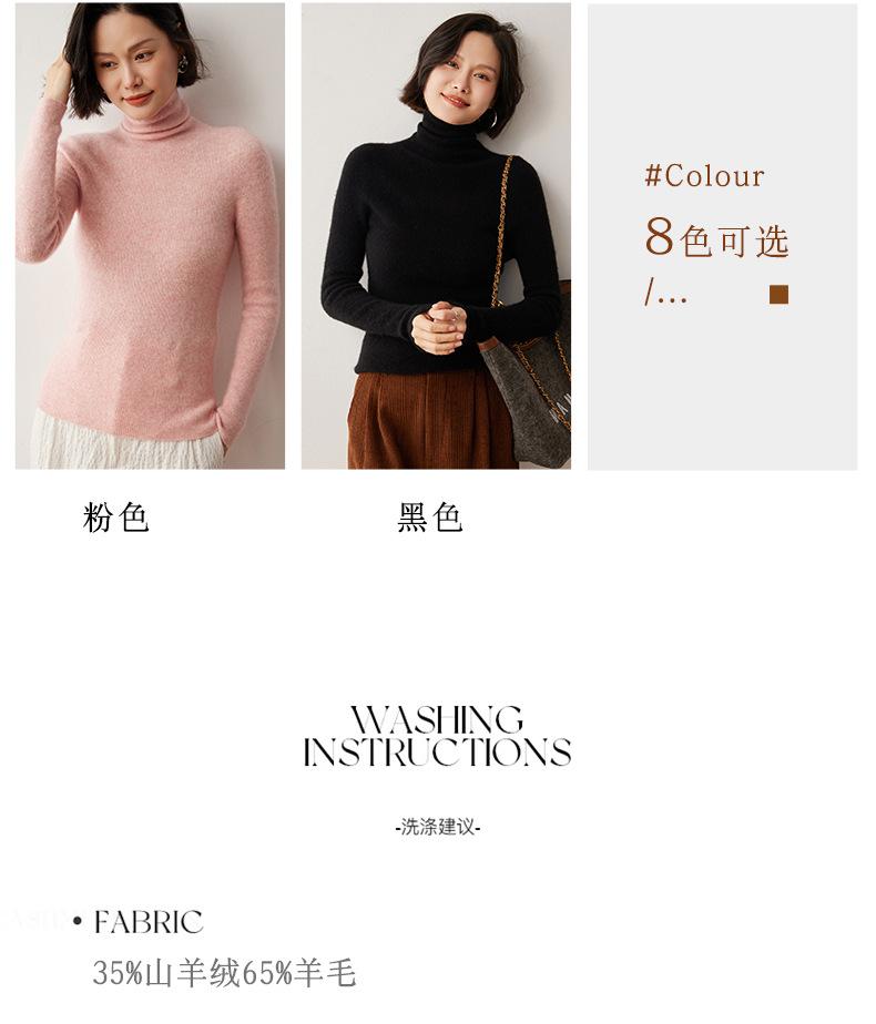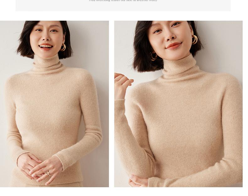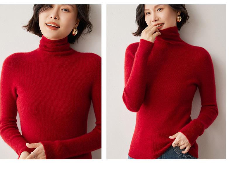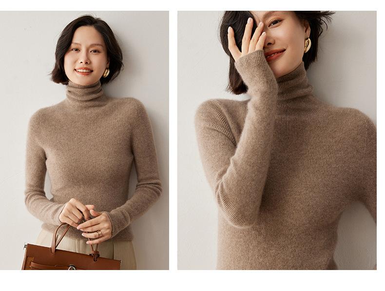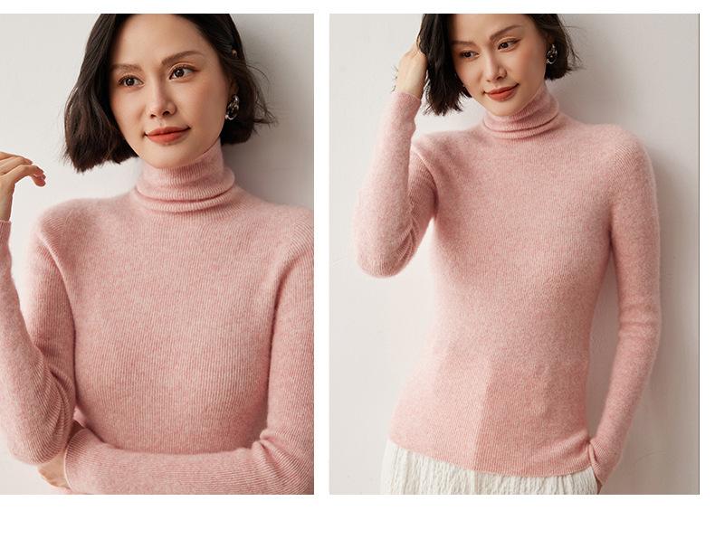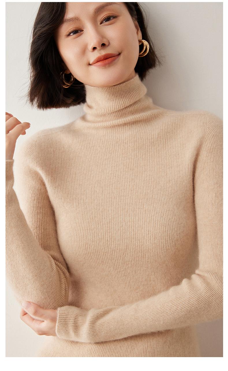 Nuevo Otoño/Invierno Una Línea Listo para Usar Corte Slim Color Sólido Tejido de Cachemira Camiseta Base para Mujer Suéter de Cuello Alto Suave y Agradable para la Piel