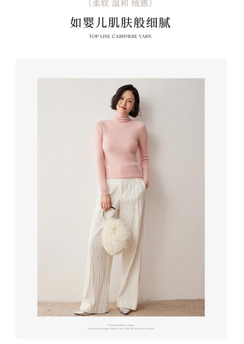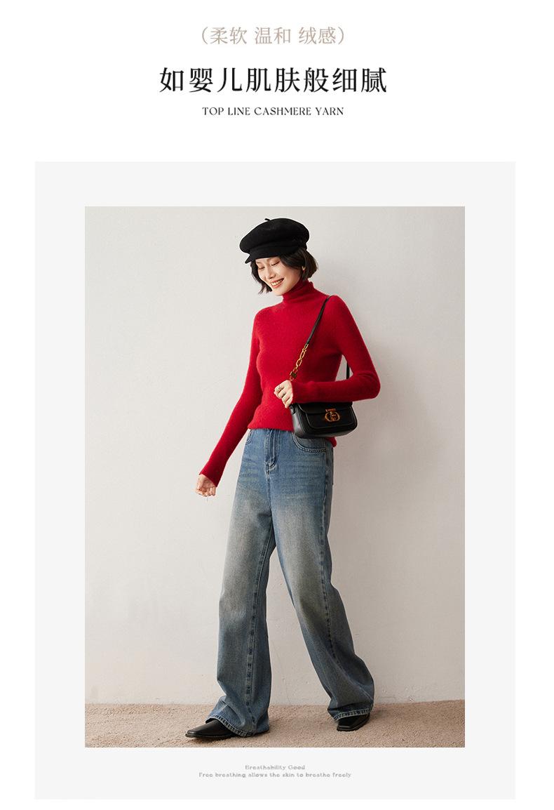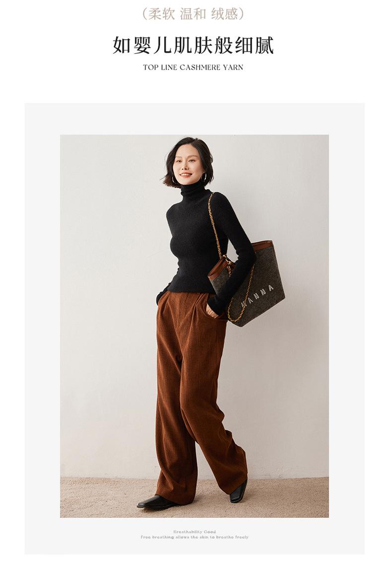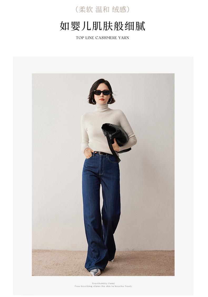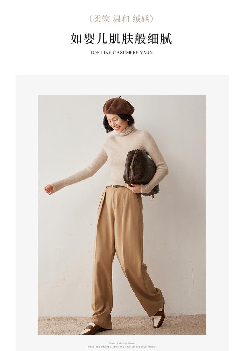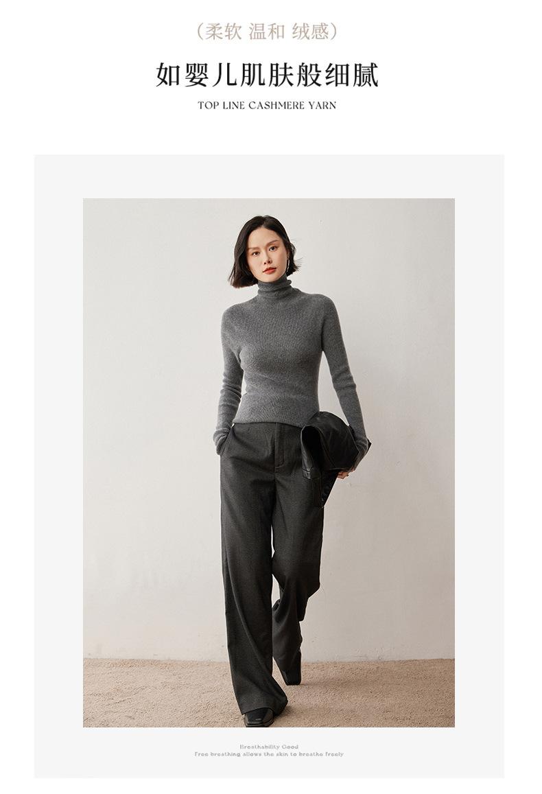 Nuevo Otoño/Invierno Una Línea Listo para Usar Corte Slim Color Sólido Tejido de Cachemira Camiseta Base para Mujer Suéter de Cuello Alto Suave y Agradable para la Piel