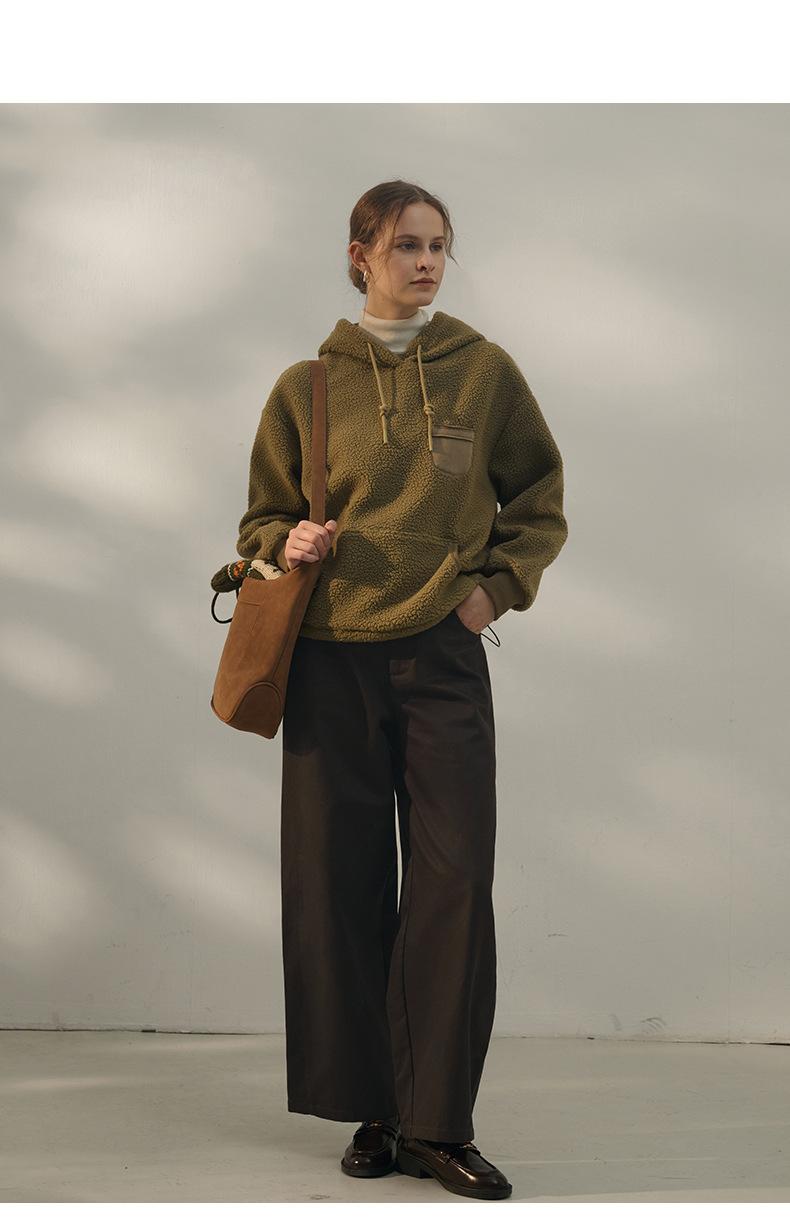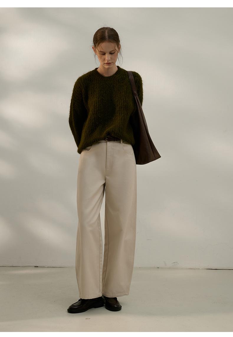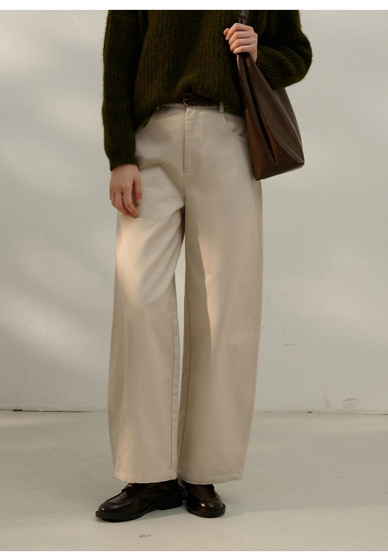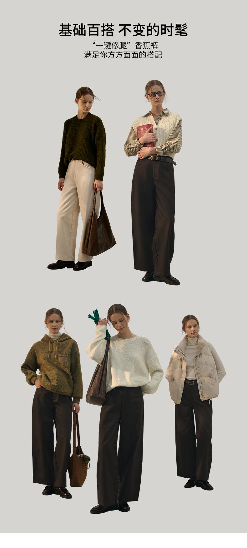 Pantalones Banana de Color Sólido de Cintura Alta Otoño Nuevo Sueltos Casuales Moda Versátiles Pantalones Largos con un Toque Relajado y Bolsillos de Parche Traseros Pantalones de Pierna Ancha