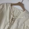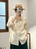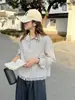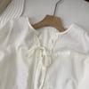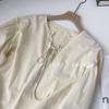 2025 Principios de Primavera Nuevo Estilo Coreano Holgado Adelgazante Combinable Cuello en V Camisa con Cordones para Mujer Mori para Mujer