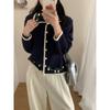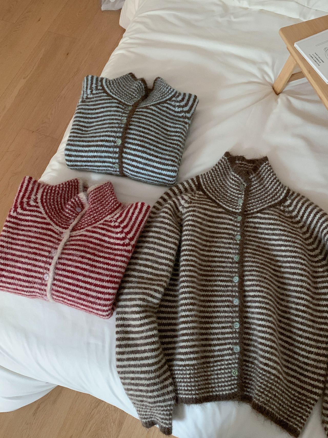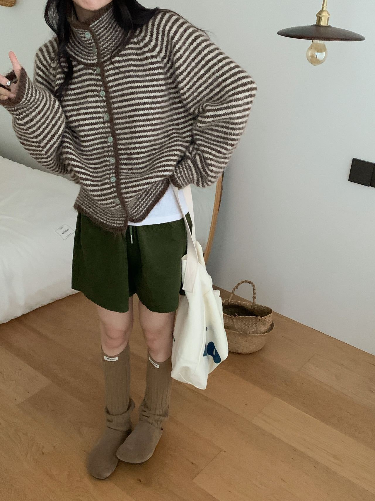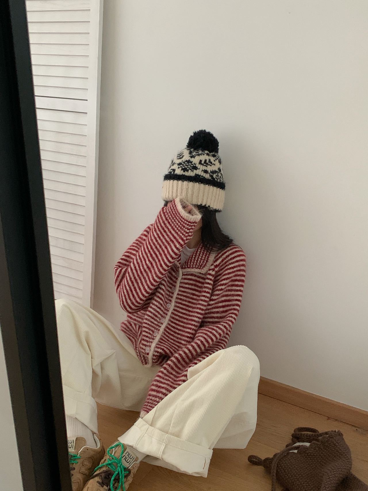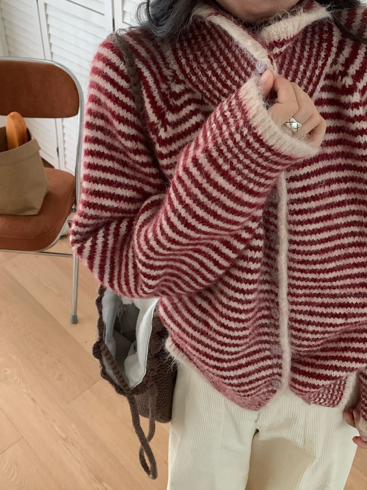 Cárdigan de Punto Minimalista a Rayas con Bloque de Color y Cuello Vuelto Estilo Coreano para Mujer Otoño/Invierno 2025 Adelgazante Suéter Holgado Abrigo