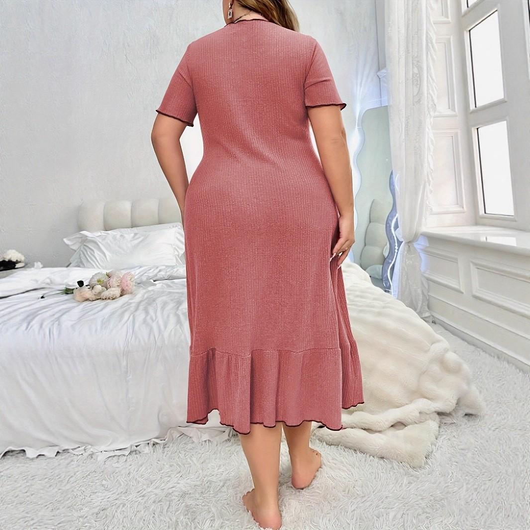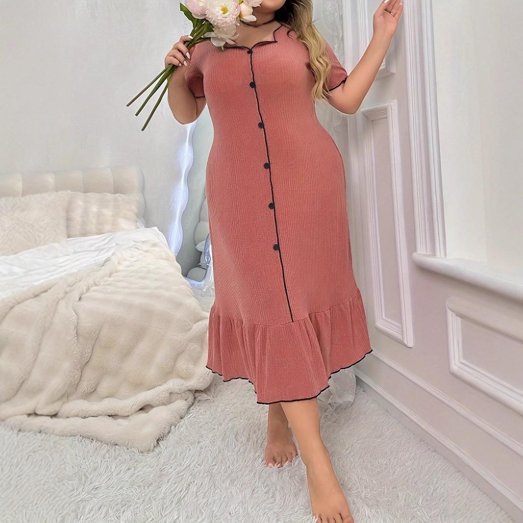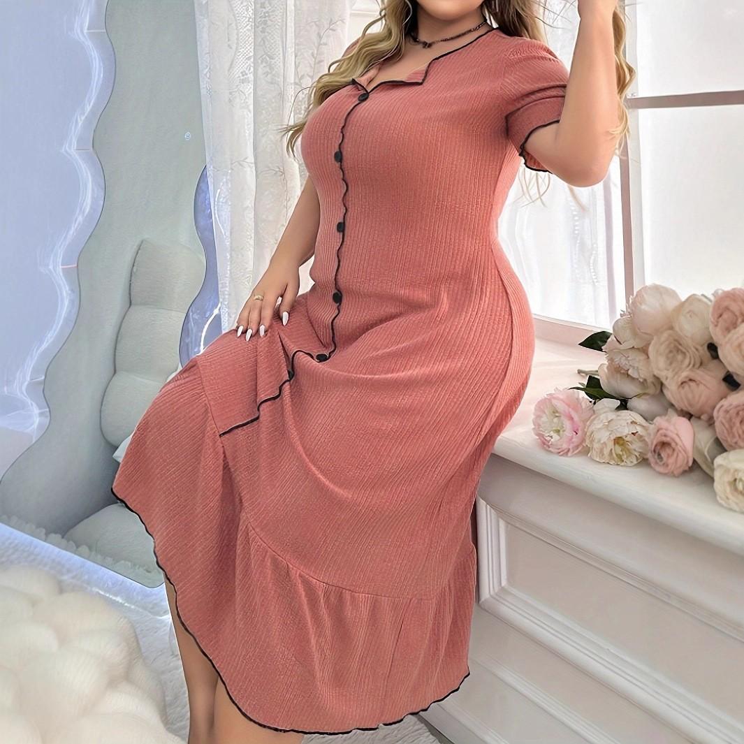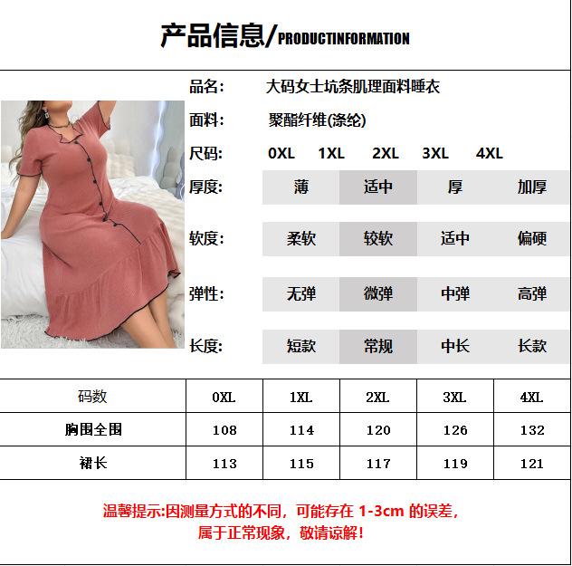 Pijama de Verano para Mujer de Talla Grande de Manga Corta Europeo y Americano Transfronterizo Amazon Ropa Dulce para el Hogar Vestido Falda Larga Camisón