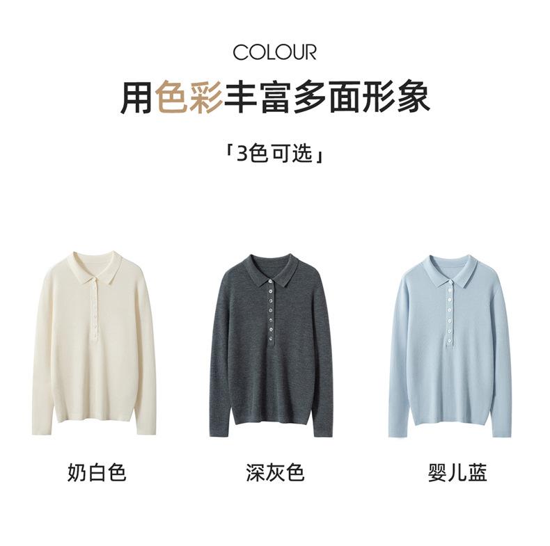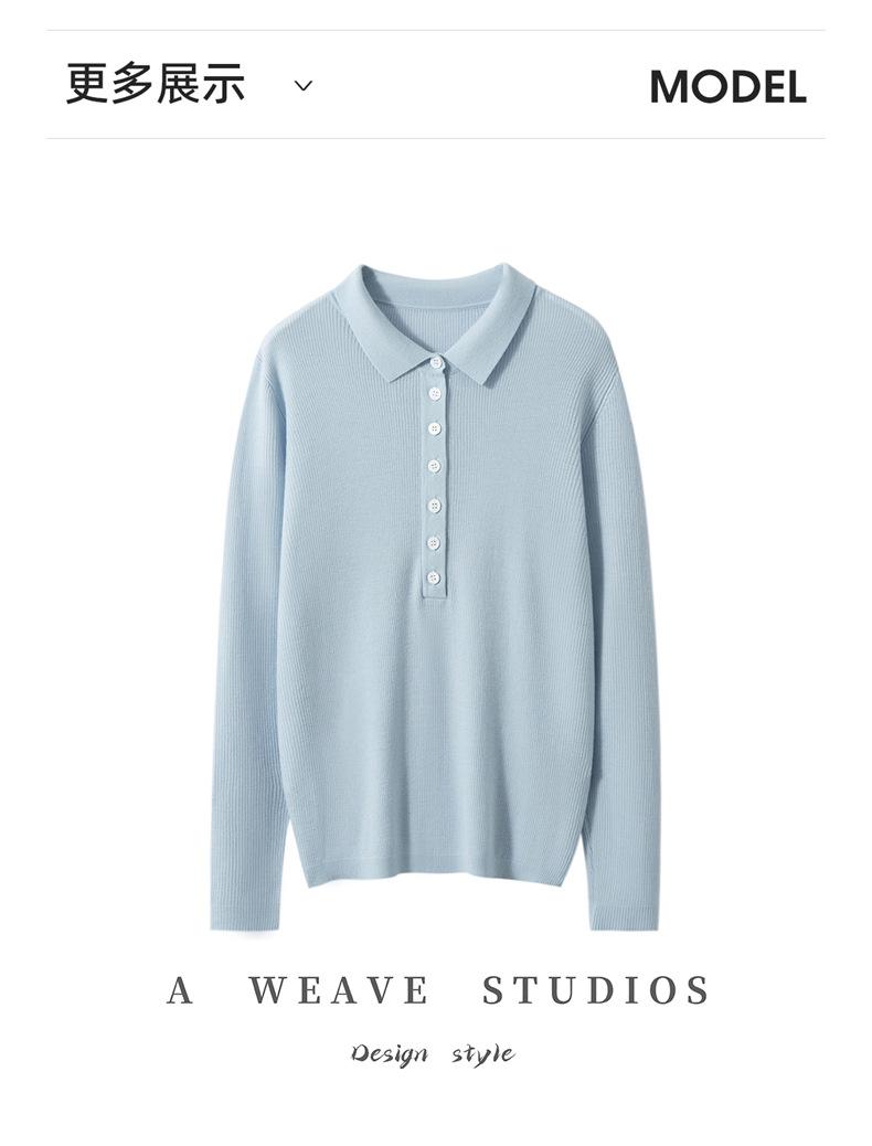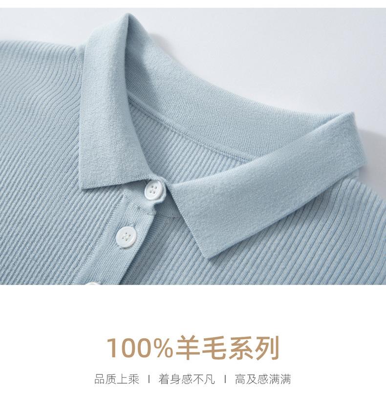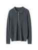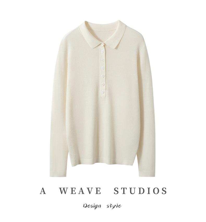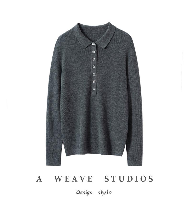 Suéter de Punto de Lana Pura para Mujer 2025 Nuevo Cuello Polo Medio Botón Jersey Color Sólido Holgado Temperamento Base