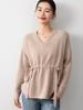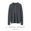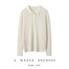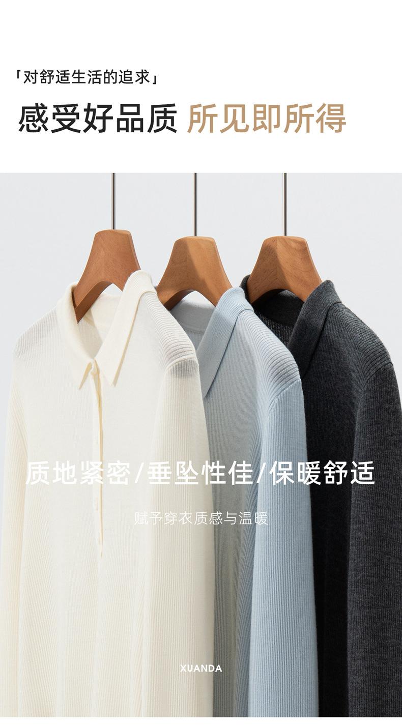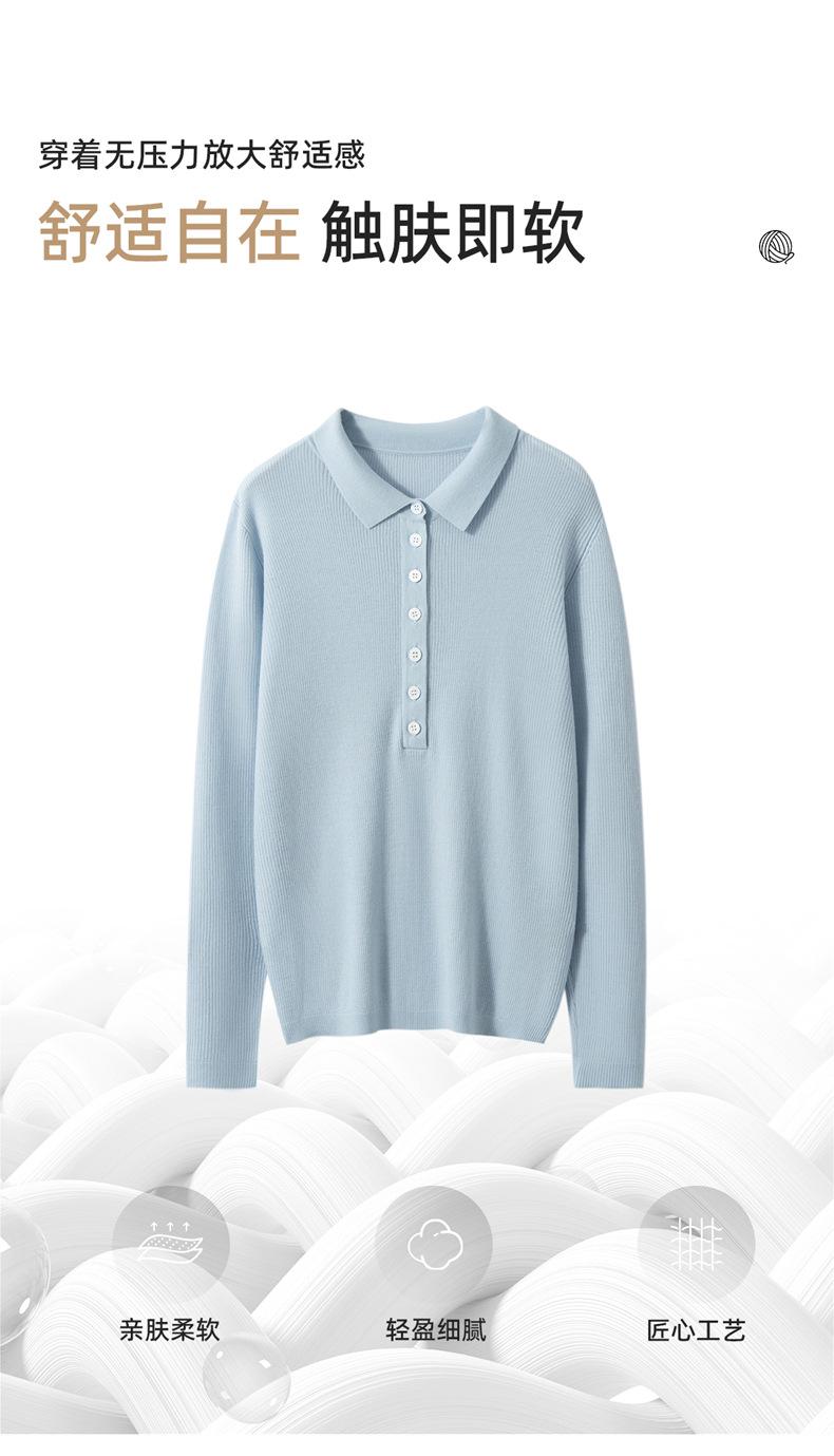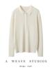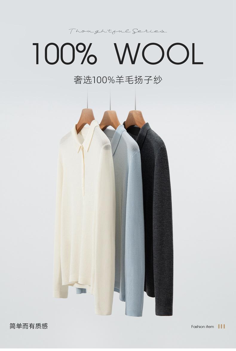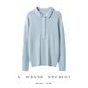 Suéter de Punto de Lana Pura para Mujer 2025 Nuevo Cuello Polo Medio Botón Jersey Color Sólido Holgado Temperamento Base